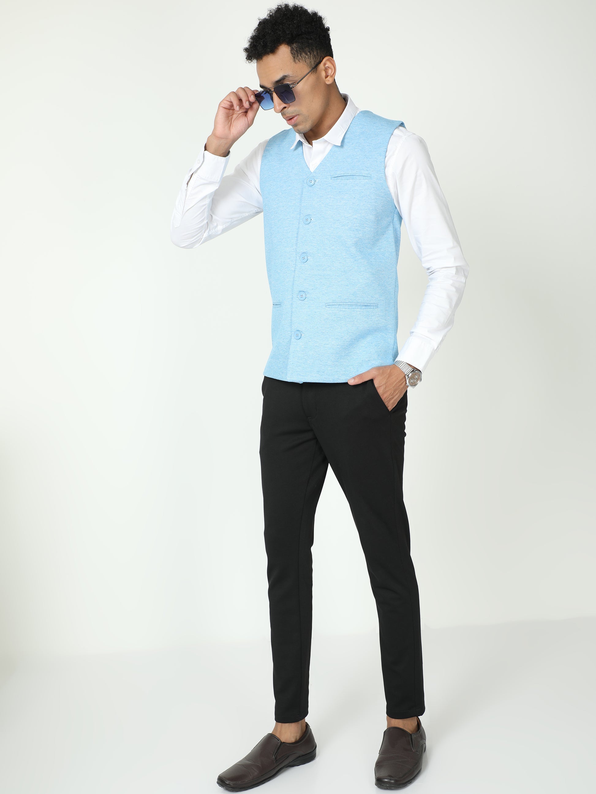 Men's Plus Size rPET SB V Neck Waistcoat's - Cyan