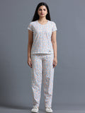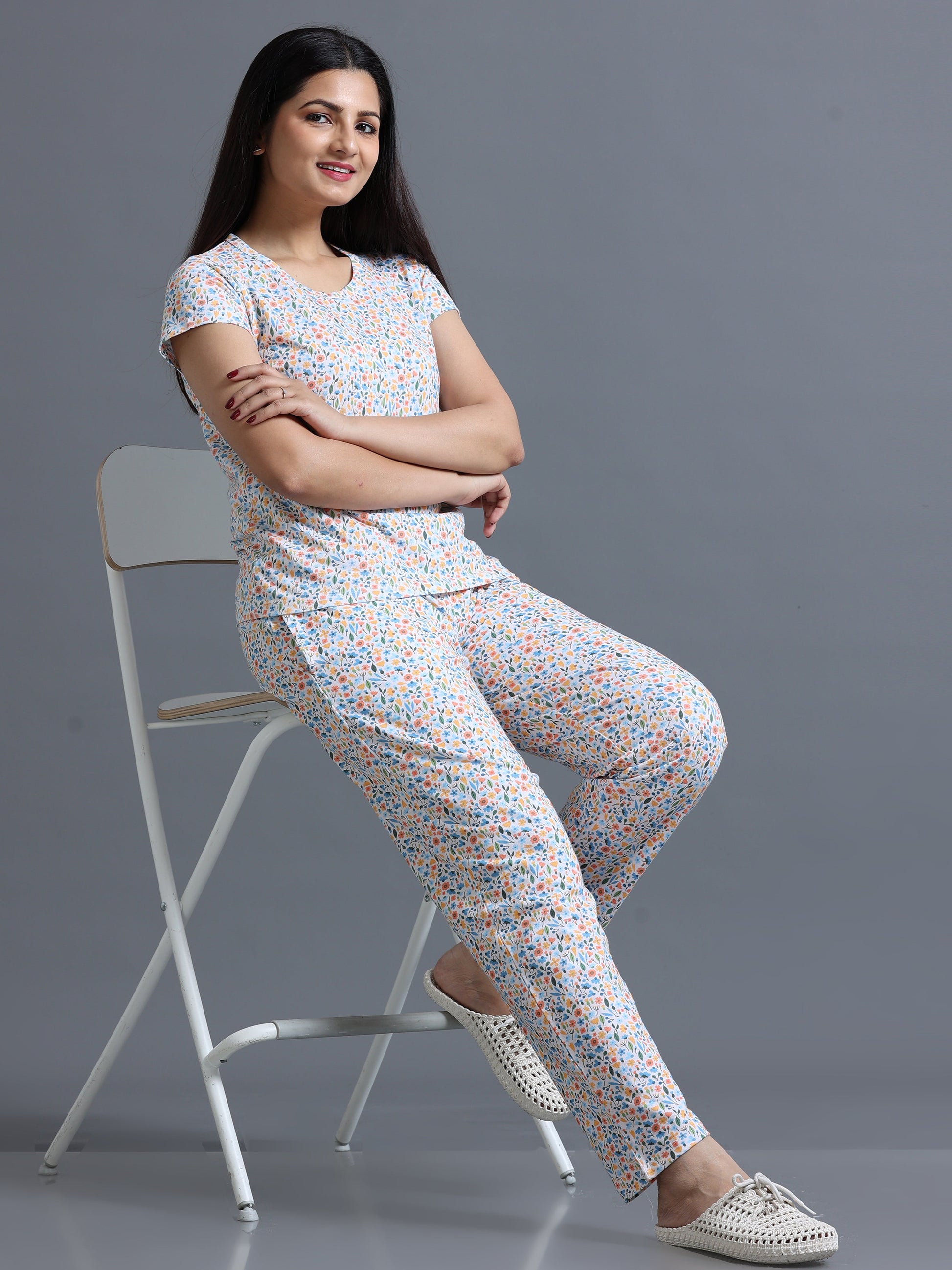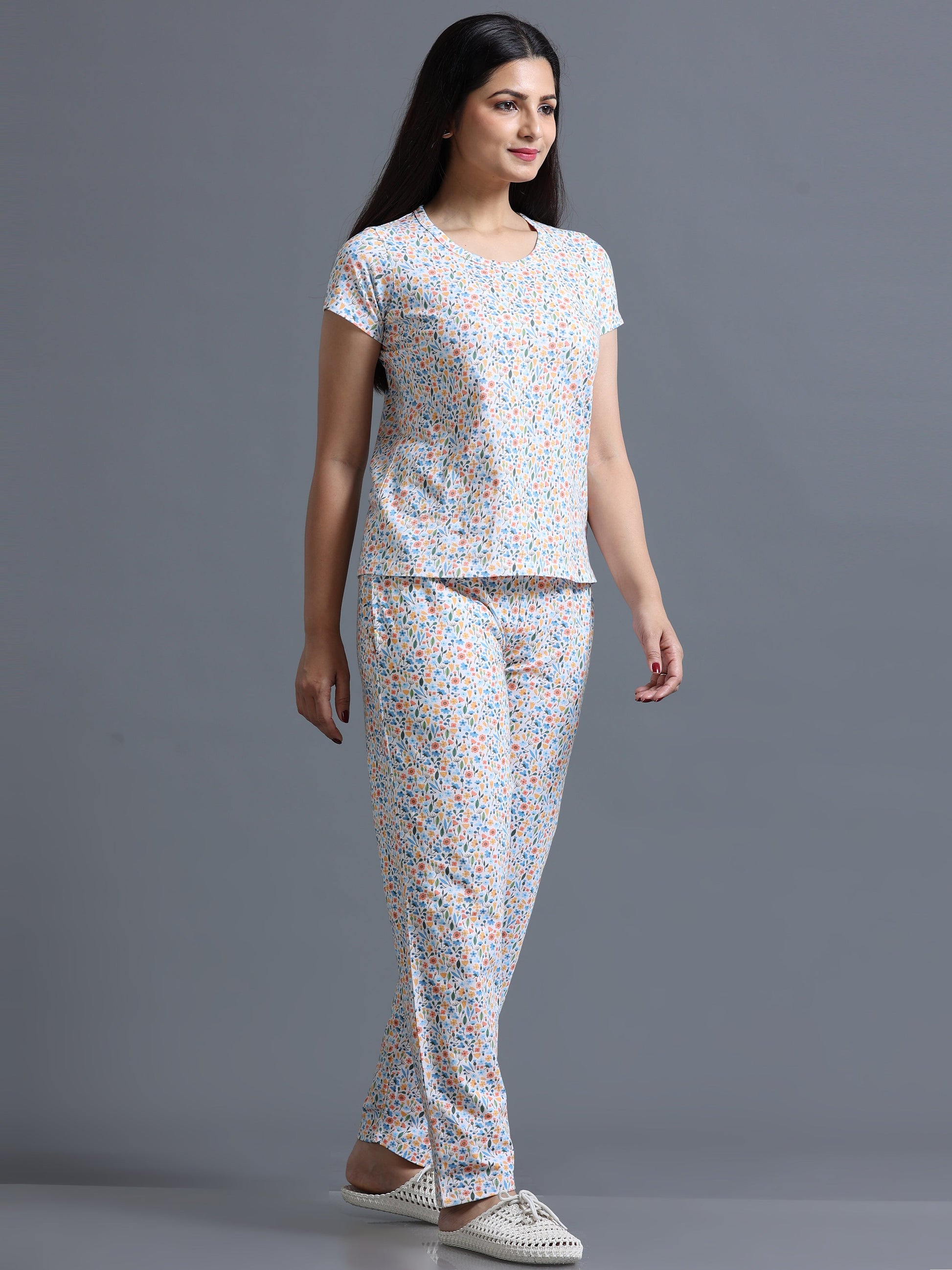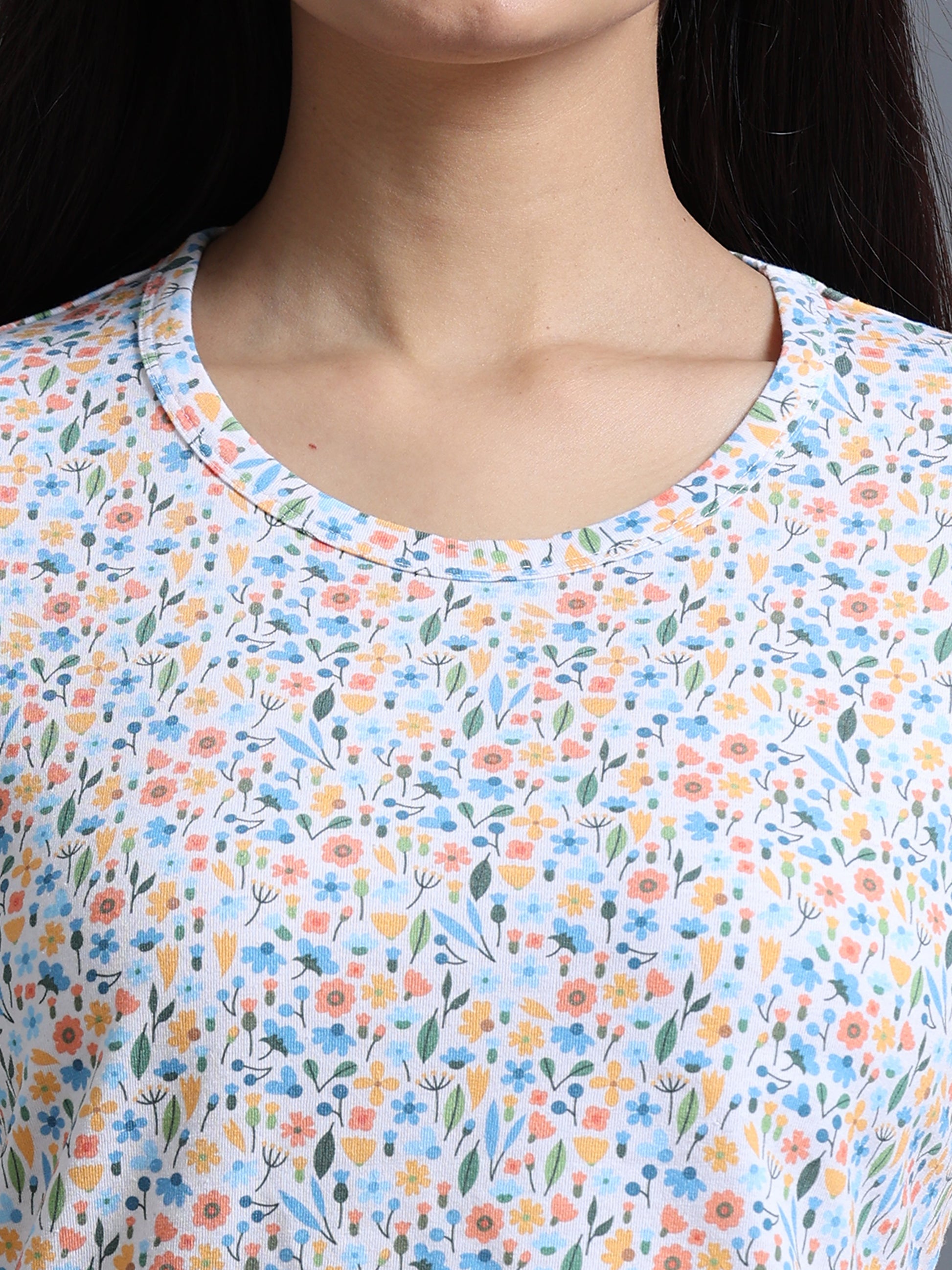 Eco Women's Flower Printed Round Neck Pyjama Set