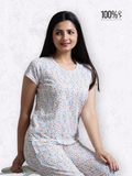 Unwind in style and sustainability with our Eco Women's Flower Round Neck Printed Pyjama Set. Made from a blend of recycled PET bottles and recycled cotton, this eco-friendly loungewear redefines comfort and care for the planet.