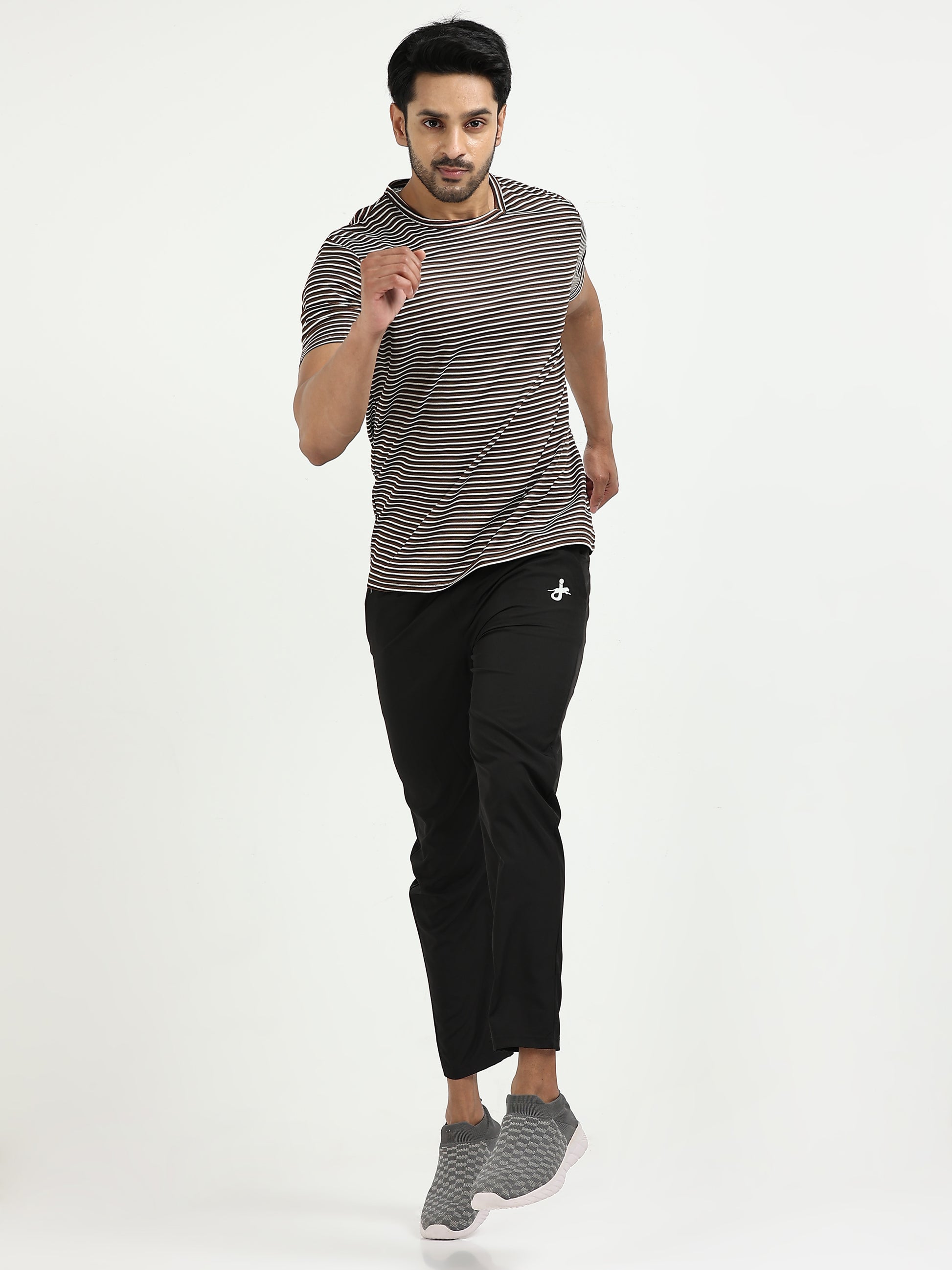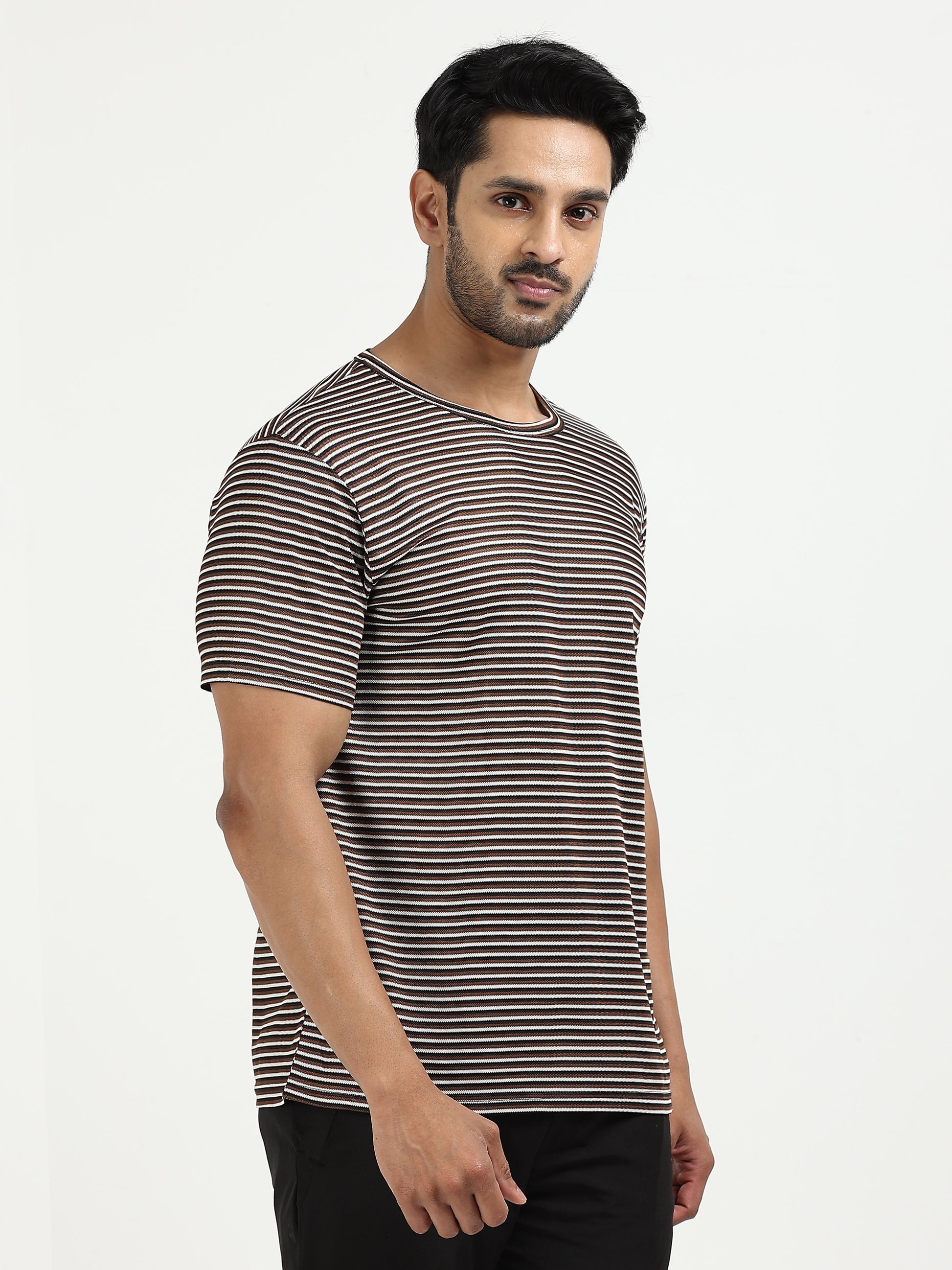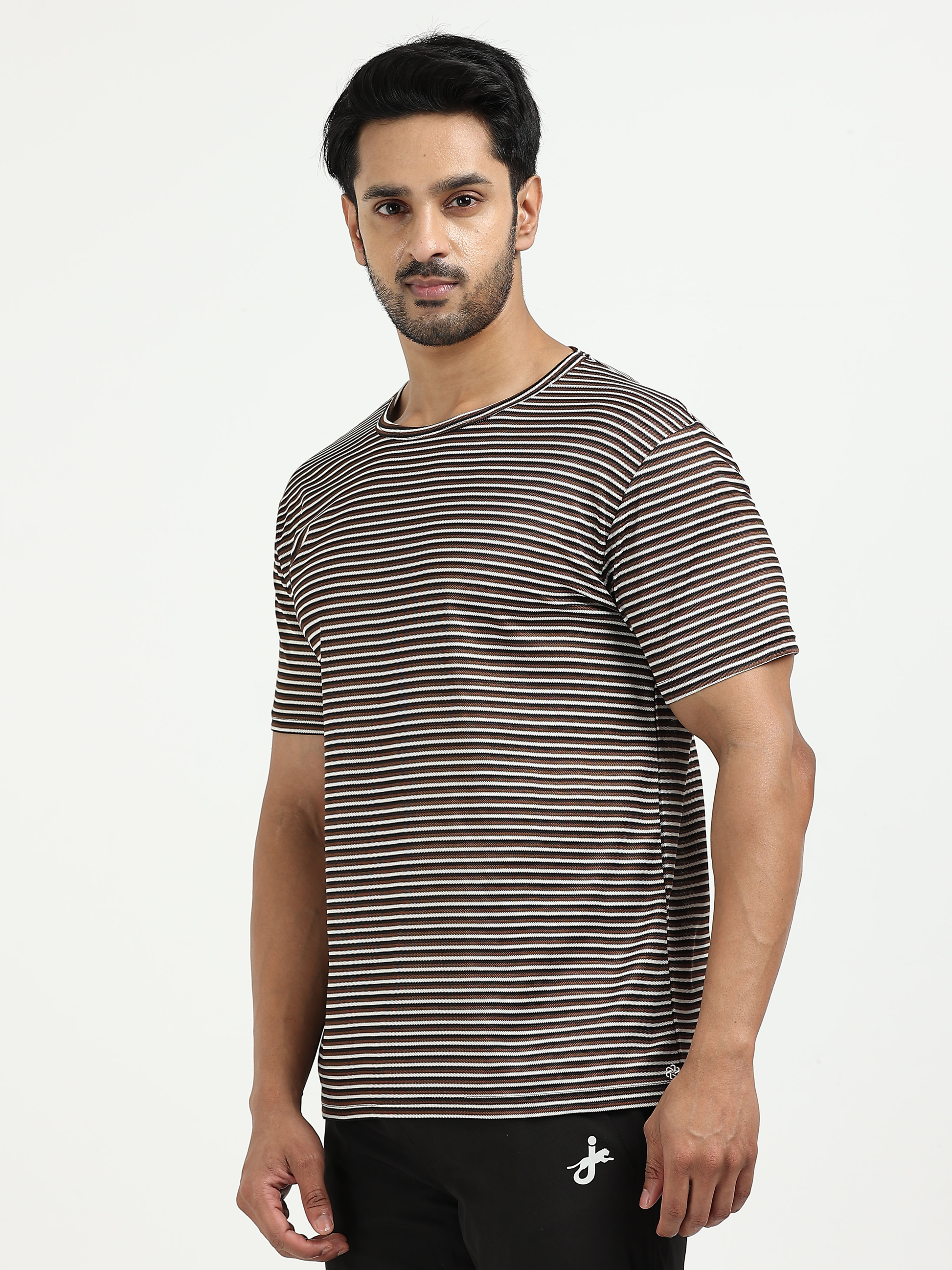 Mens Drift Striped Tee - Black & Nutbrown & Semidull