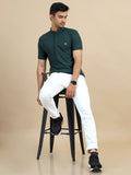 Men's Polo T-Shirt with Chinese Collar - Bottle Green