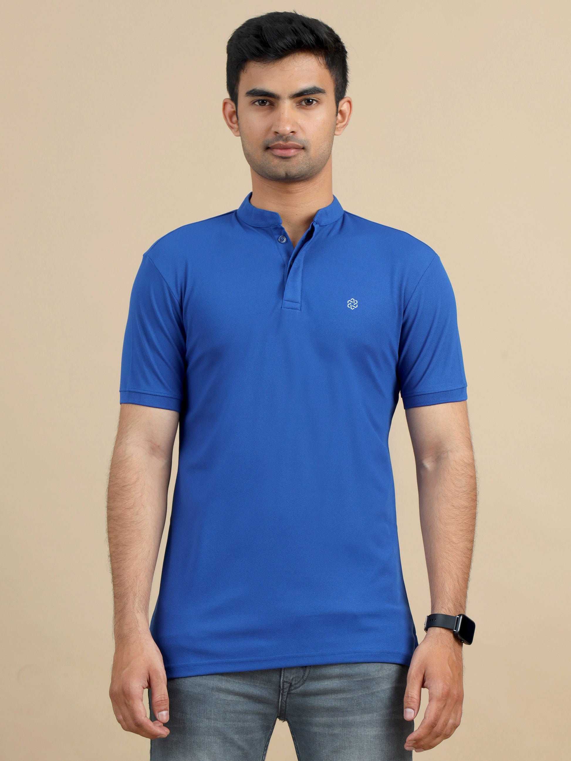 Men's Polo T-Shirt with Chinese Collar - Imperial Blue