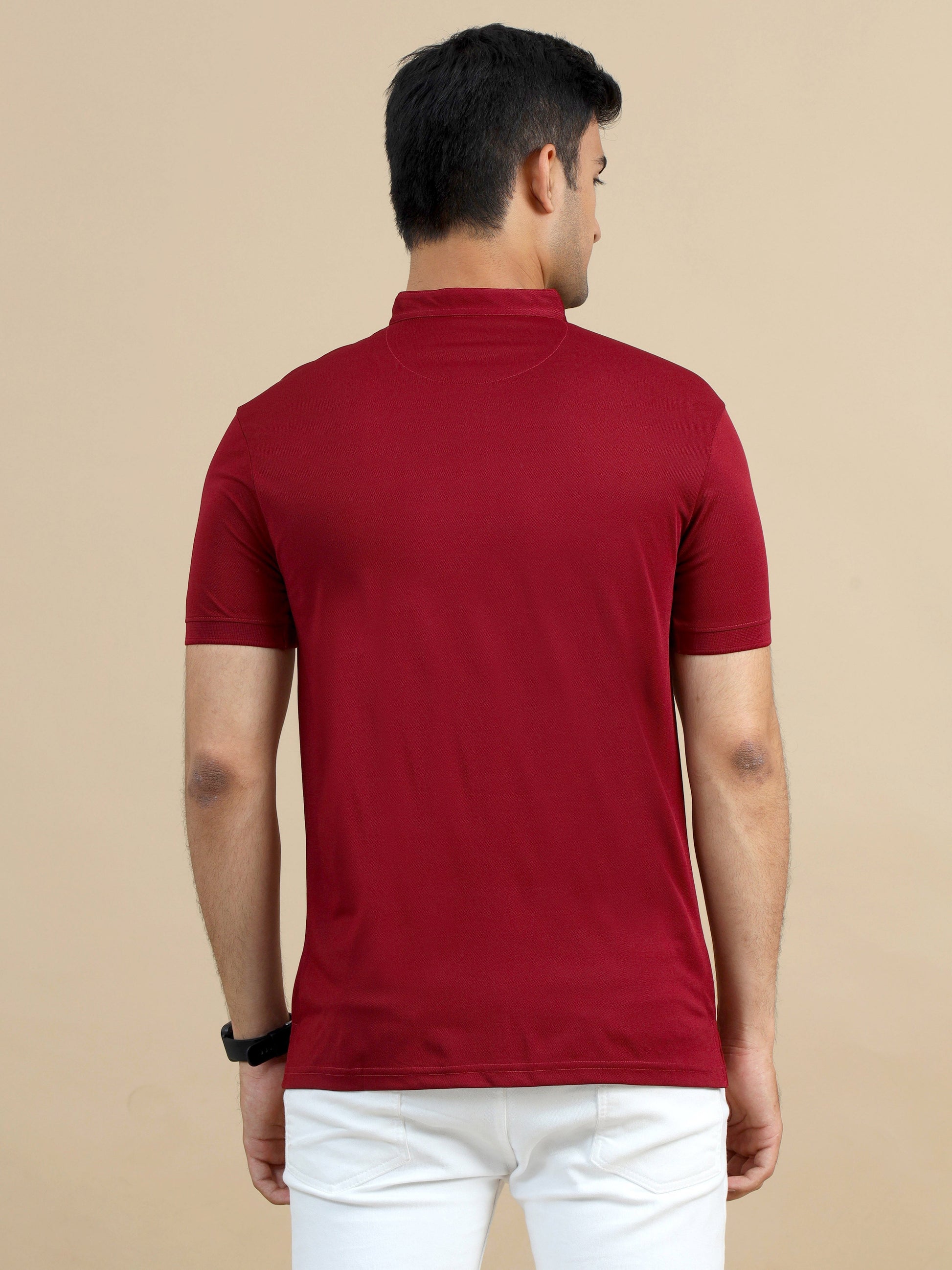 Men's Polo T-Shirt with Chinese Collar - Redwine