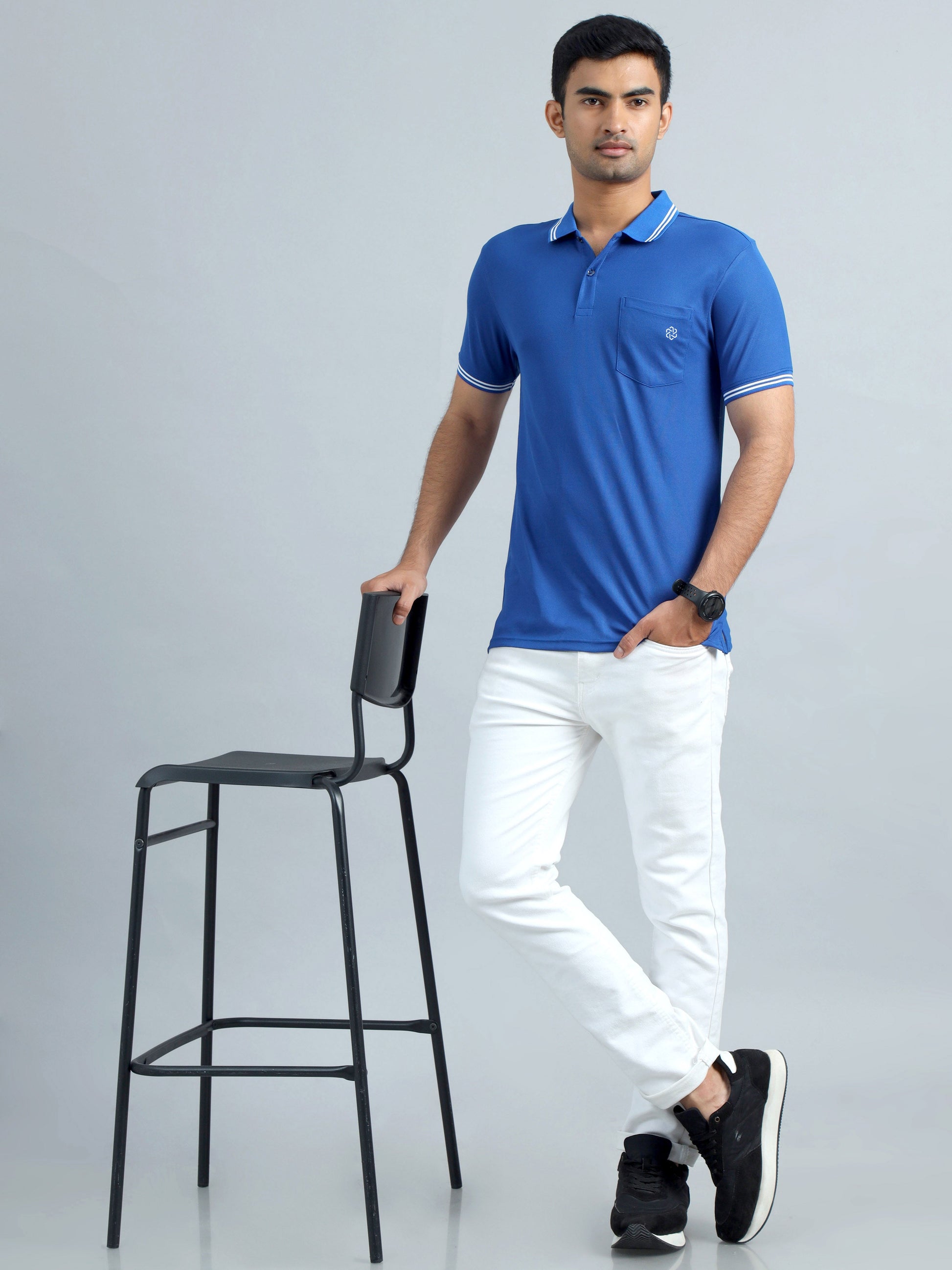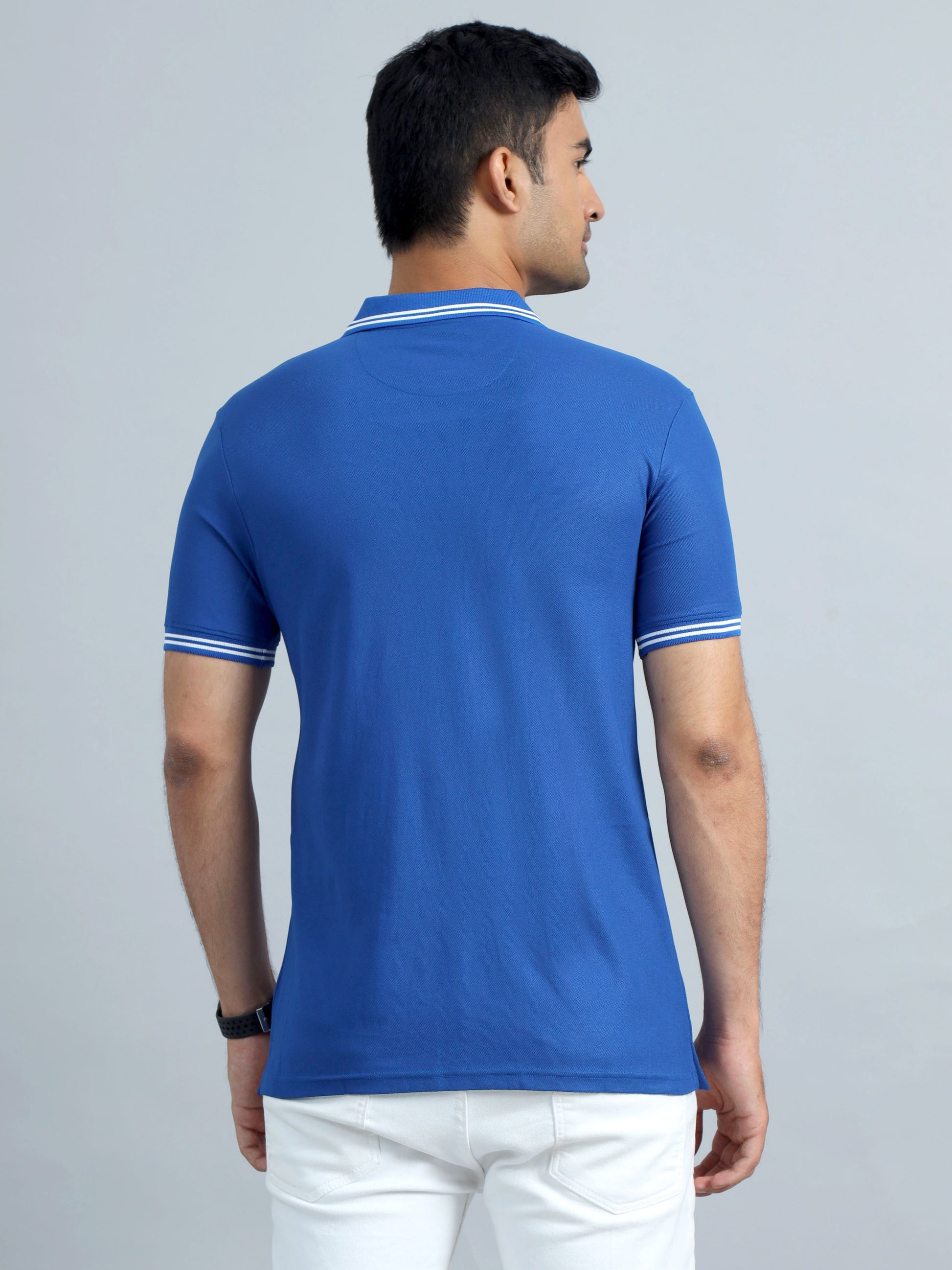 Casual Men's Polo T-Shirt - Imperial Blue & White