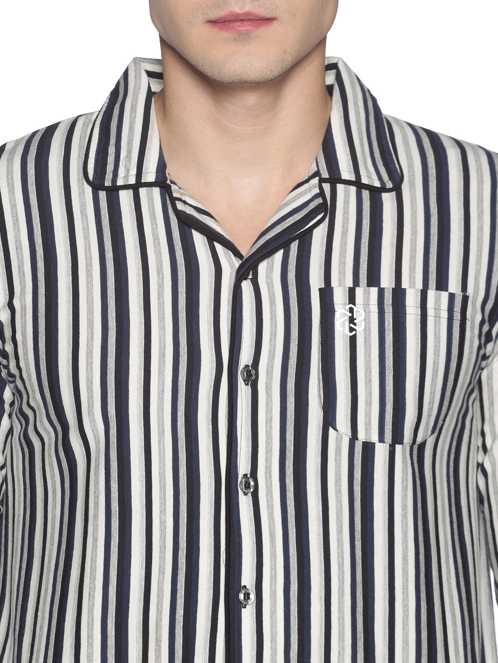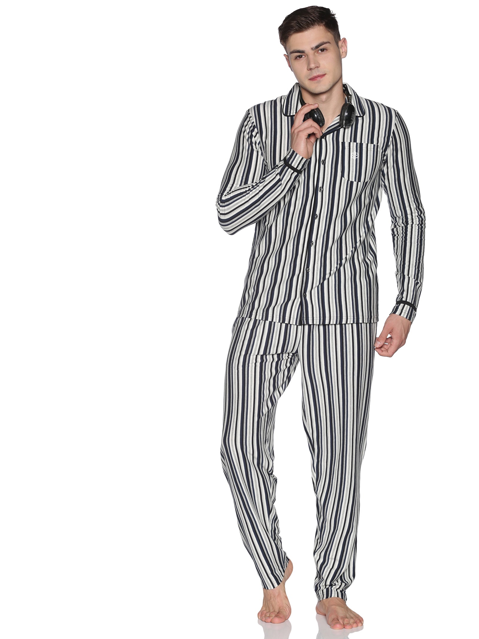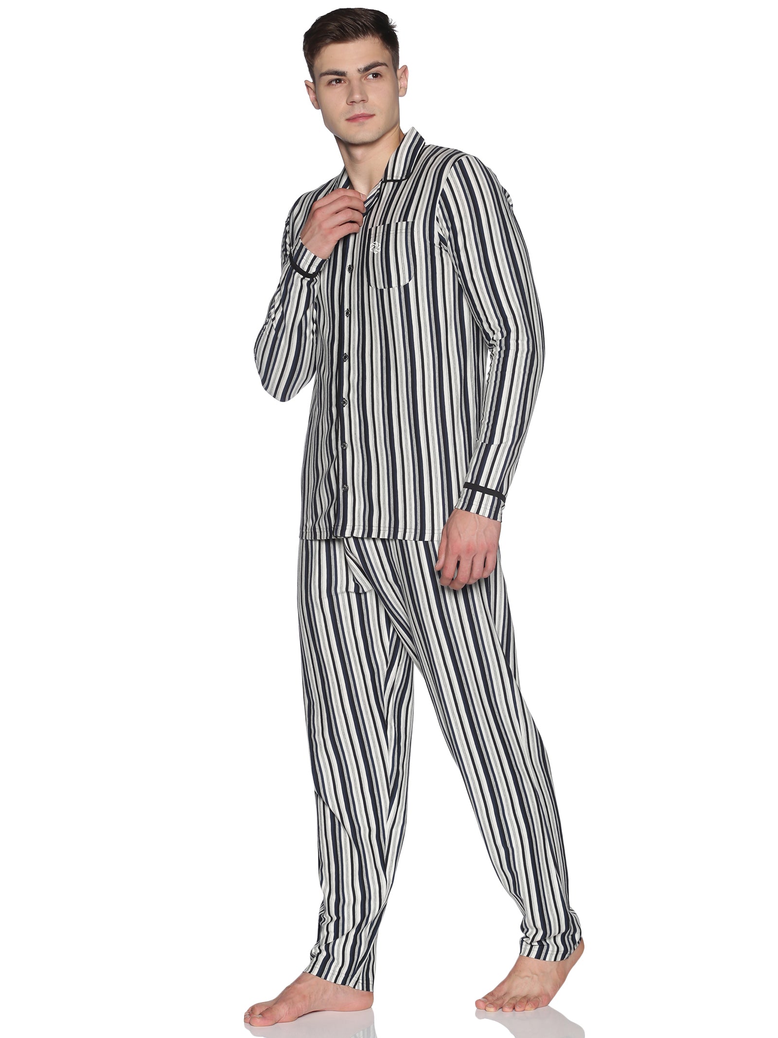 طقم بيجامة رجالي من القطن المعاد تدويره – خطوط مصبوغة بالخيوط من أجل الراحة والأناقة