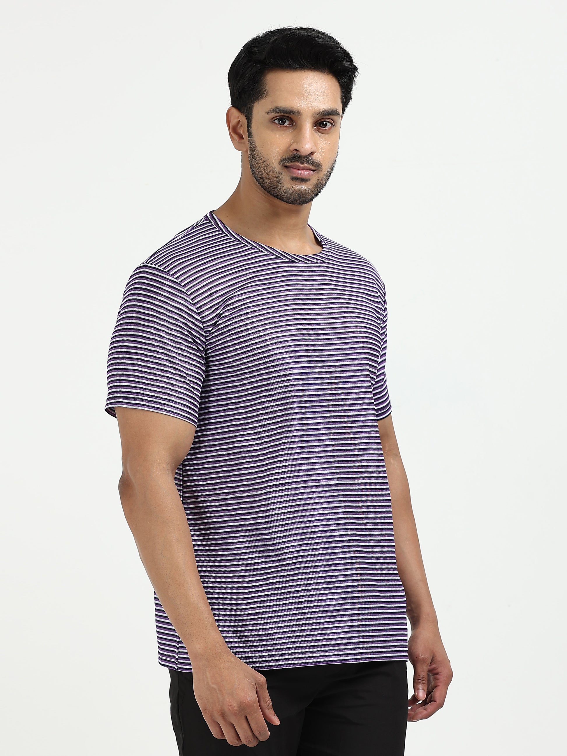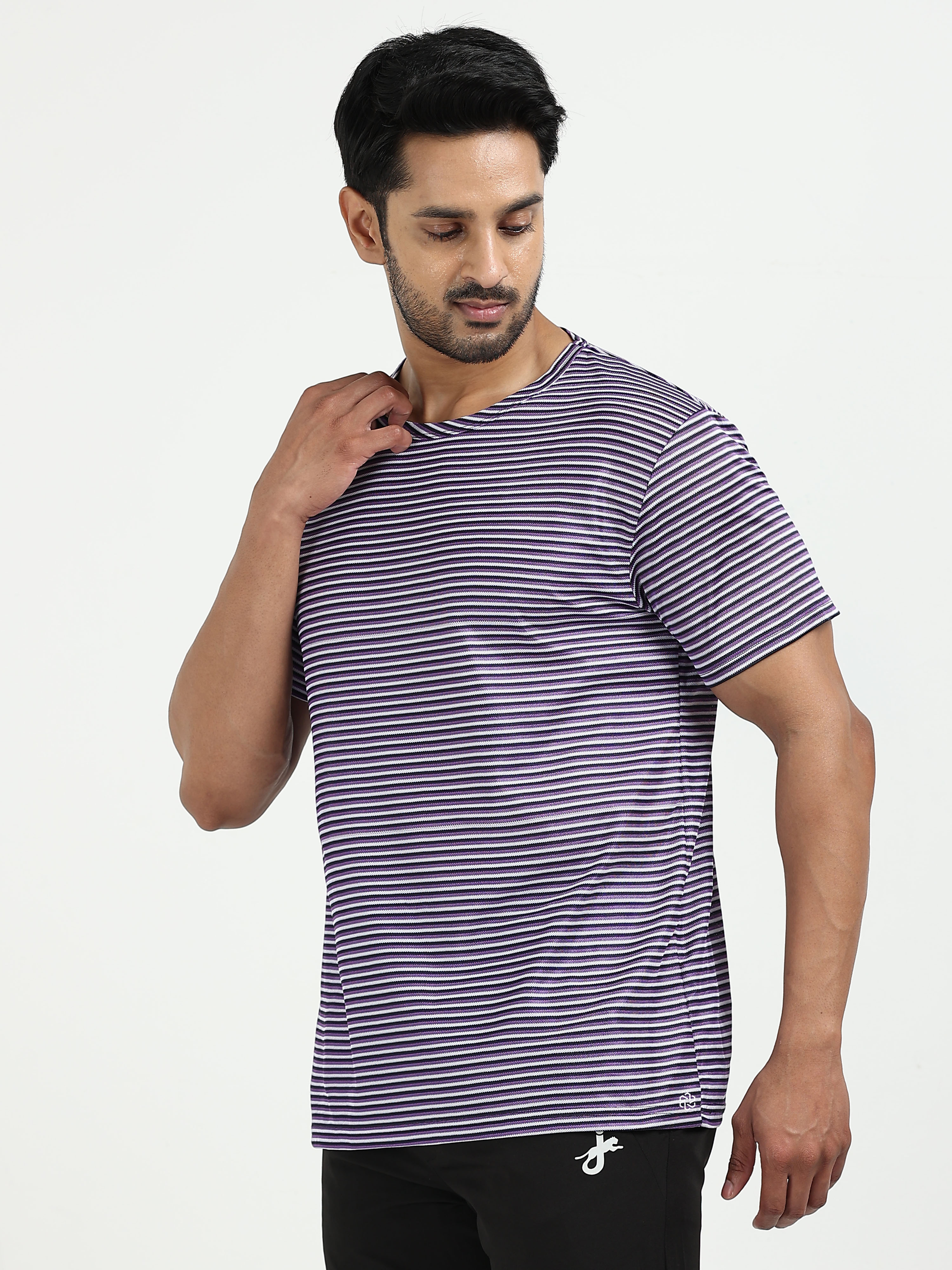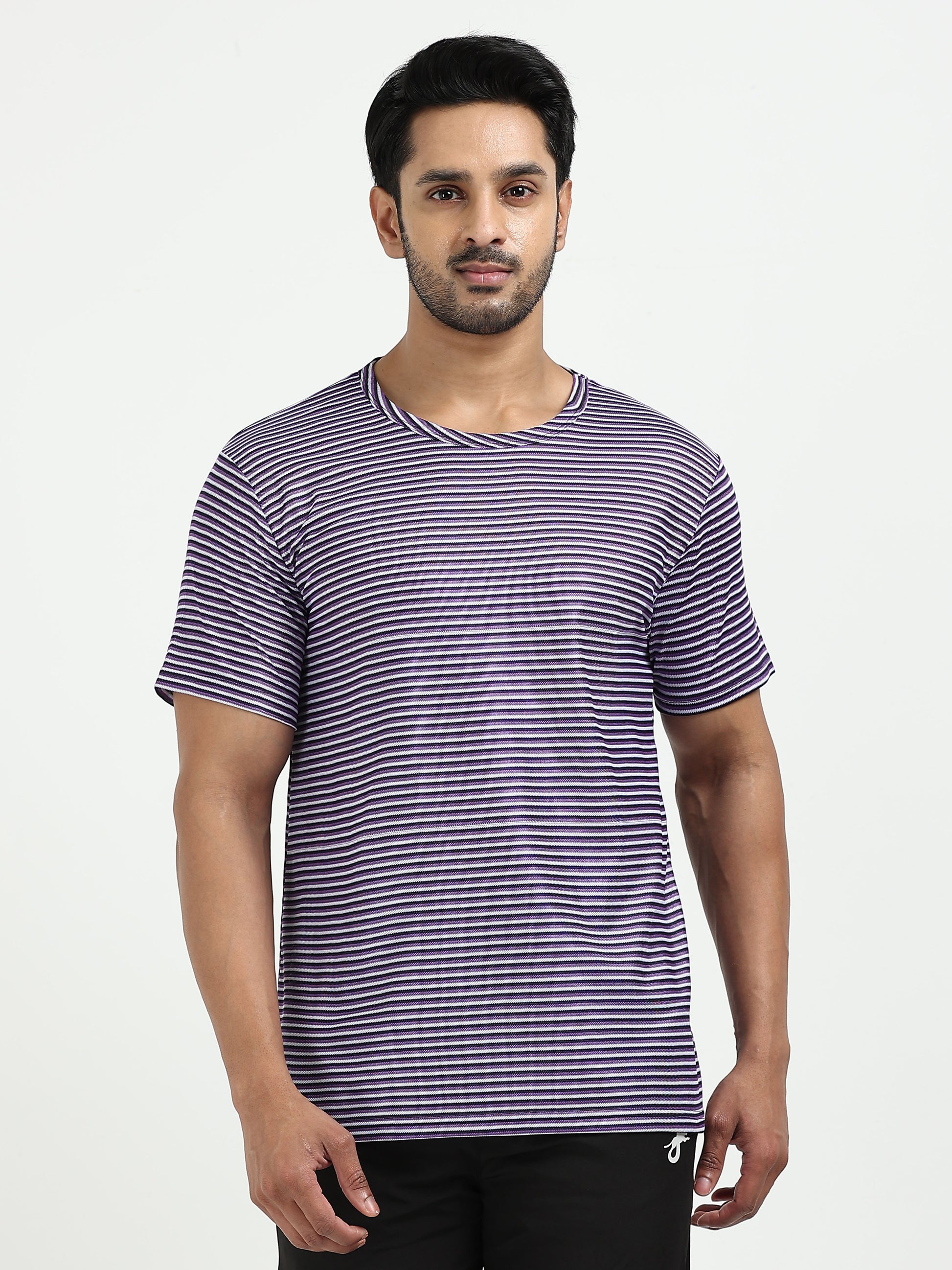 Mens rPET Drift Striped Tee – Deep Navy & Voilet & Semidull