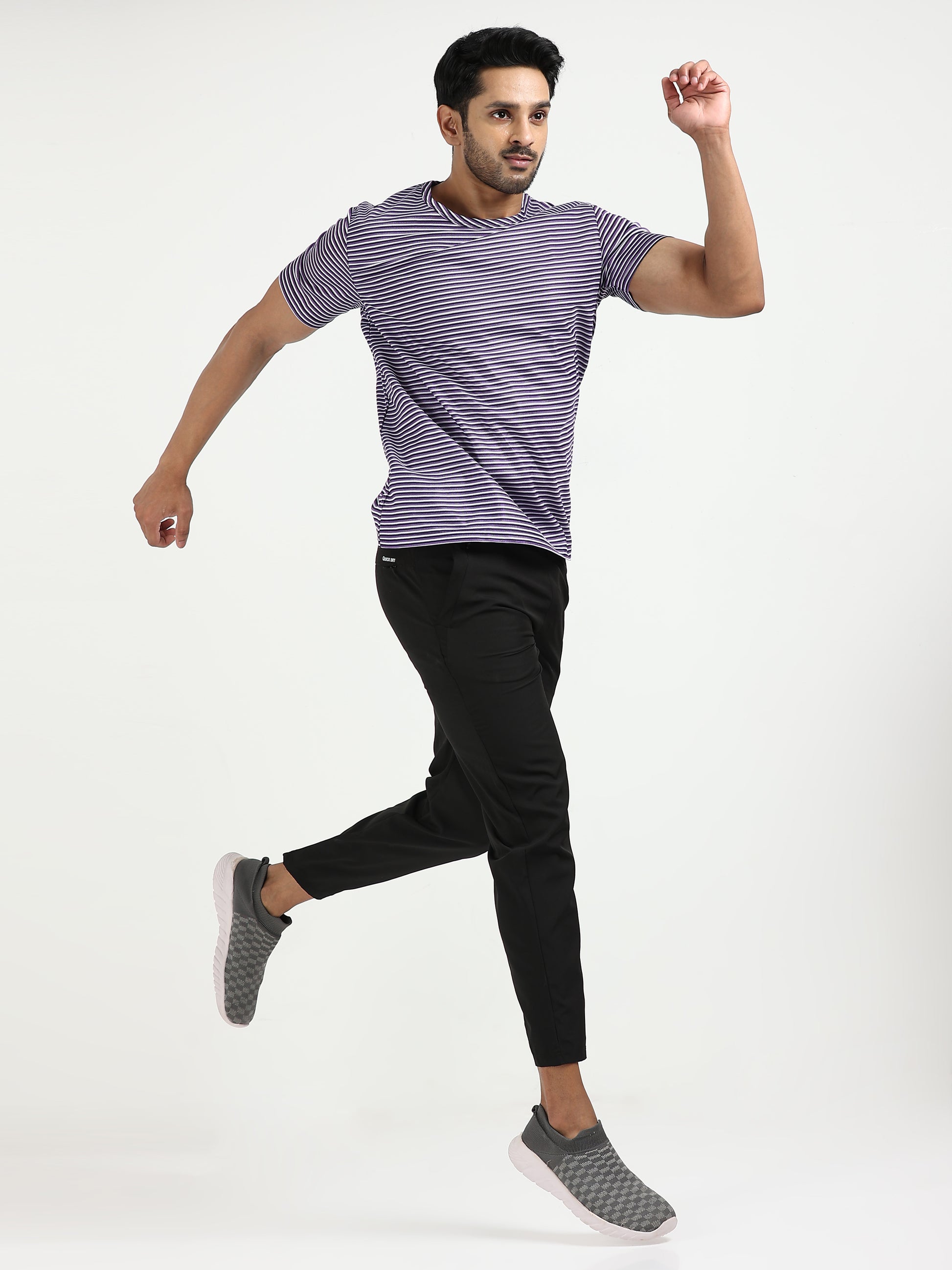 Stay cool and easy-going in the Drift Striped Tee. Designed with subtle horizontal tonal stripes with a crew neck and a relaxed fit, this tee is made from eco-friendly RPET yarns that feel as good as they look. Pair it with denims or shorts for effortless off-duty style. A minimal essential redefined. Available in multiple colors, it’s perfect for workfrom-home days, weekend errands, workouts or casual coffee runs.