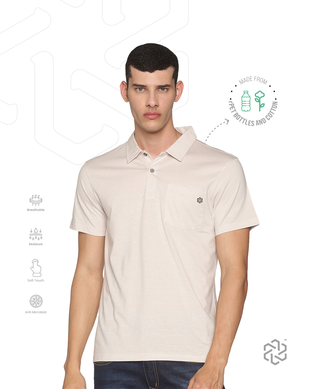 Add a refreshing touch to your collection with the Solid Men’s Polo T-Shirt in Chandan, crafted from a sustainable blend of 50% Recycled Polyester and 50% Recycled Cotton. This men’s polo t-shirt is designed for lasting comfort, breathability, and durability, making it suitable for daily wear and casual occasions. The subtle Chandan shade offers a clean, polished look, while the soft, eco-friendly fabric ensures all-day ease. Perfect for men who value effortless style and sustainability, this polo t-shirt for men blends modern design with responsible fashion choices.