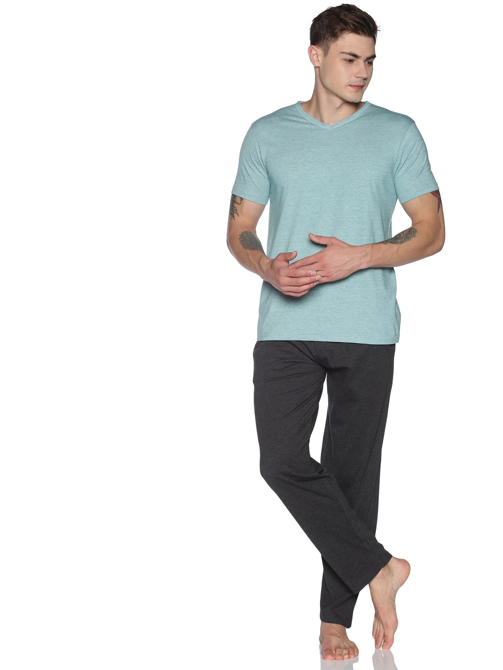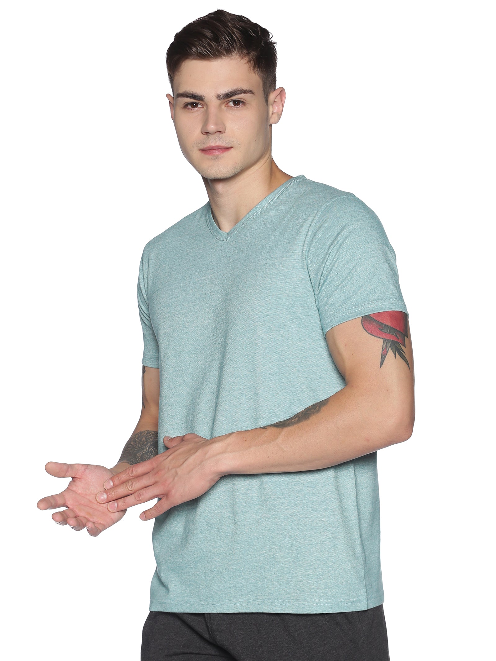 Men's rPET with Recycled Cotton V-Neck TShirt - Jade