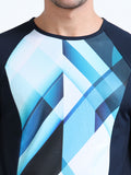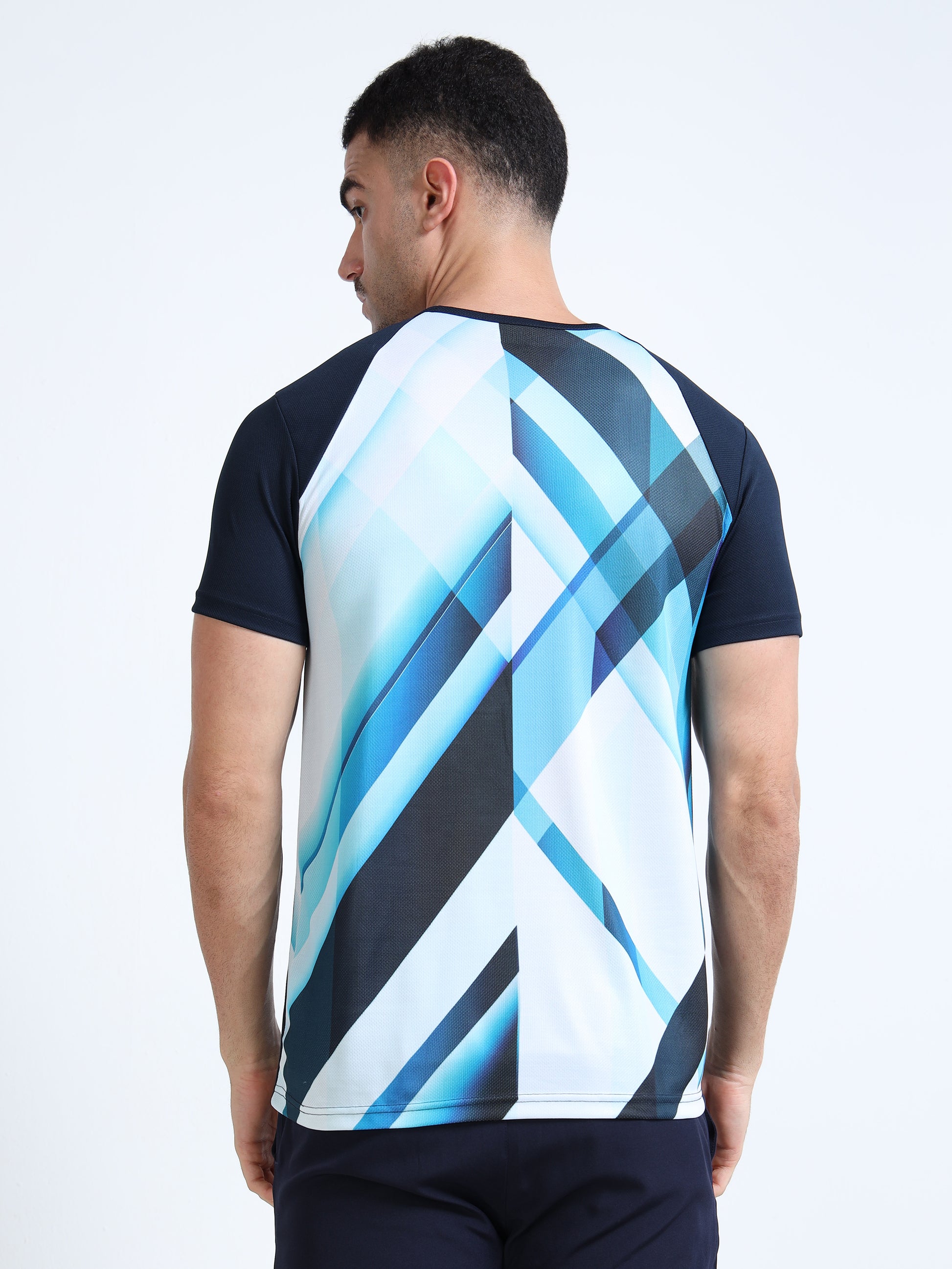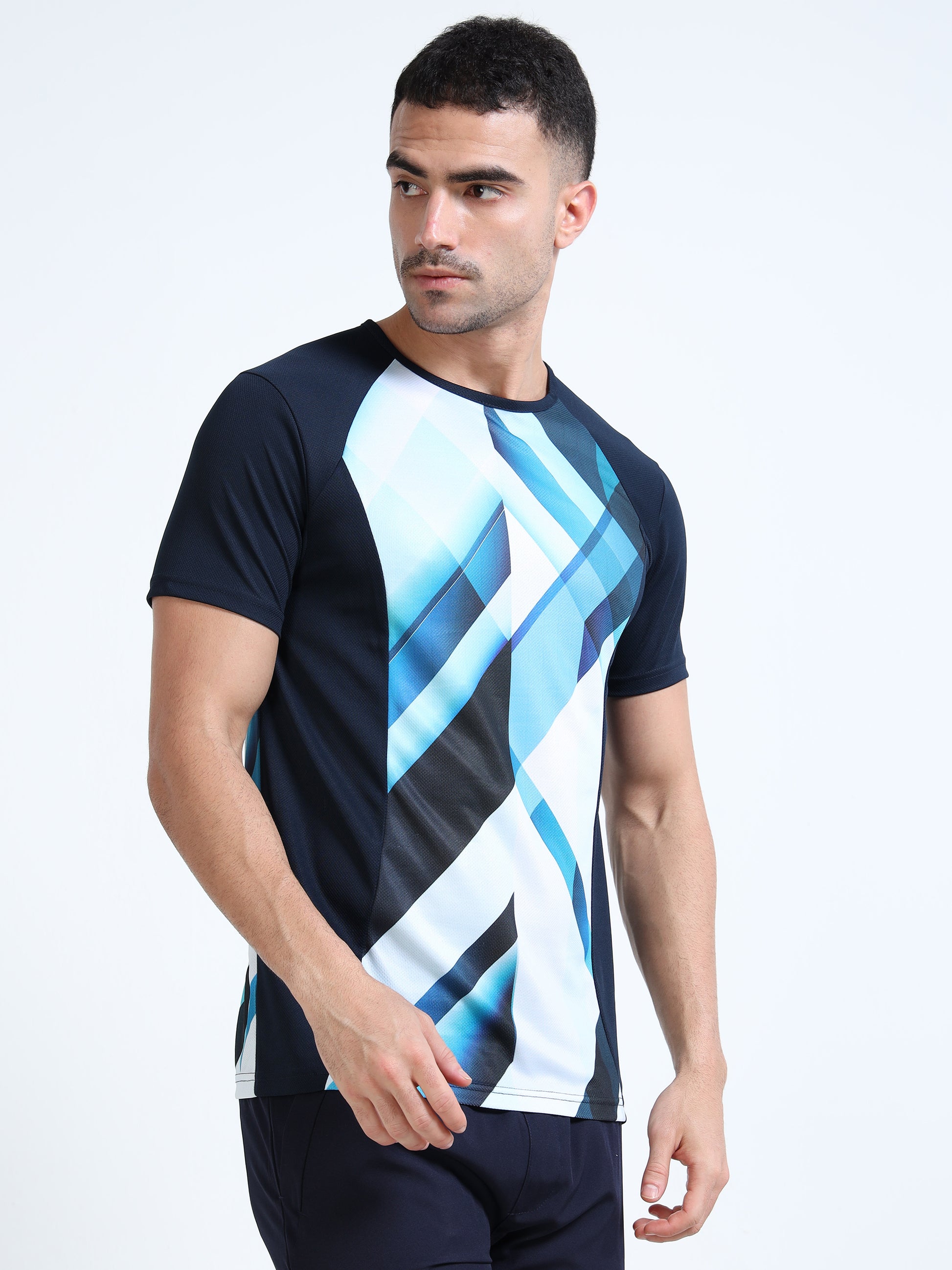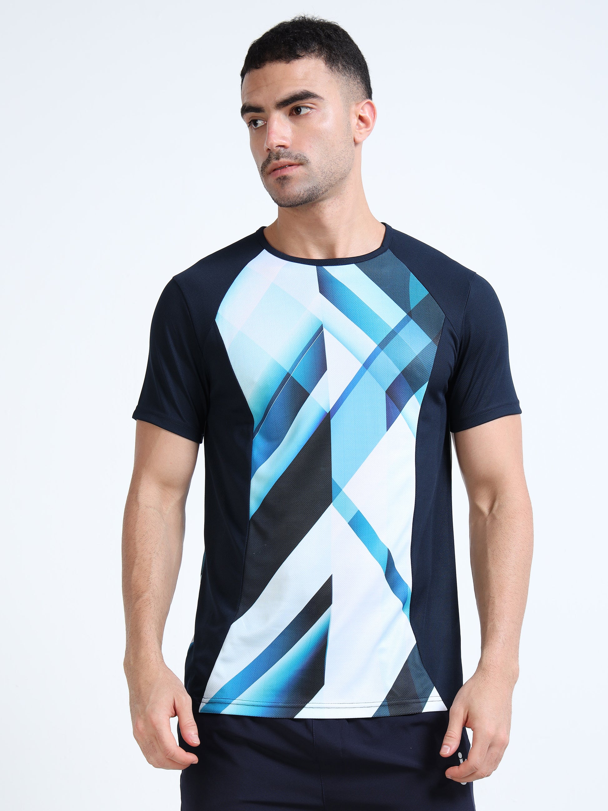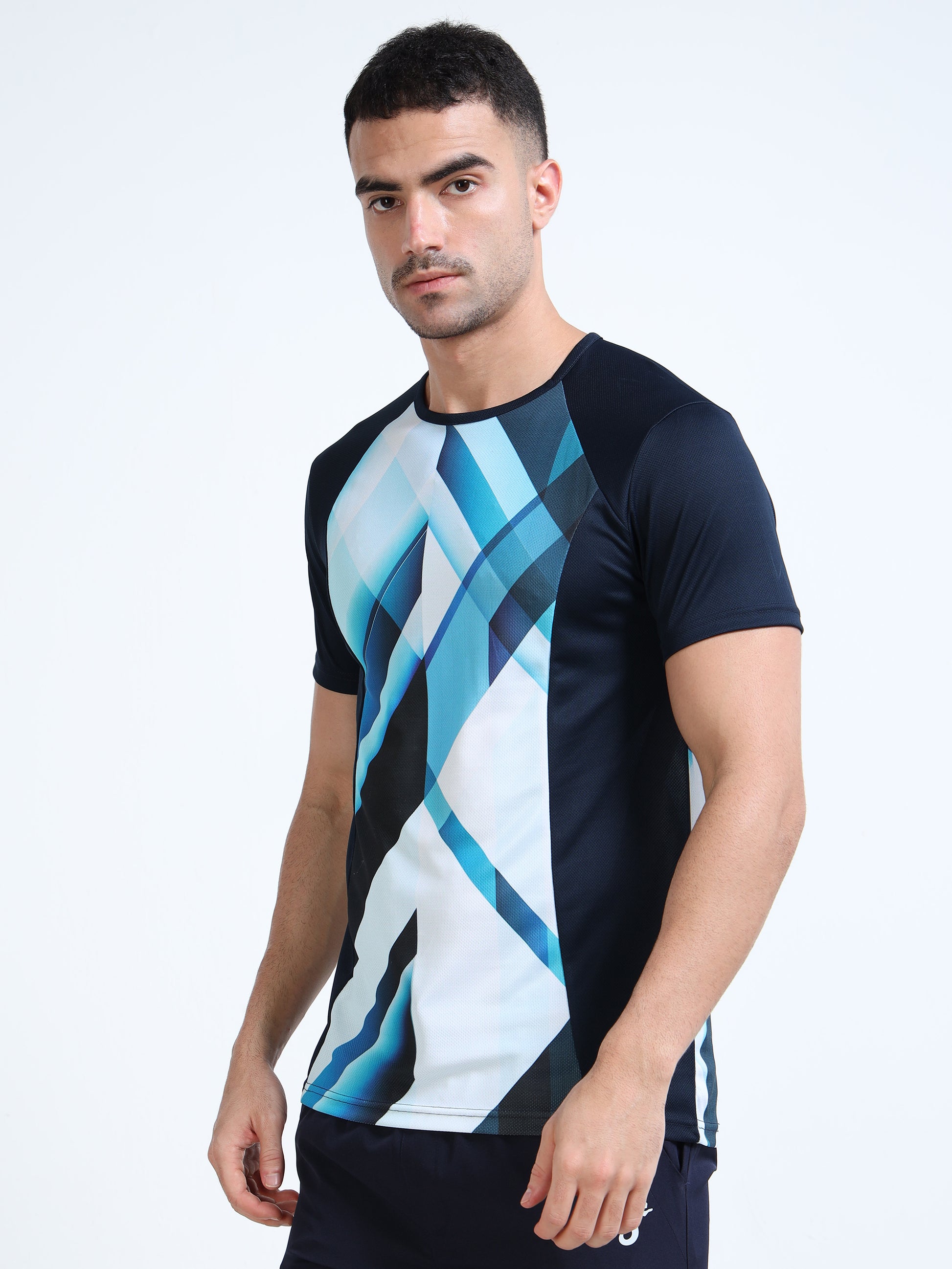 Printed Mens Active T-Shirt - Navy Geometric Parallels | Mens Active Wear