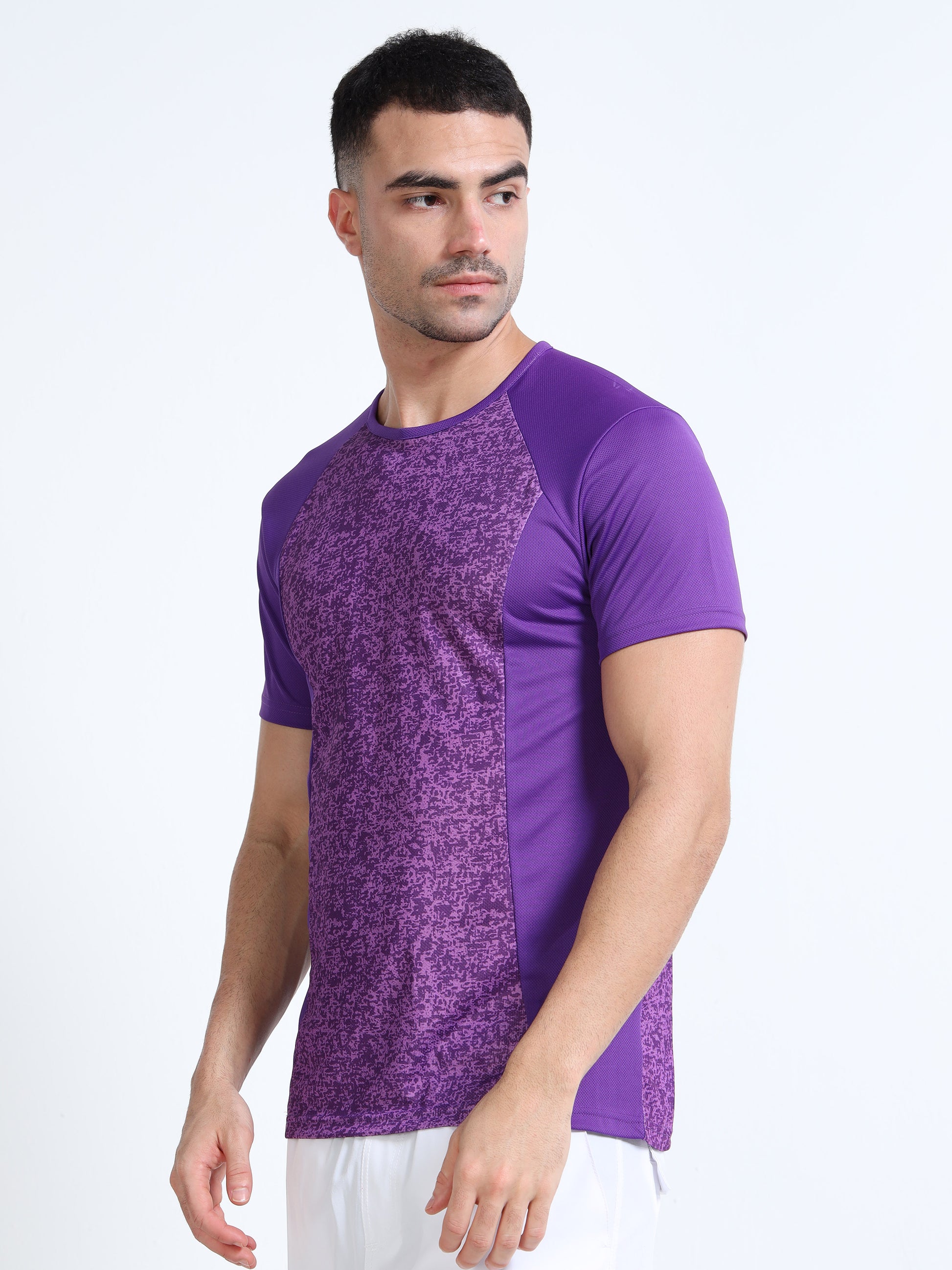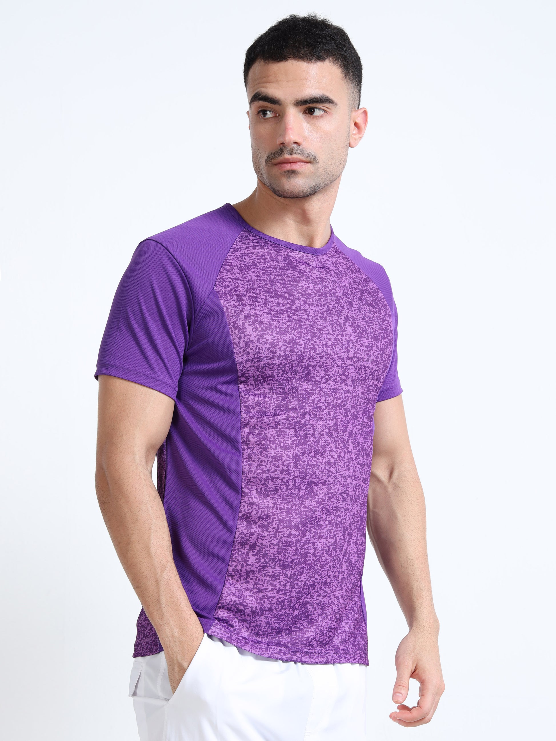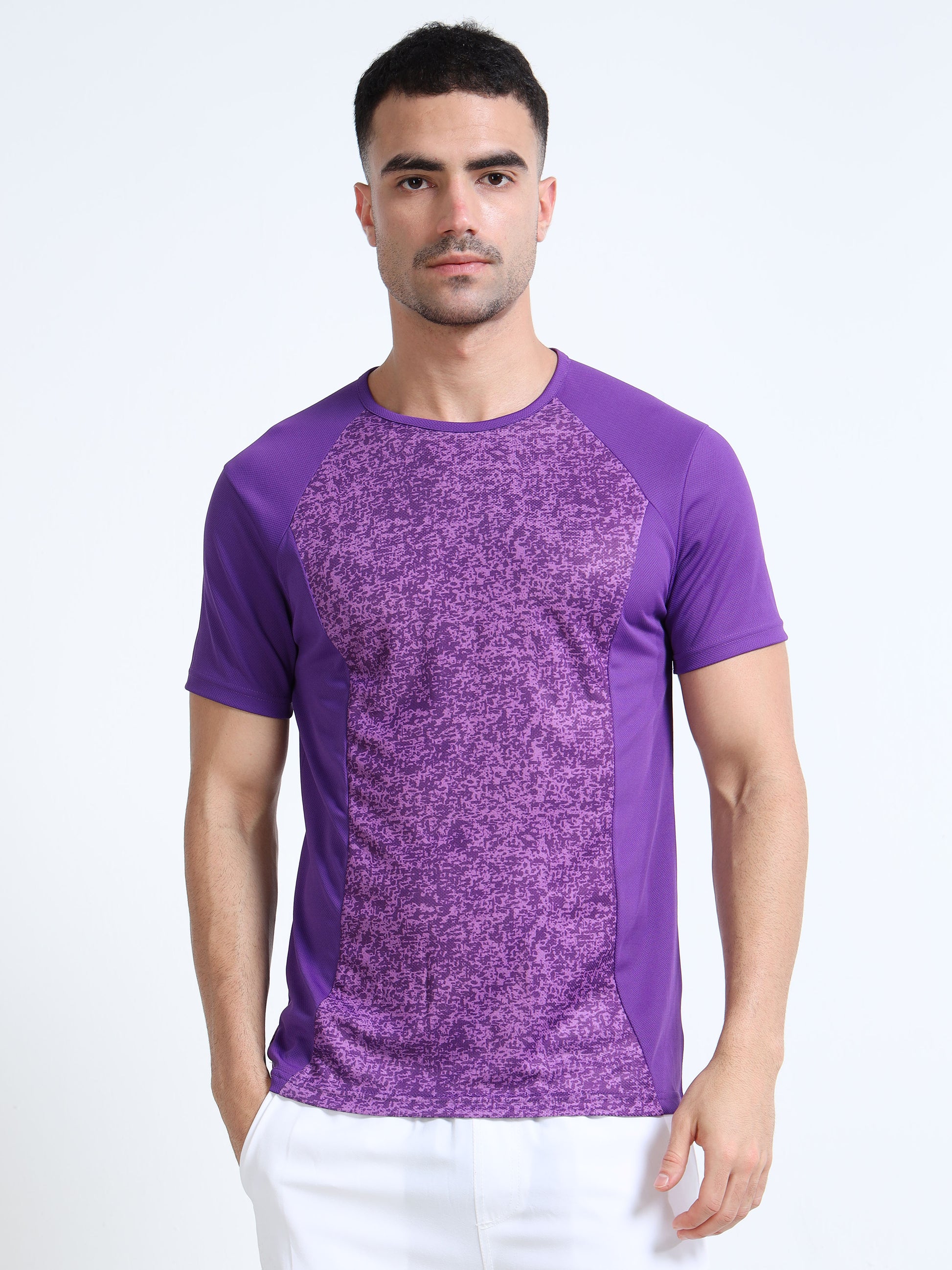 Printed Mens Active T-Shirt - Purple Brush Abstract | Mens Active Wear