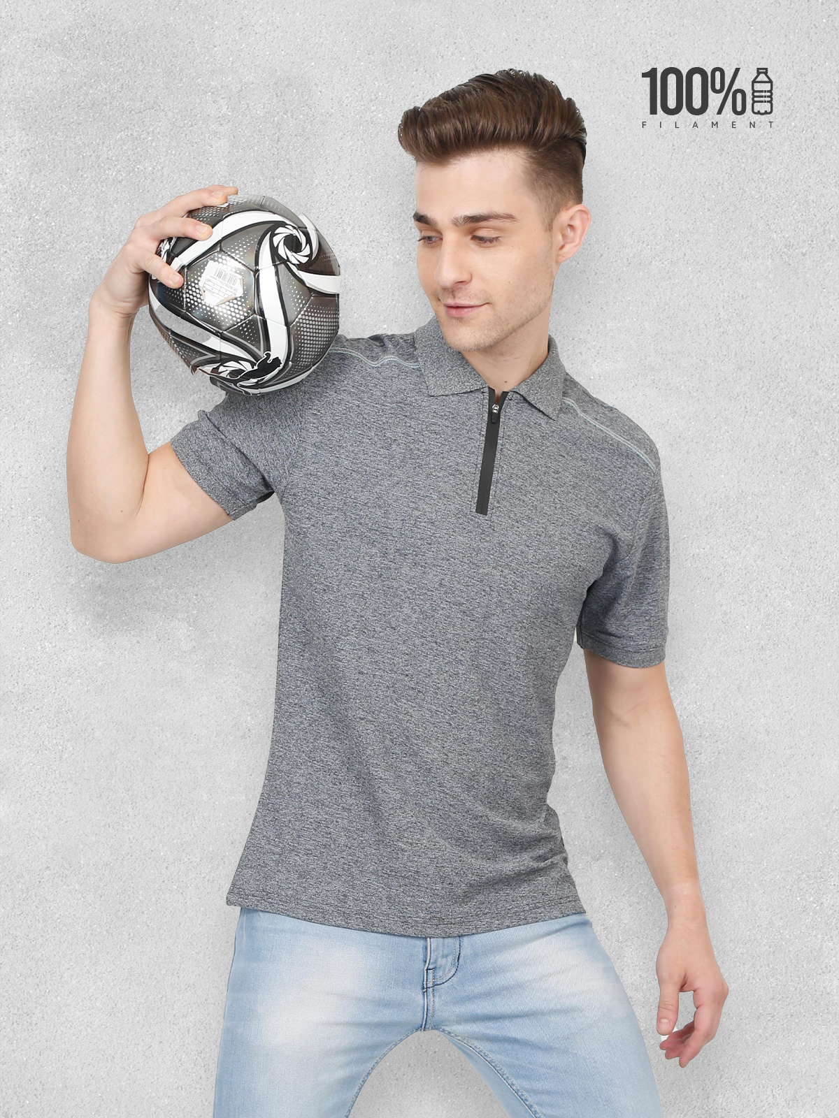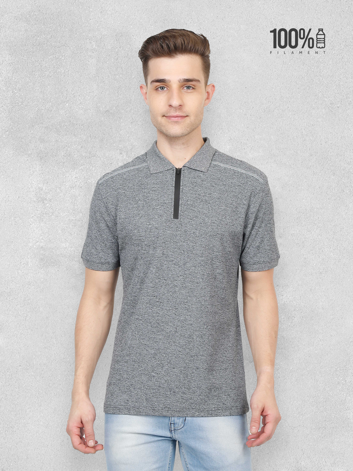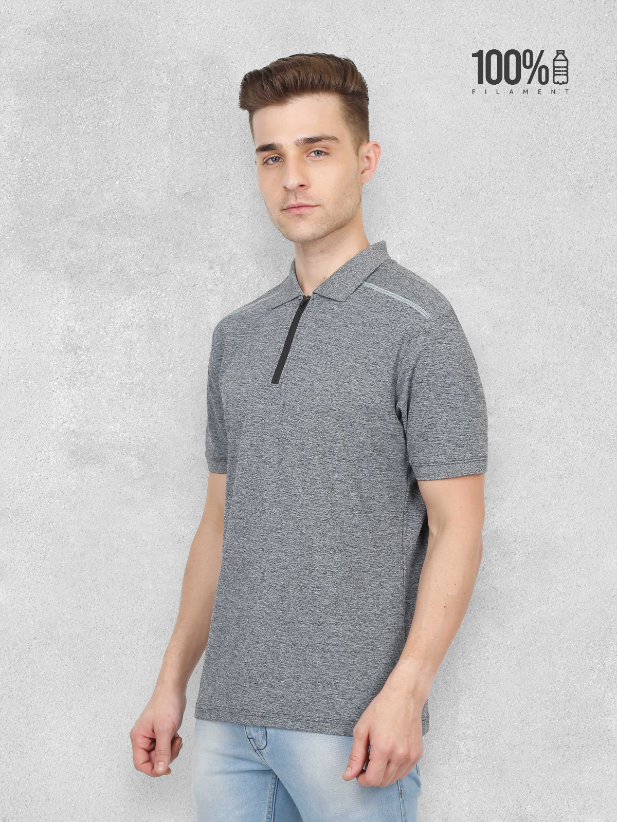 Step into sporty sophistication with our Black Melange Unisex Polo T-Shirt, crafted from 100% Poly Filament for comfort and durability. Designed with a smart collared and cuffed finish, this polo features a sleek black zipper and distinct stitch detailing for a bold, athletic look.