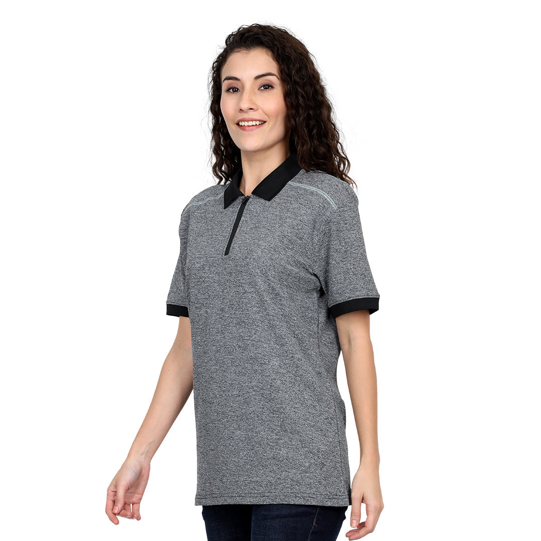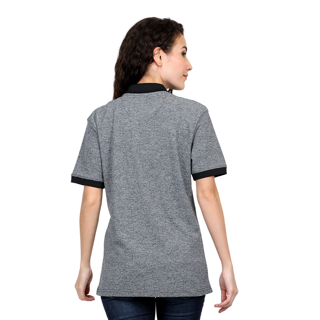 Black Melange with Deep Black Collar - Unisex Sporty Polo TShirt