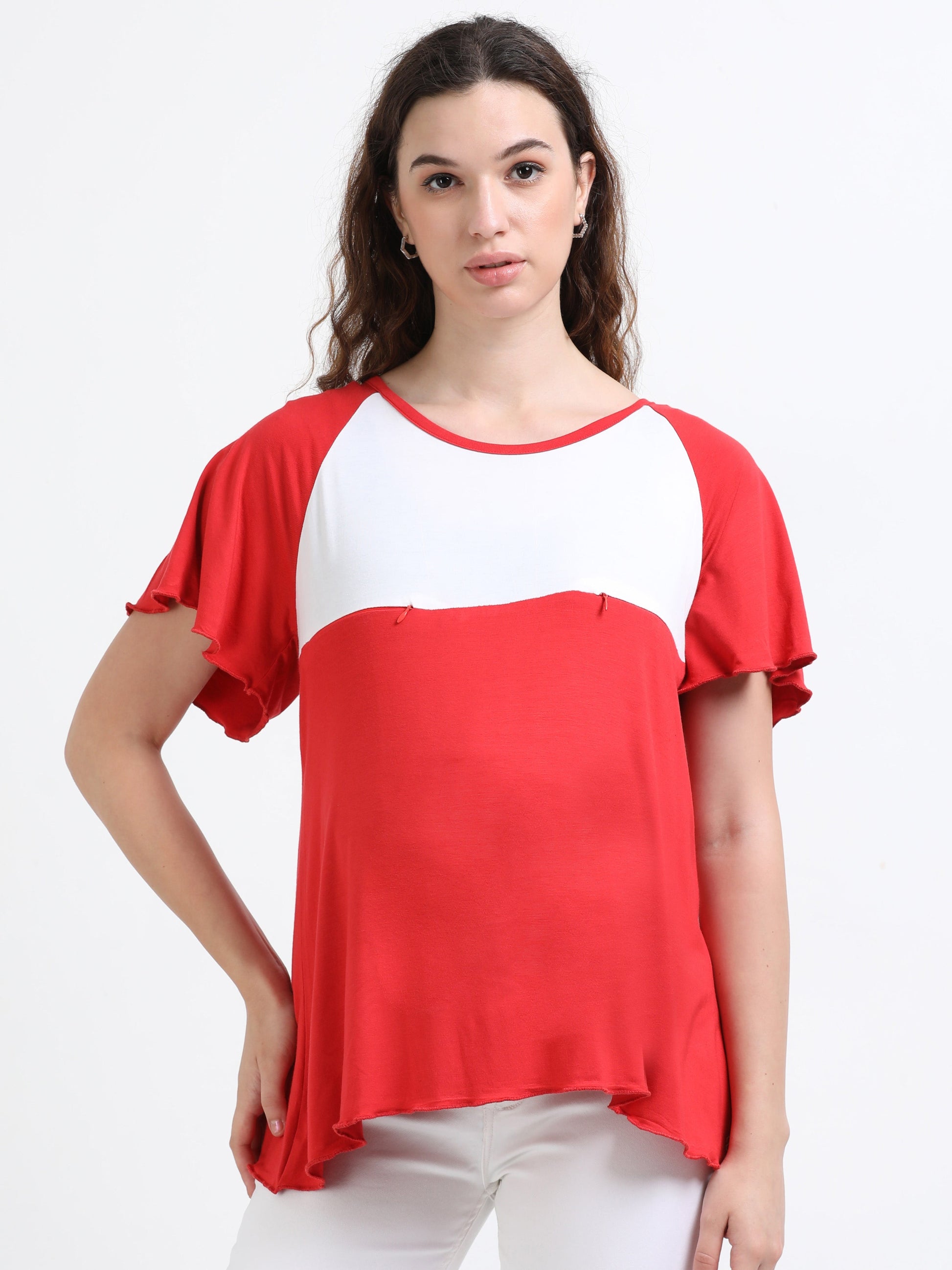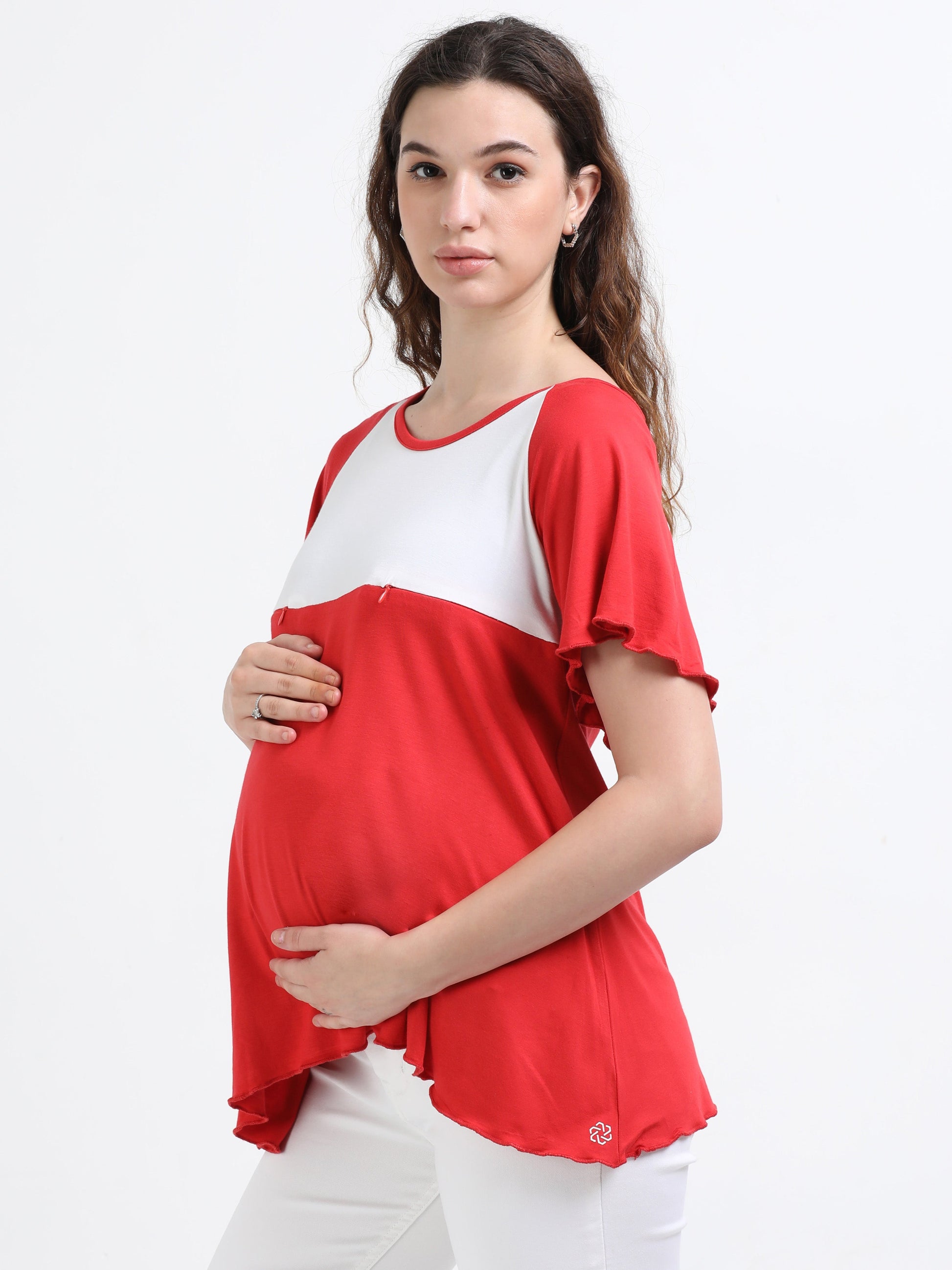 Women's Flared Maternity & Nursing Tops With Bamboo Fabric - Salsa Red