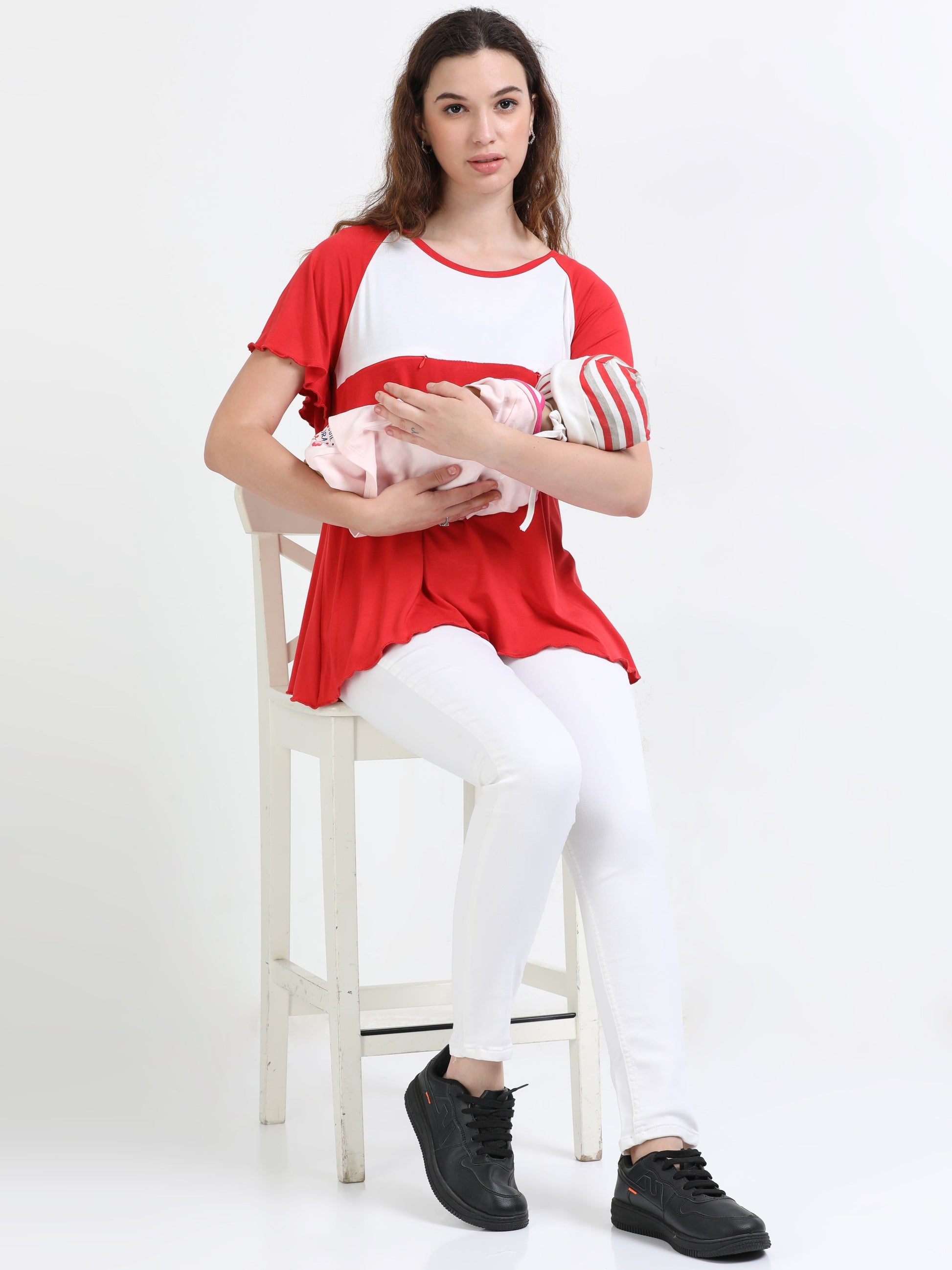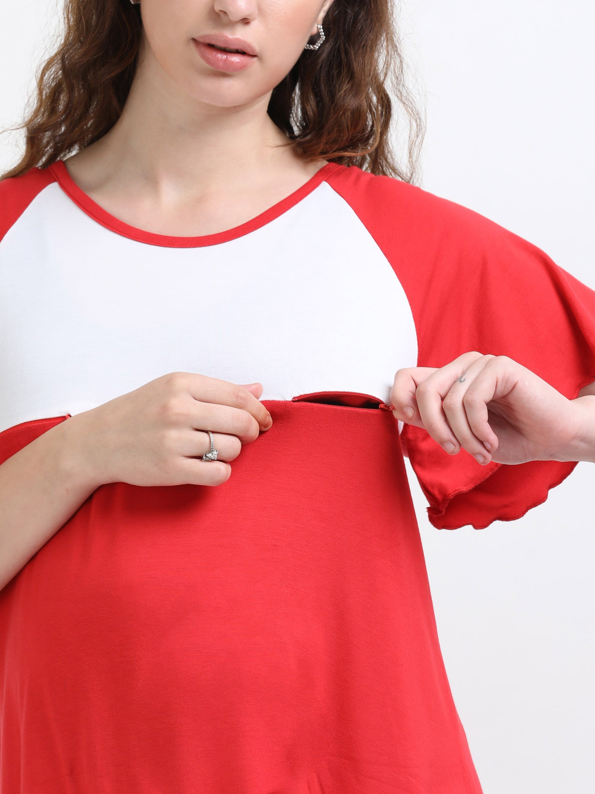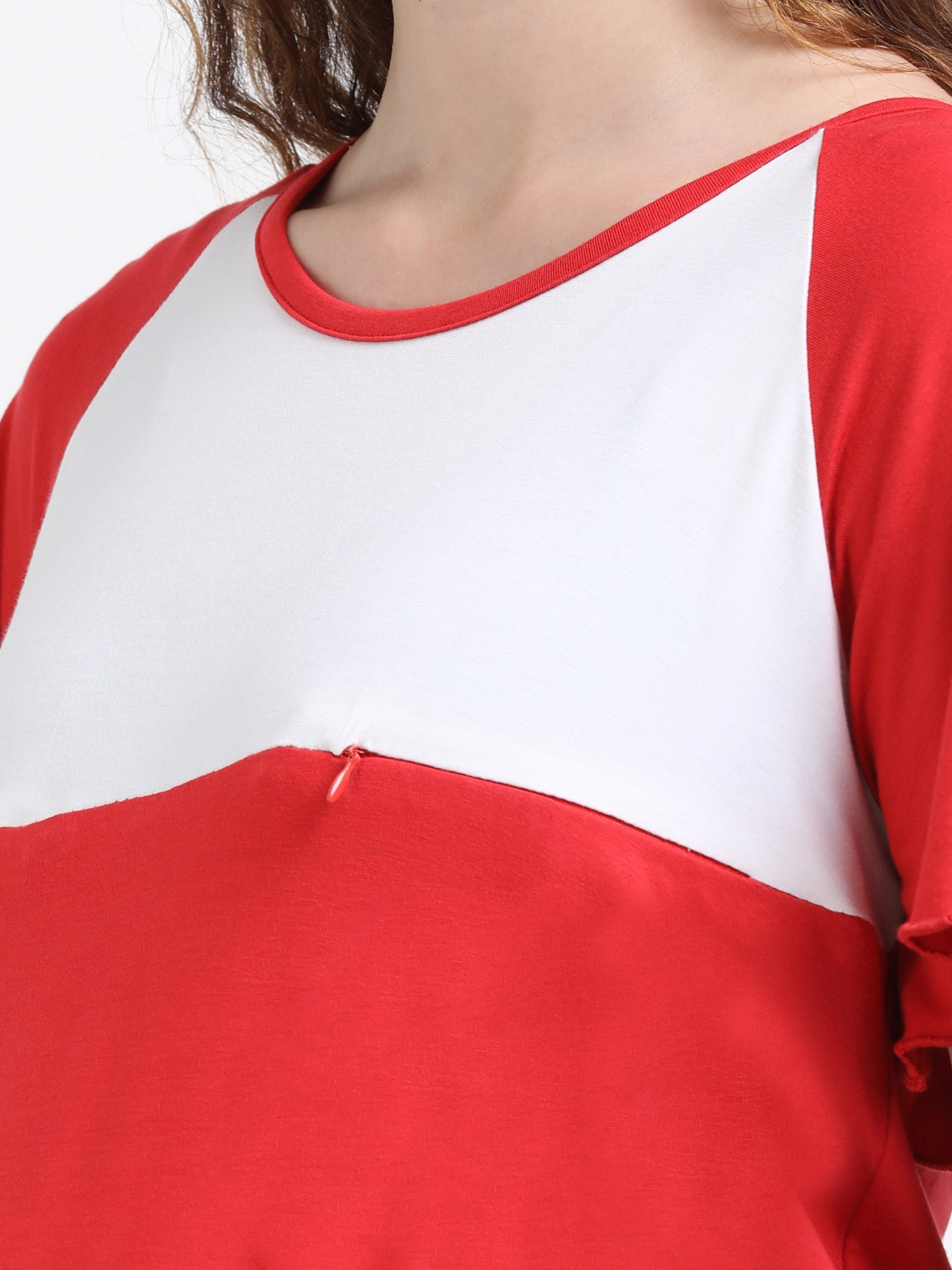 Are you a new mom? Looking for comfortable , functional and stylish outfits? Our new Bamboo lycra flared top with half length flared sleeves and 2 concealed horizontal zippers delivers just that. Pair it with your favourite pants or shorts and you are ready for the day. Crafted from bamboo fibres, this top offers a breathable, skin-friendly, and sustainable solution for maternity and postpartum wear. The fabric ensures excellent moisture absorption, odor resistance, UV protection, and stretchability for lasting comfort and flexibility.