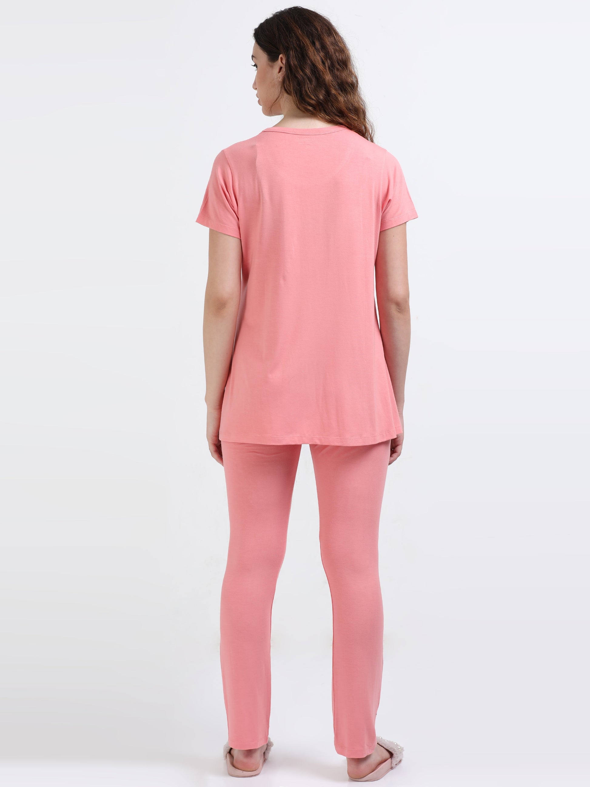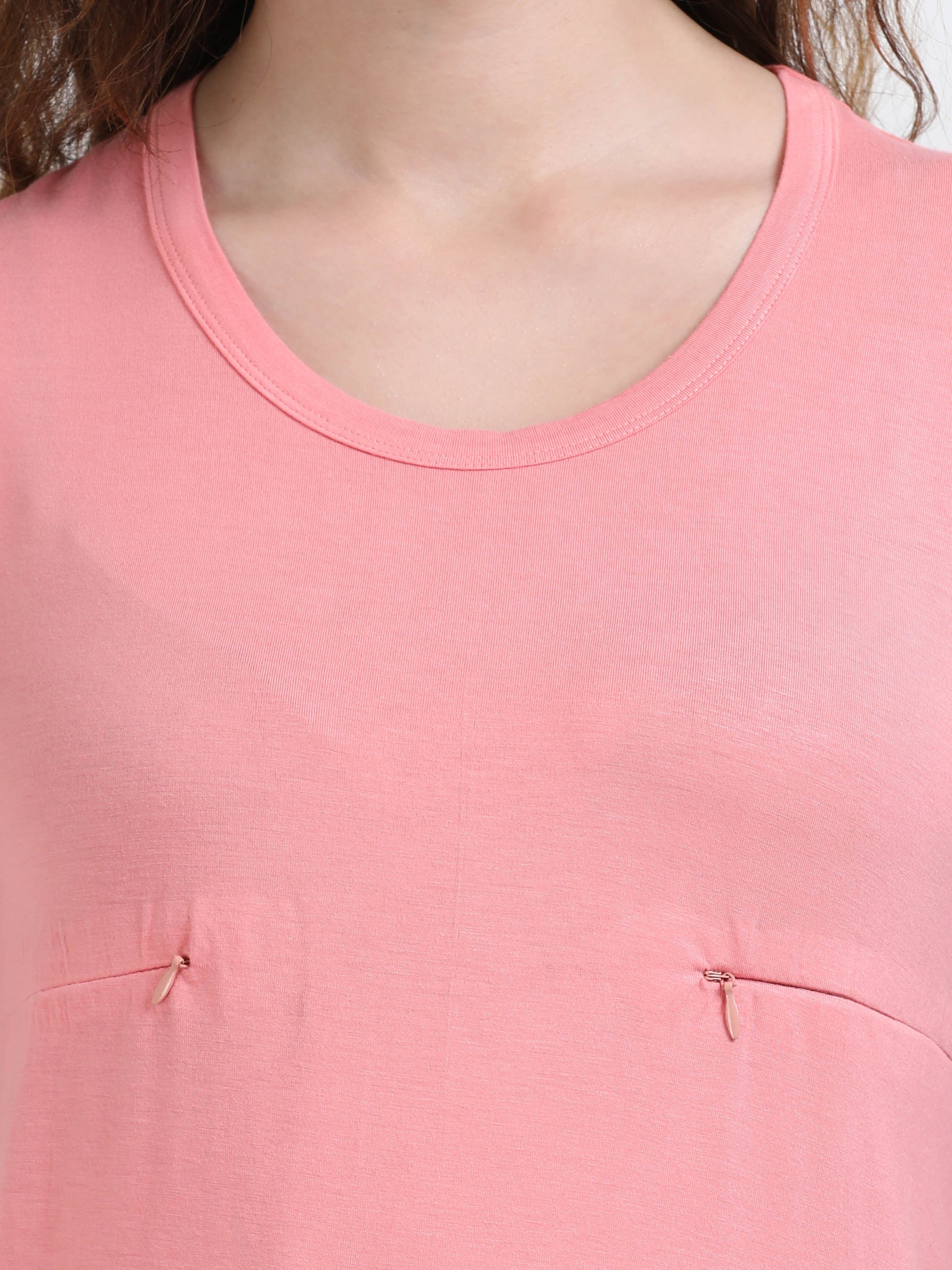 Whether you’re winding down or up with your little one, this maternity pyjama set is your go-to for all-day comfort and all-night ease. Crafted from soft, breathable bamboo lycra, the top is odor-resistant, moisture-absorbent and ultra-skin-friendly. The Basic round neck tee with 2 horizontal concealed zippers which makes it comfortable and functional. Loose elasticated straight fit pants with adjustable drawstrings and 2 slant pockets. Overall this pyjama set provides you with a supportive and comfortable fit along with the soft bamboo fabric which moves with you. These bamboo maternity pyjama set is gentle on you and on the planet.