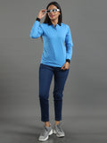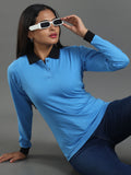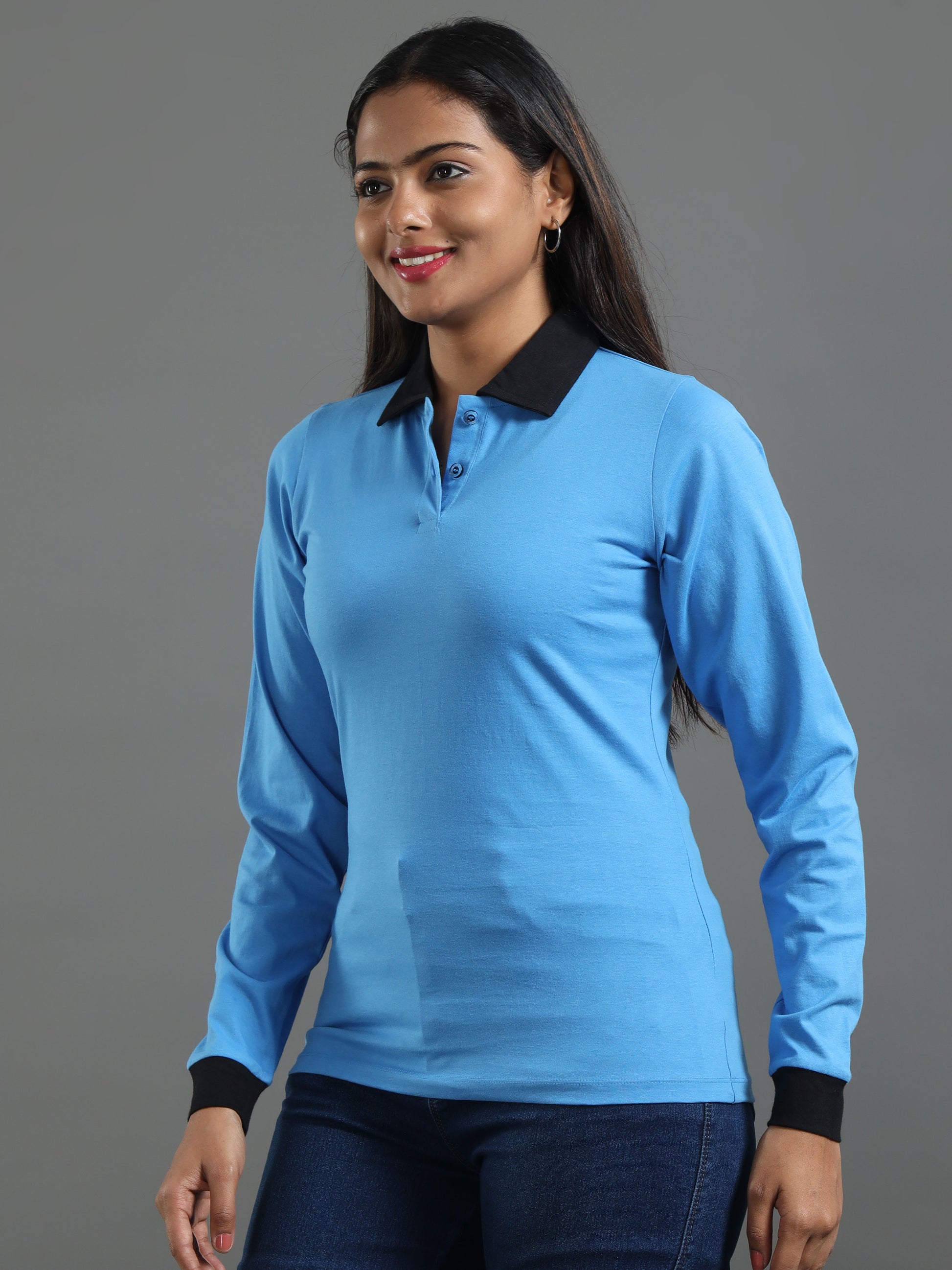 Women's Recycled Cotton Full Sleeve Polo T Shirt - Royal Blue