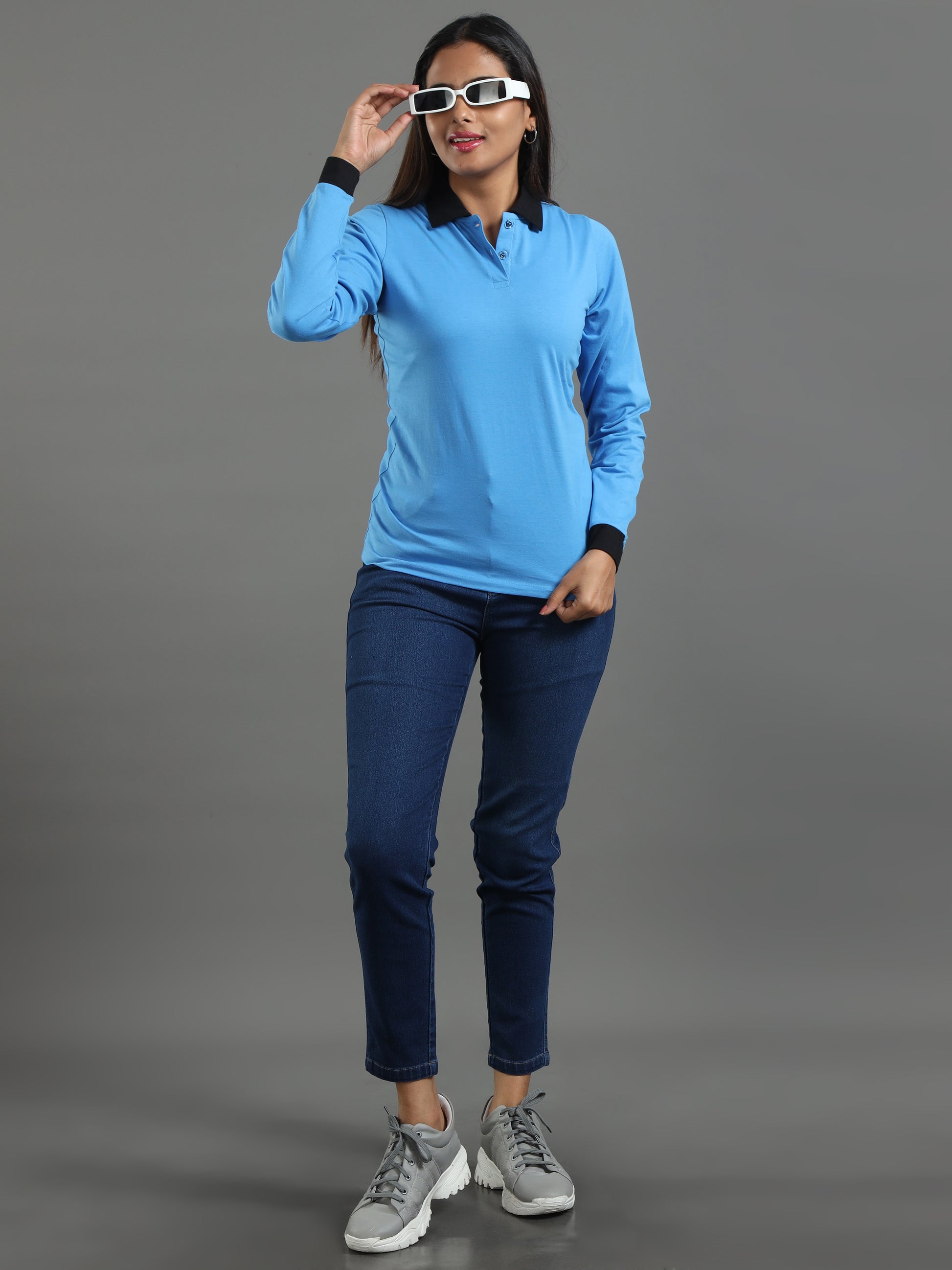 Women’s Recycled Cotton Full Sleeve Polo T-Shirt – Soft, Breathable, and Comfortable