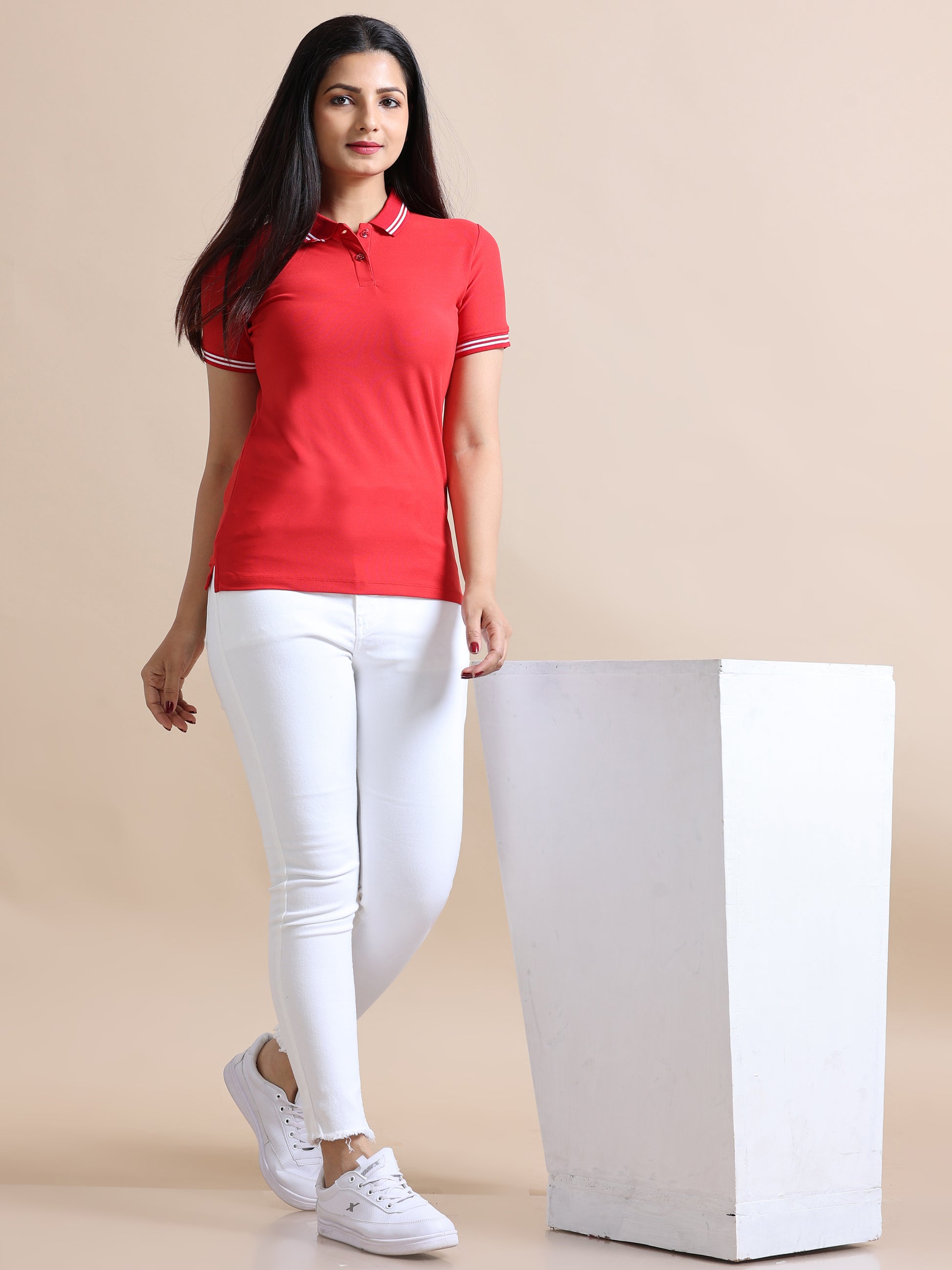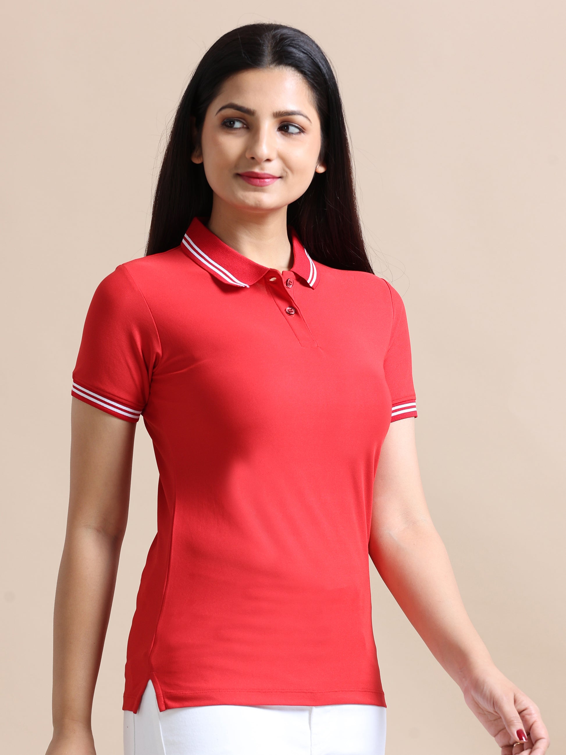 Women's rPET Tipping Polo TShirt - Arrow Red