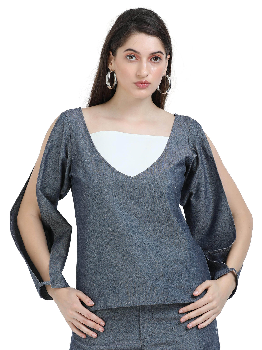 Women's rPET Crop Top With Panel Cut Out Sleeve – Dark Navy