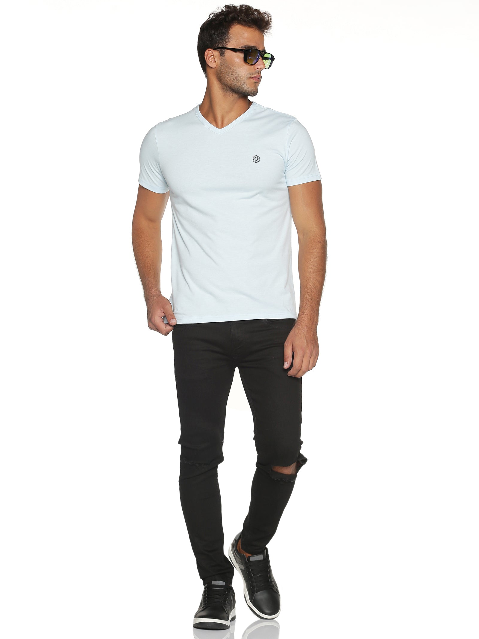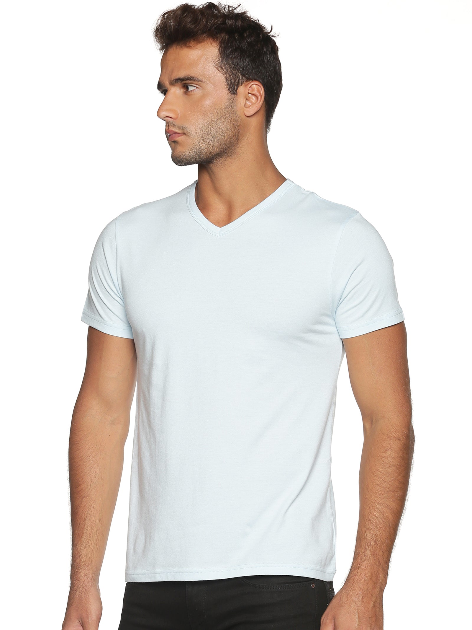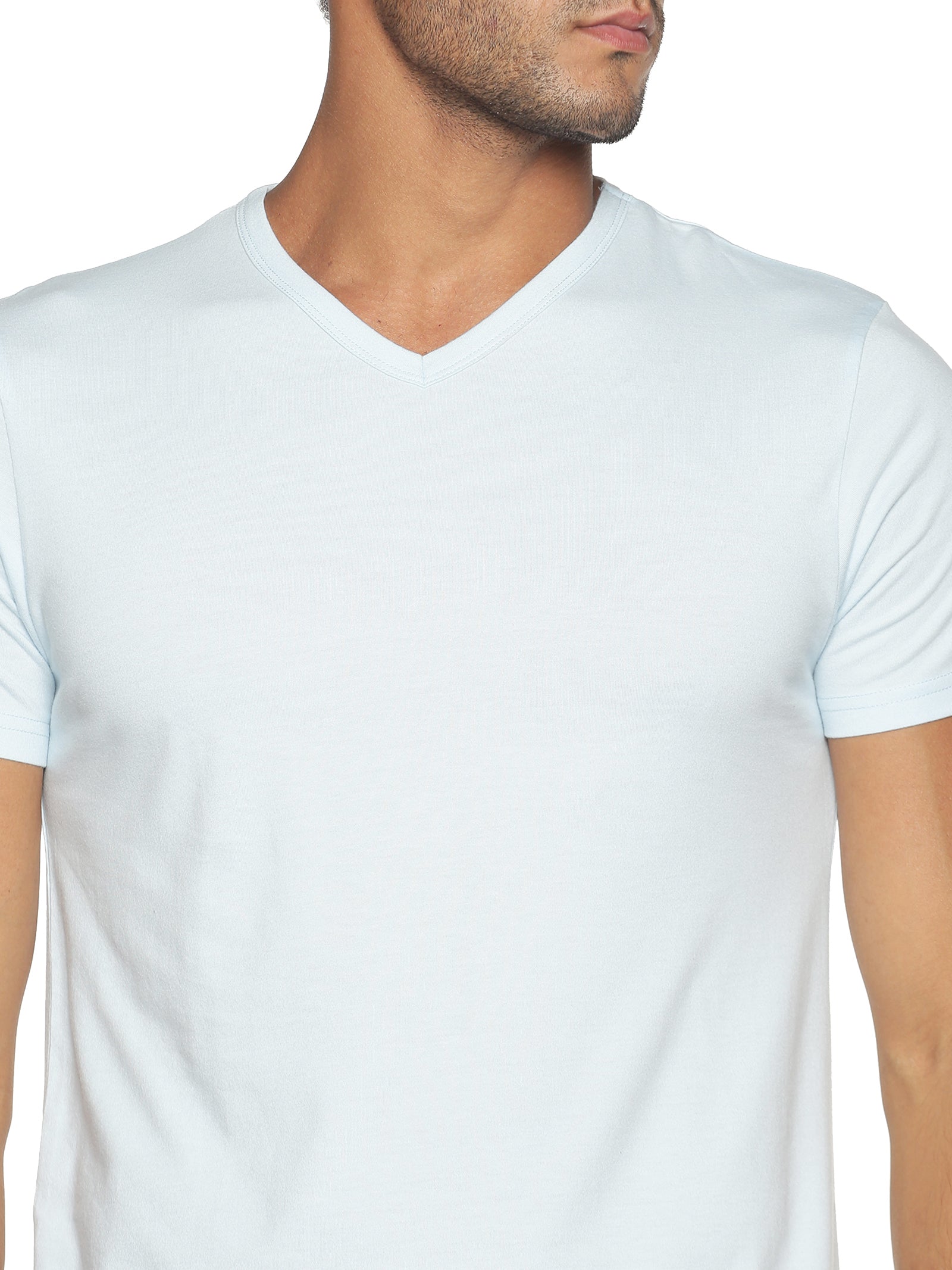 Men's Recycled Cotton V-Neck TShirt - Whispy Blue