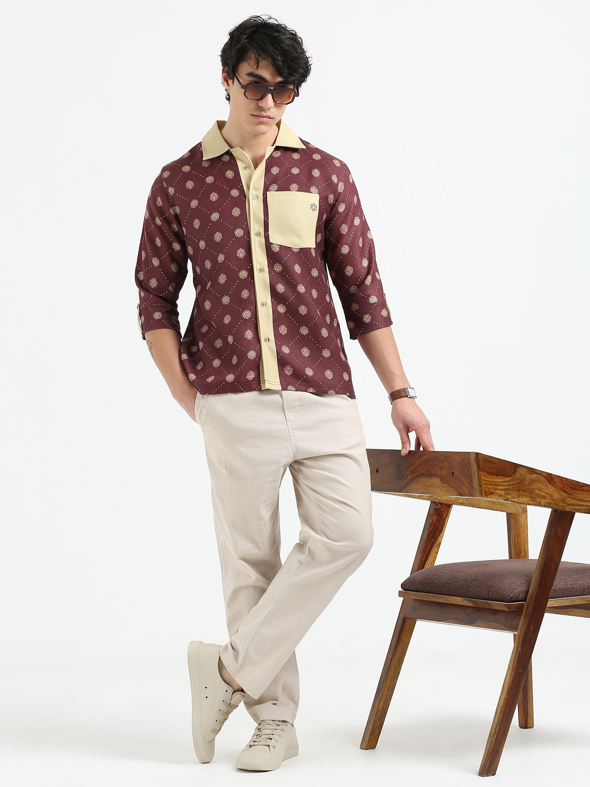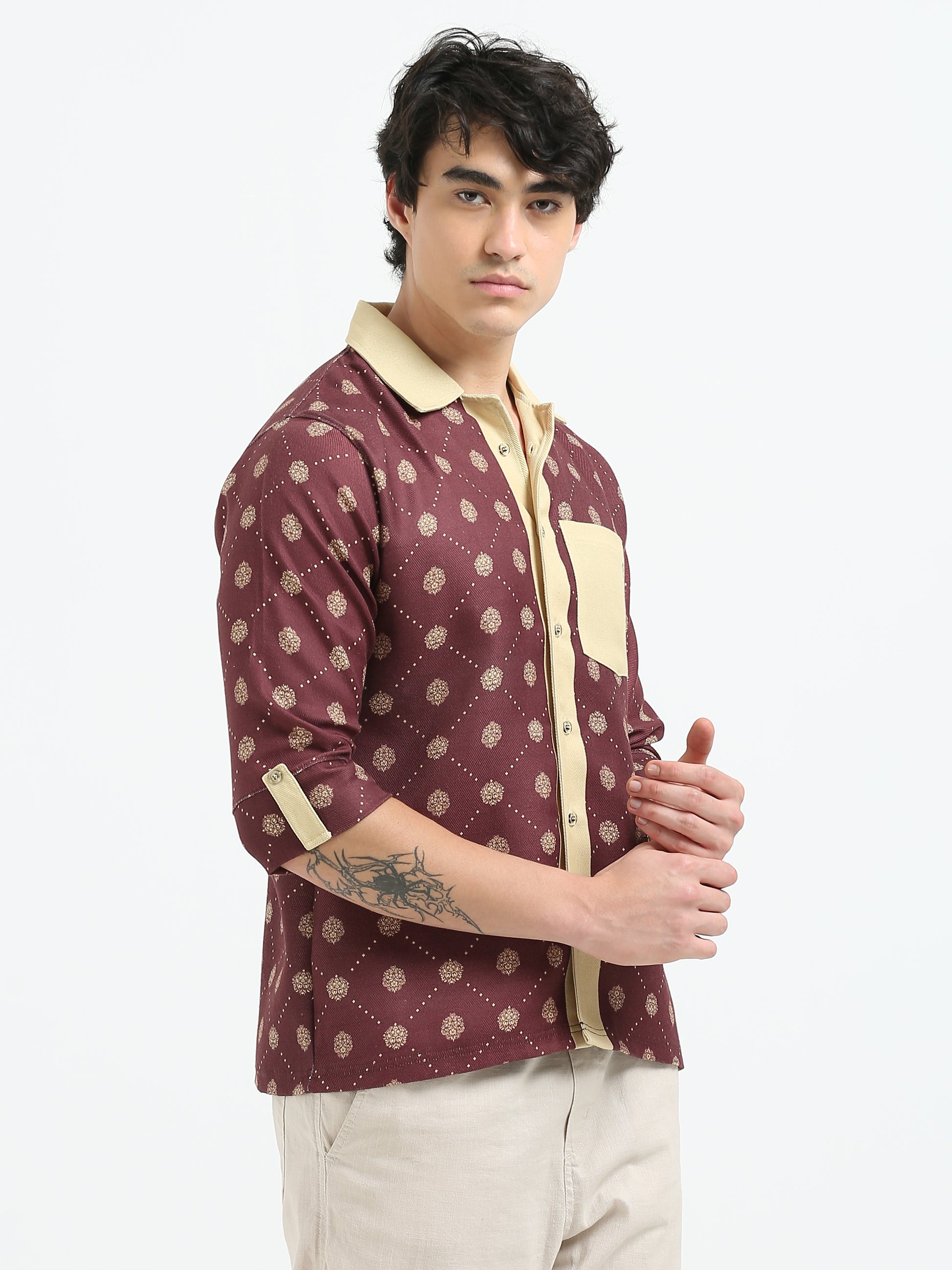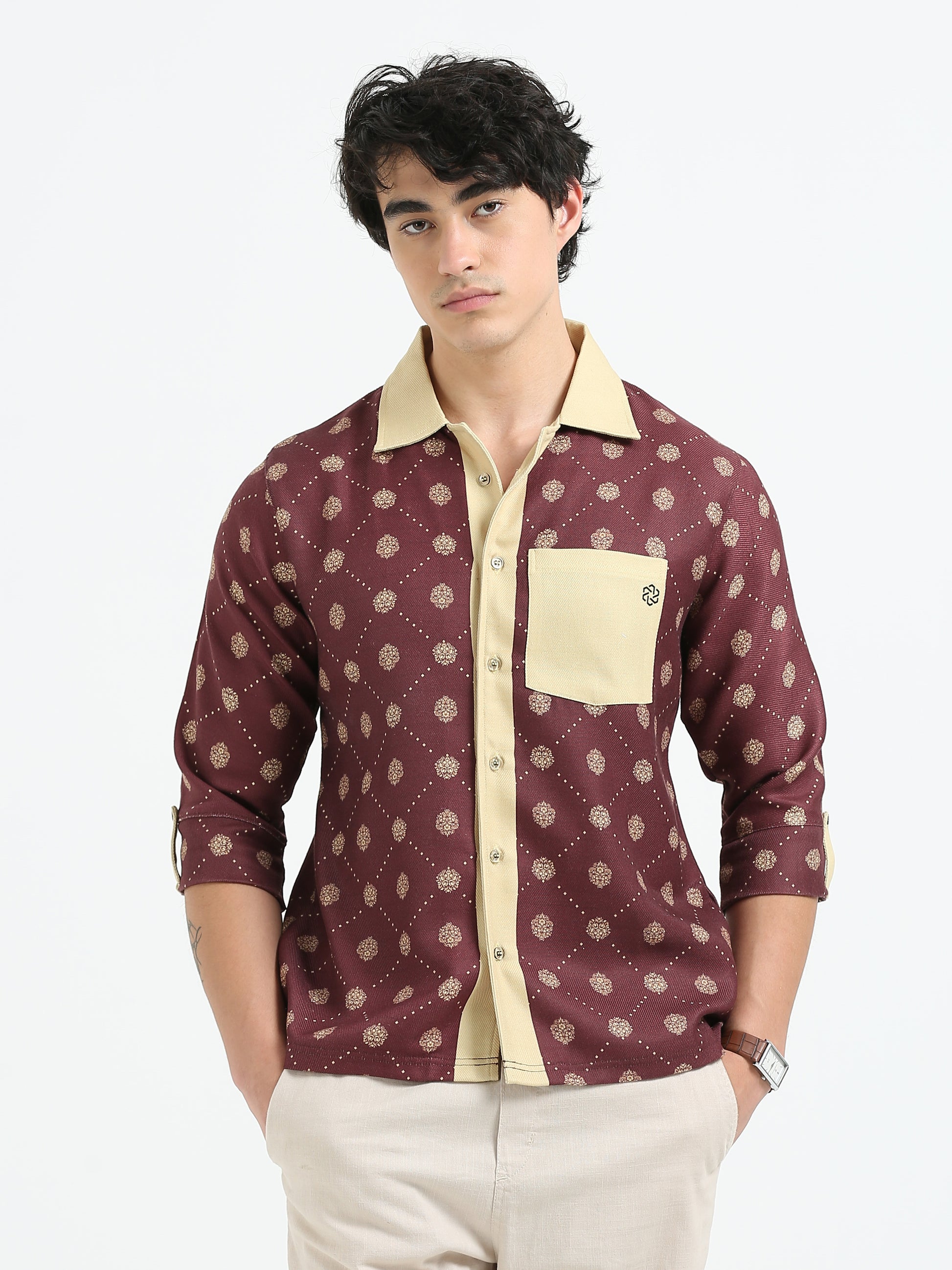 Men’s Indie Printed Woven Shirts With Pocket - Brown Baroque