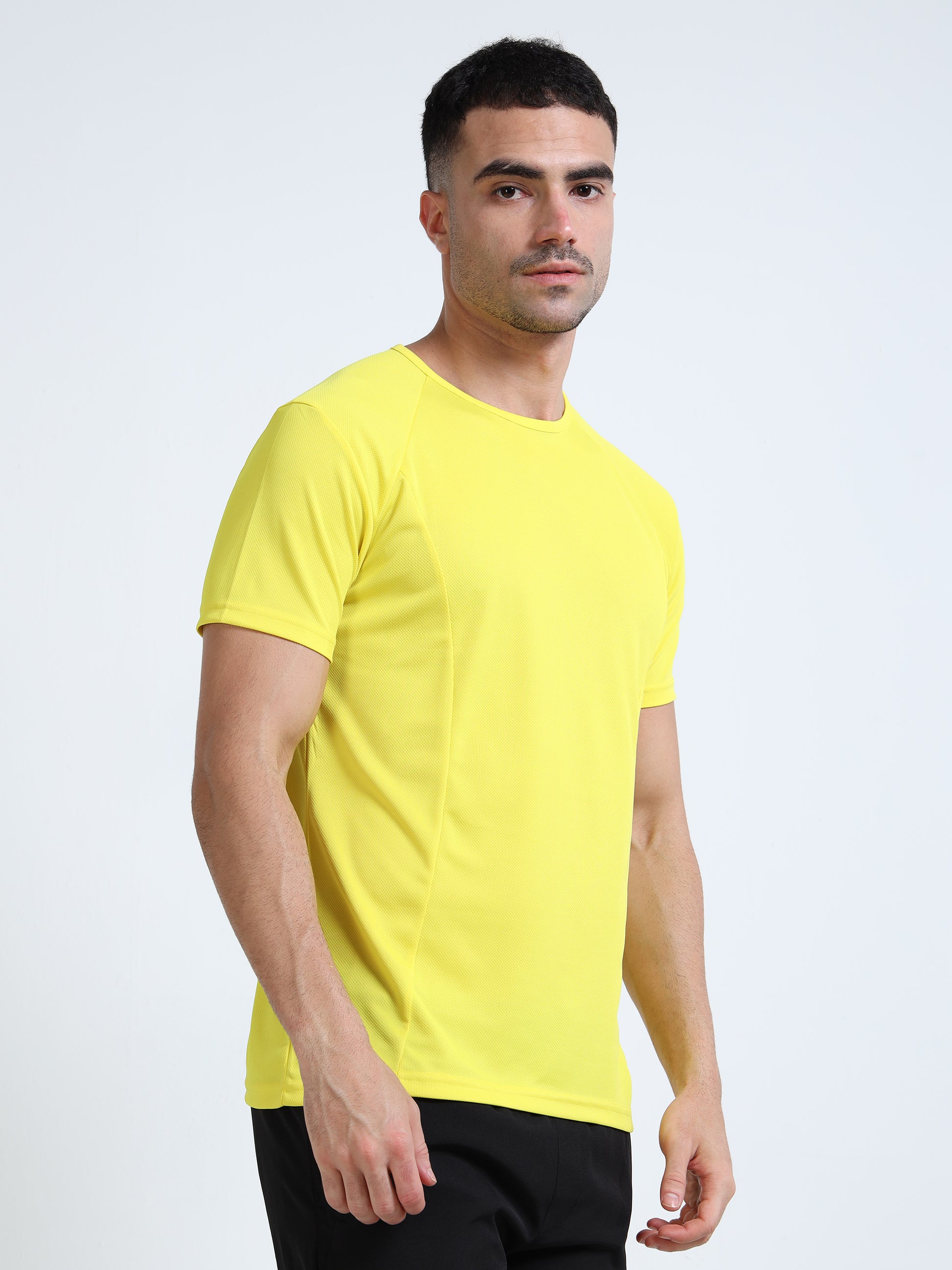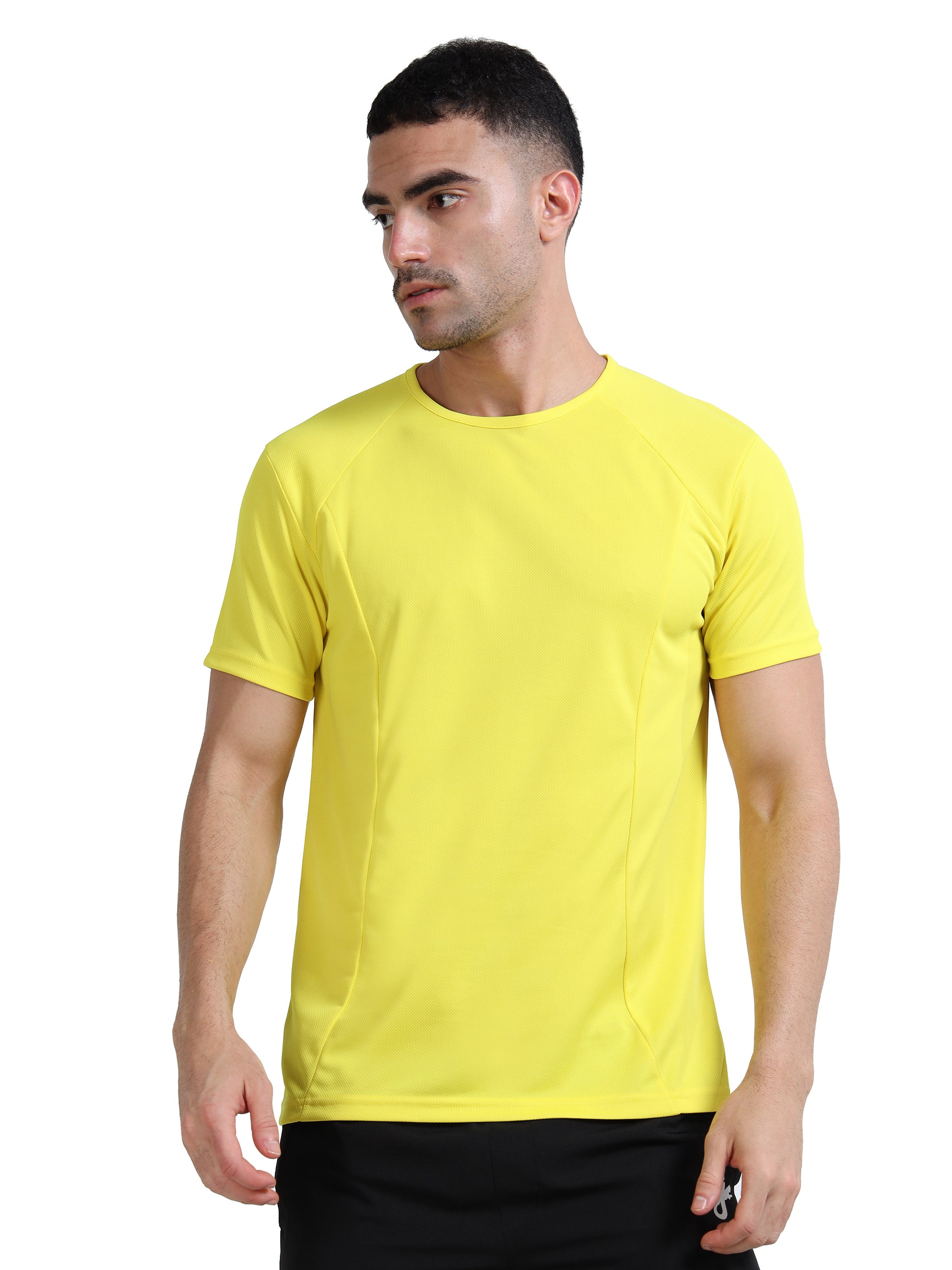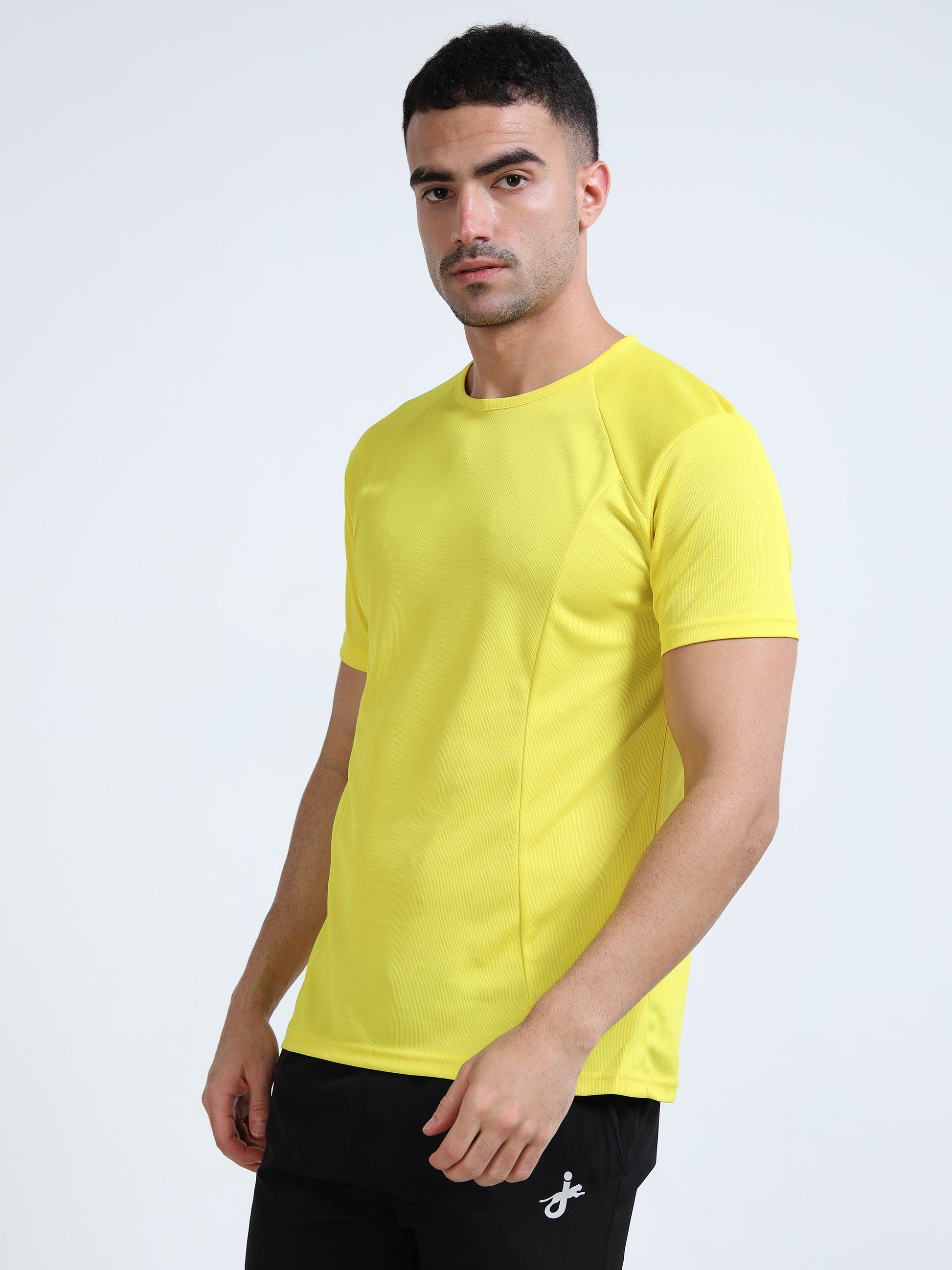 Mens Gym T-shirt in Rice Knit Fabric - Lemon | Mens Active Wear
