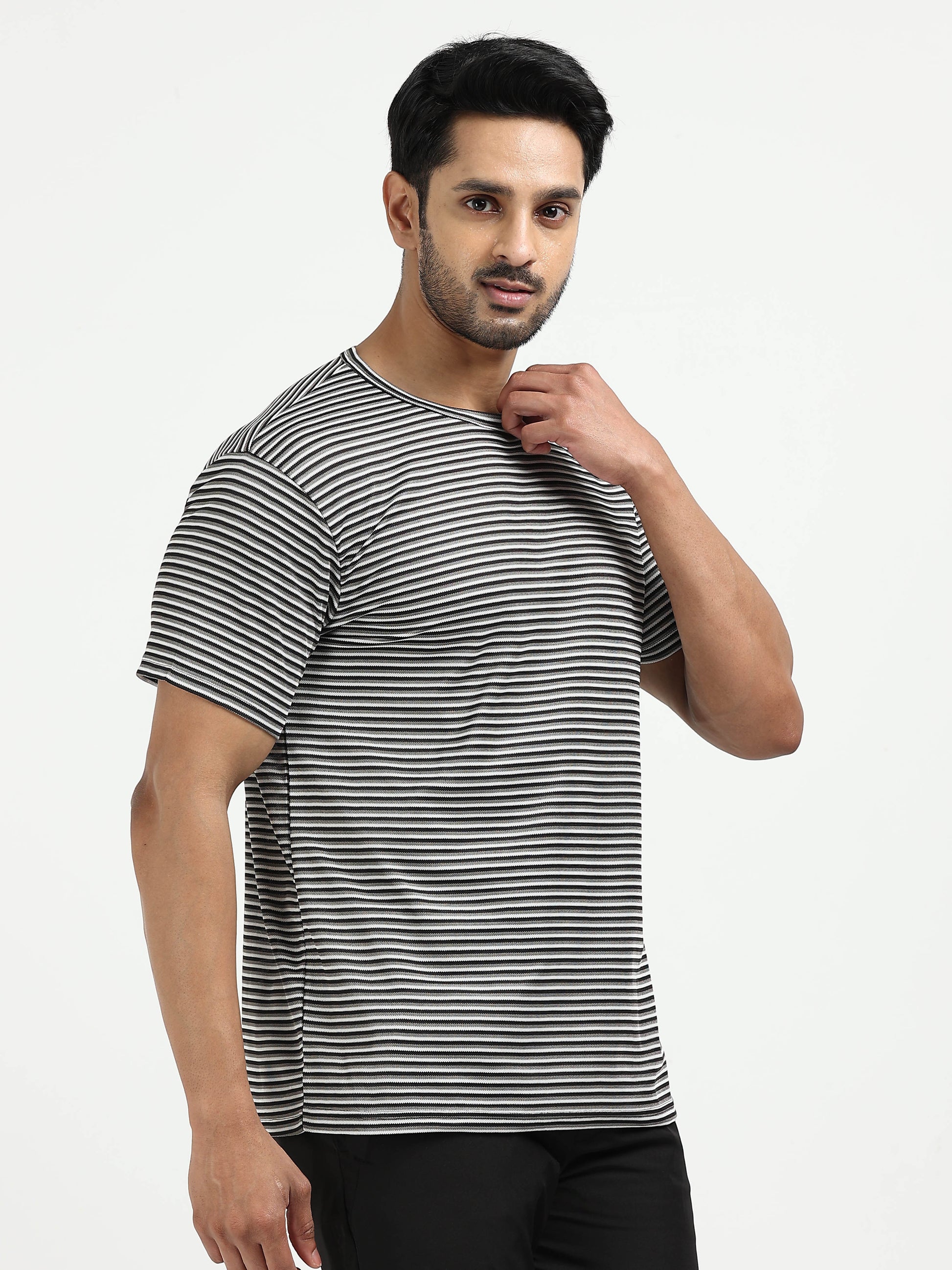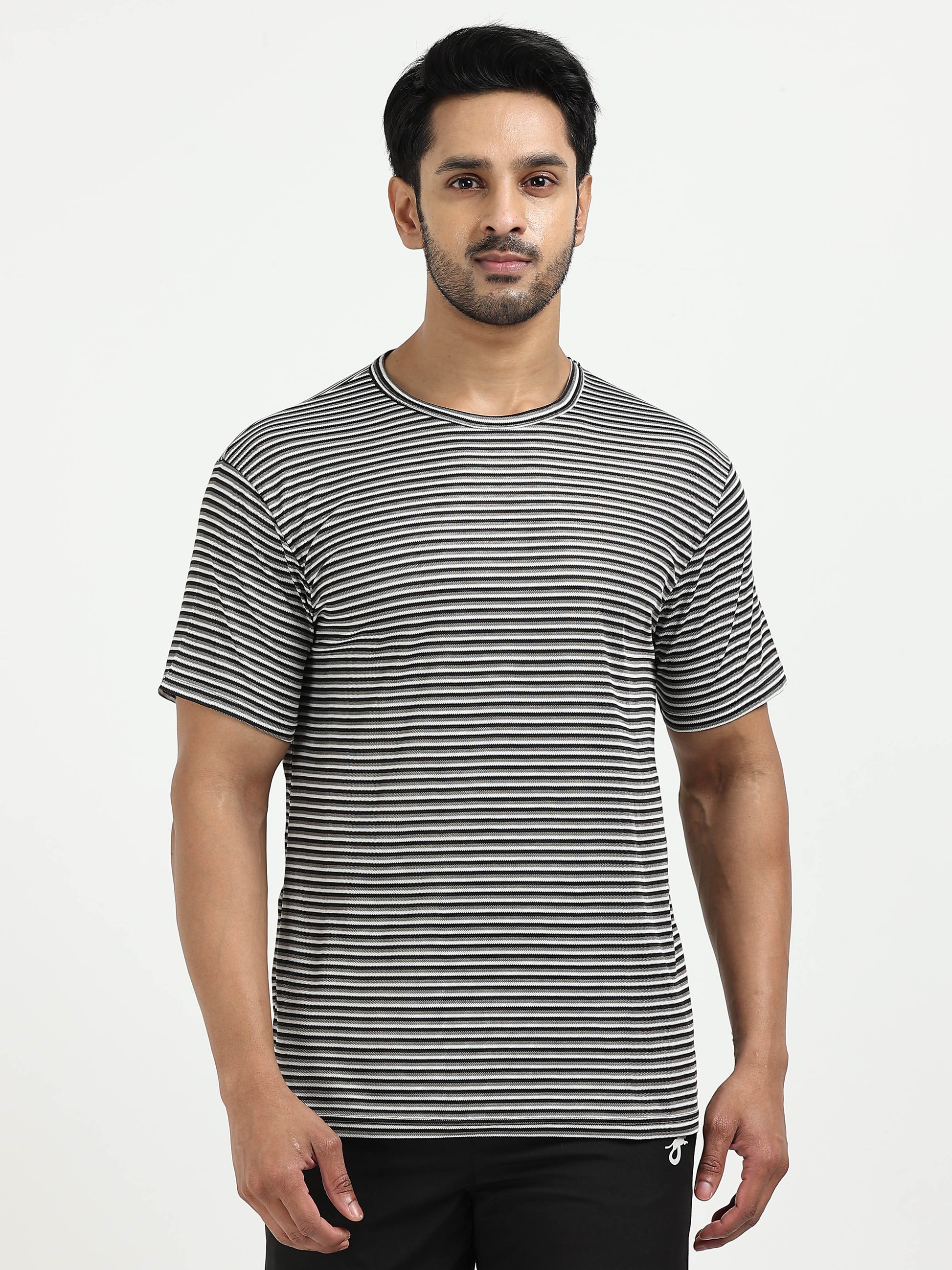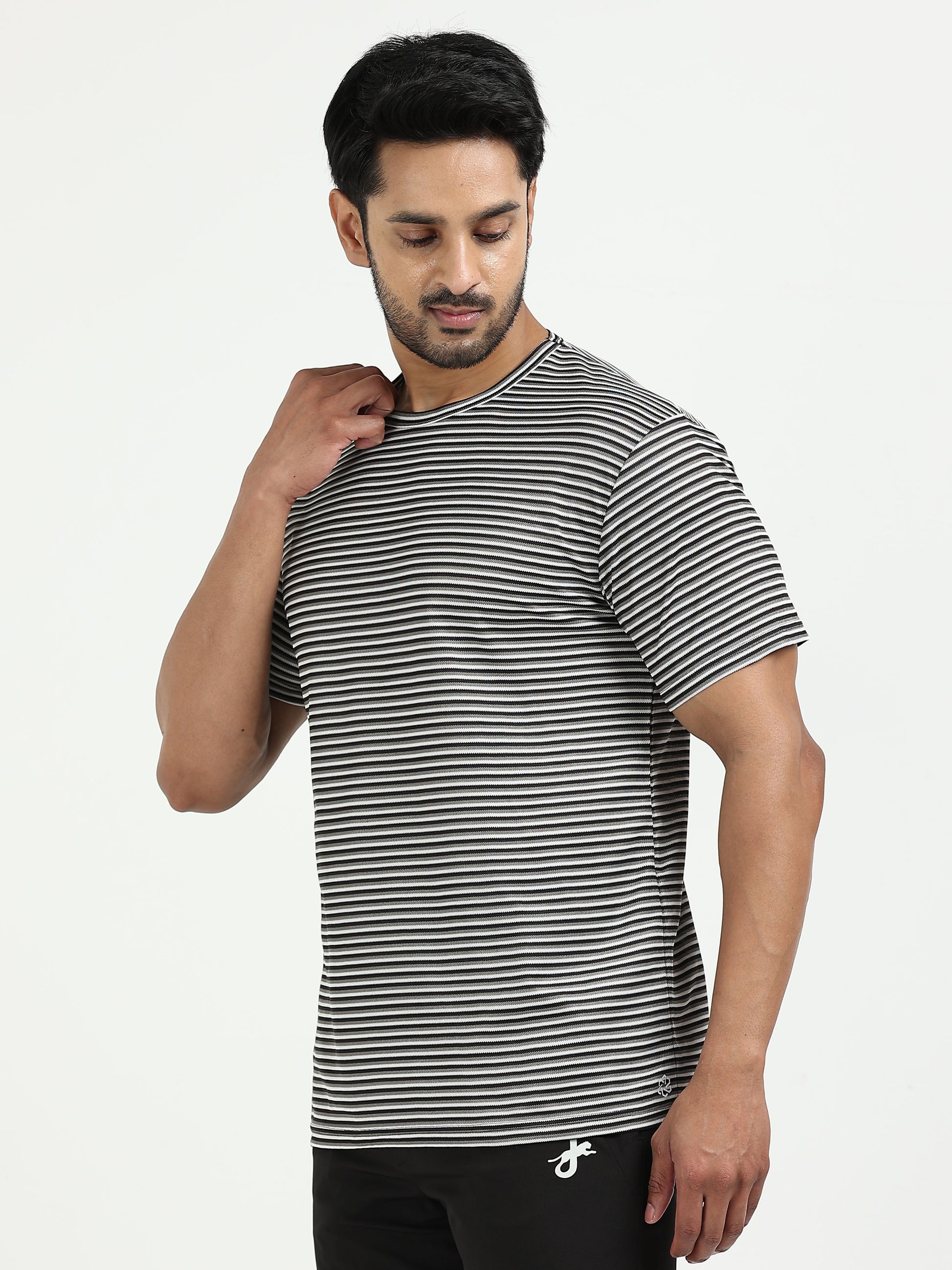 Mens rPET Drift Striped Tee – Black & Steelgrey & Semidull