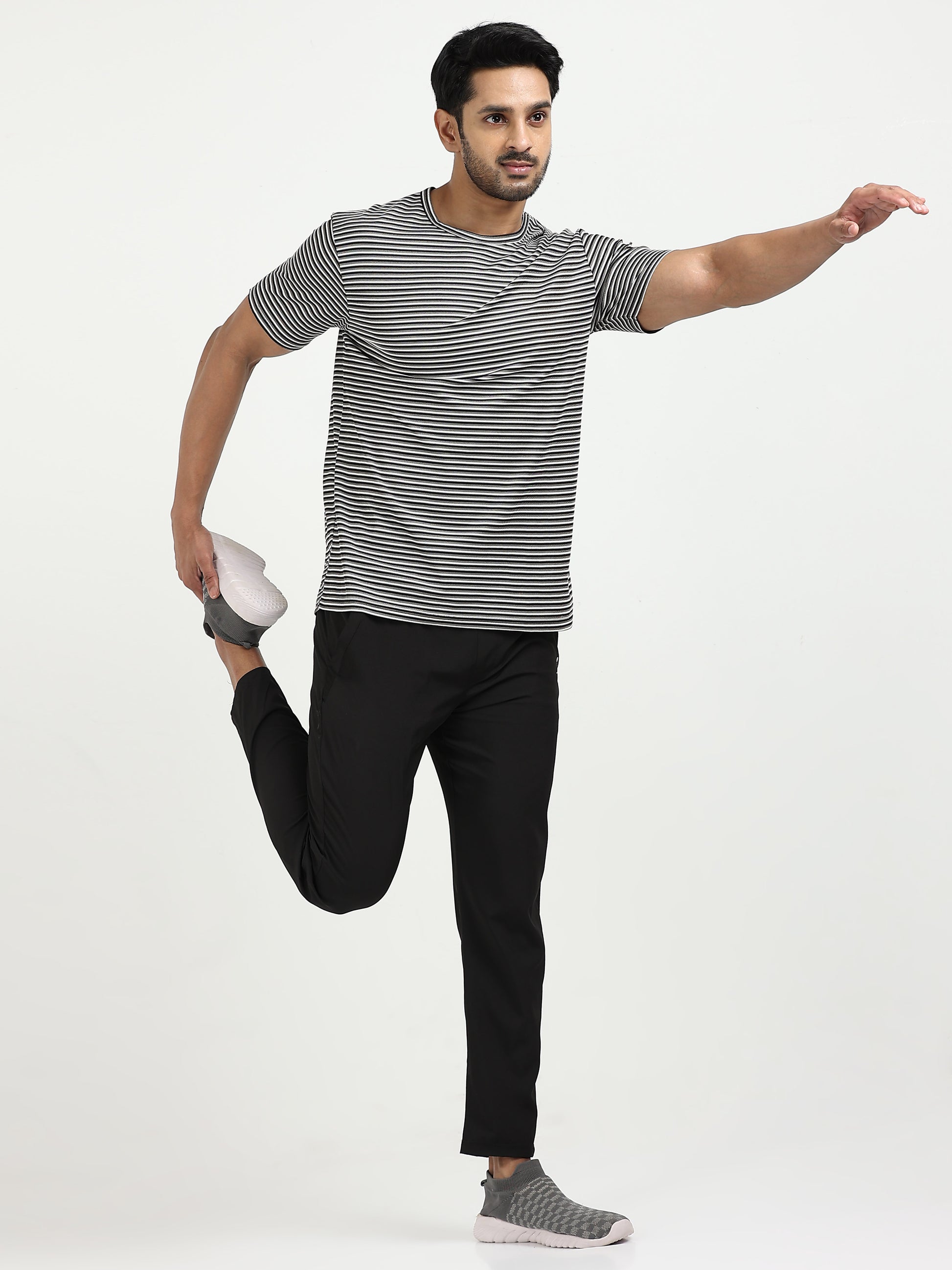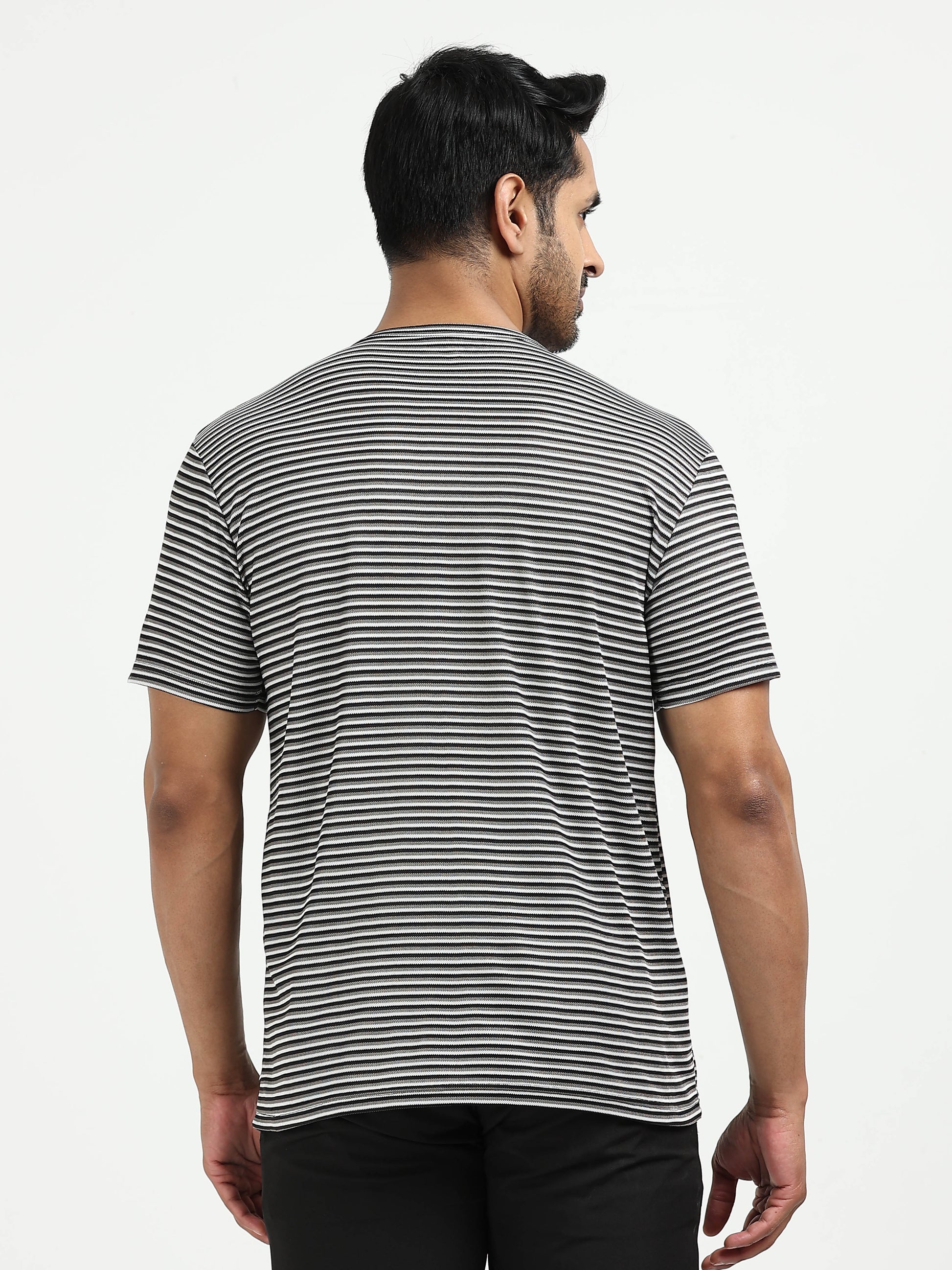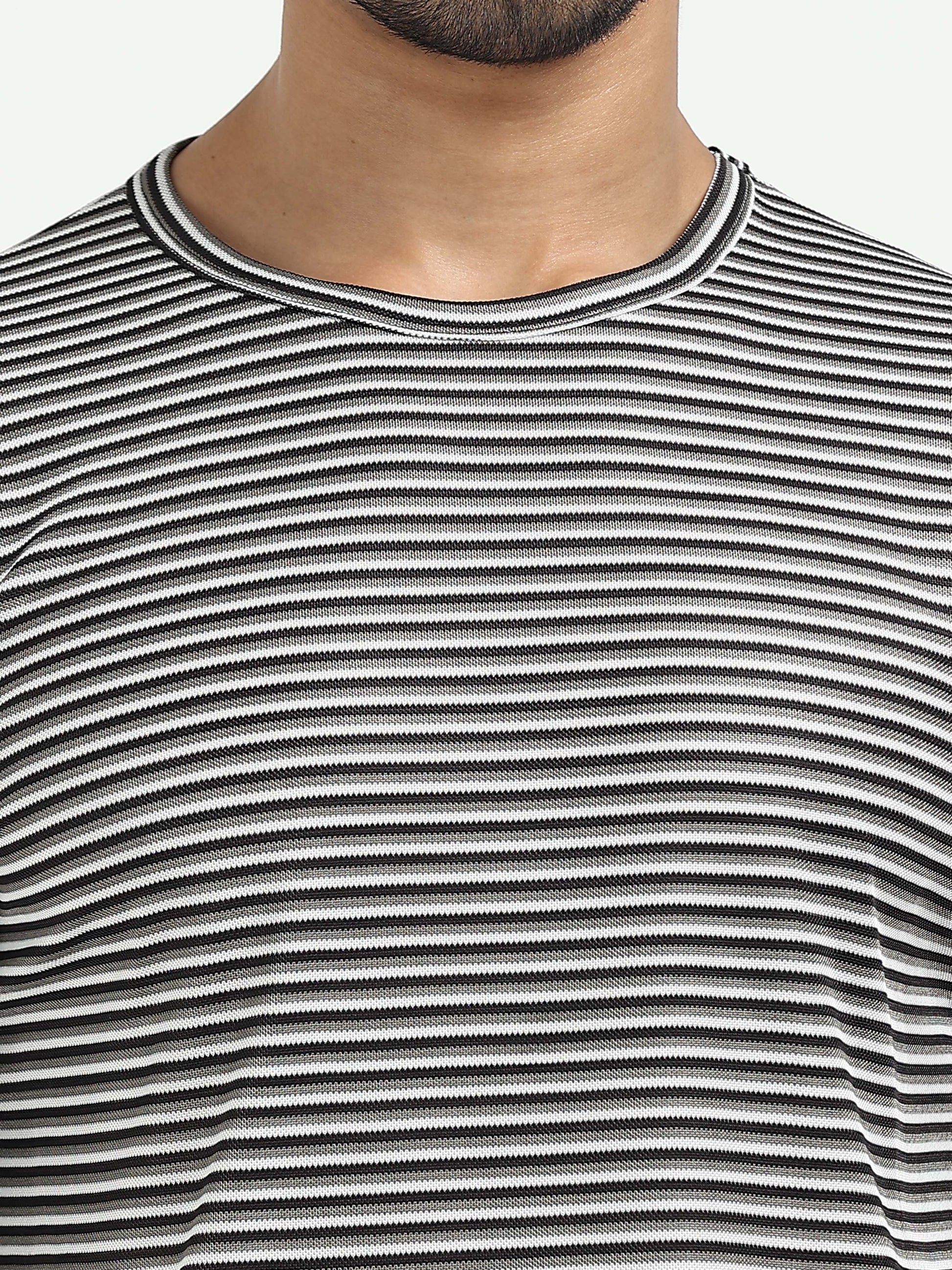 Mens rPET Drift Striped Tee – Black & Steelgrey & Semidull