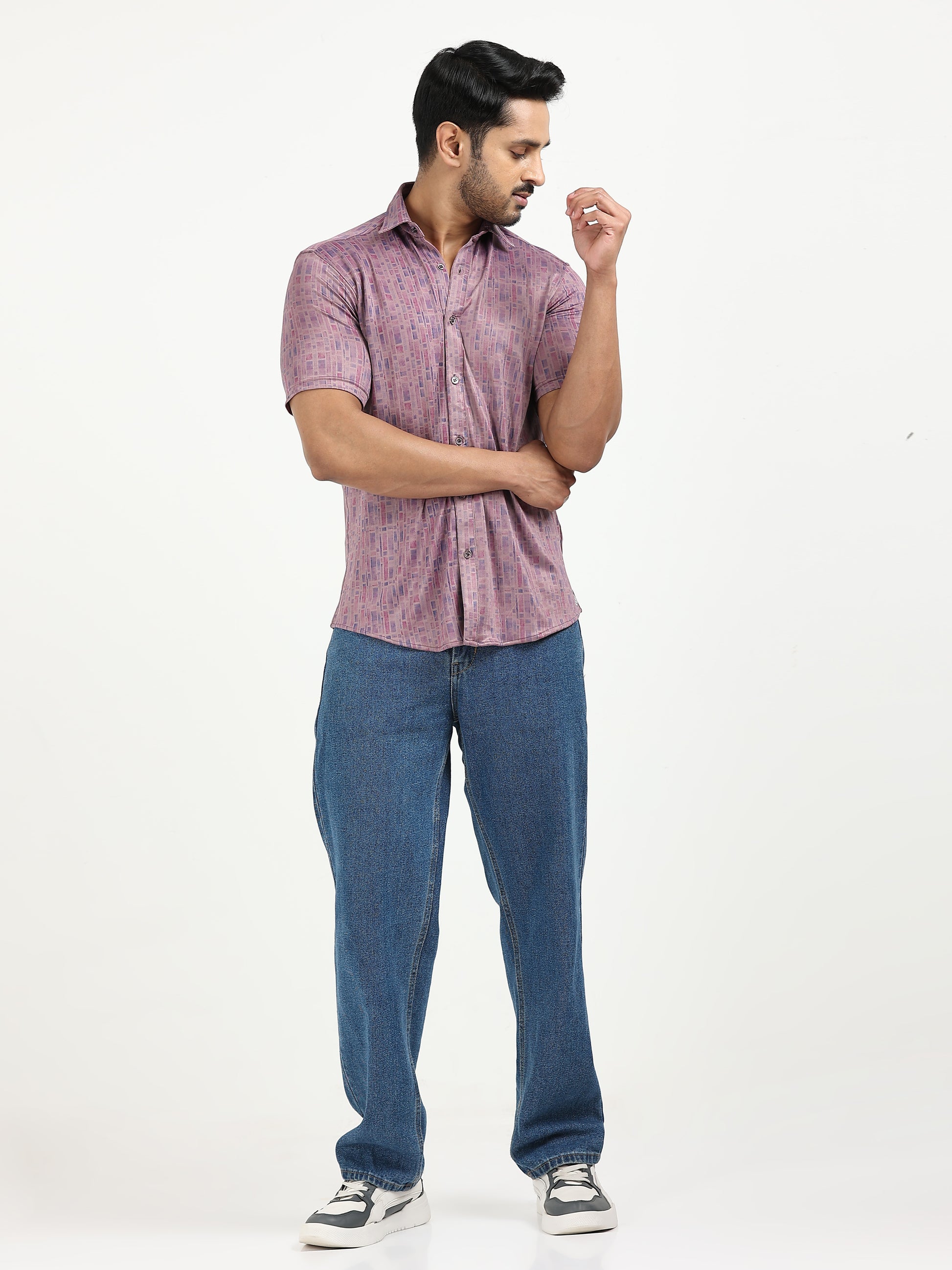 These self printed,soft hued shirts are made from our super soft and sustainable yarns blended with lycra for comfy stretch. Redefining smart casuals - these shirts can be paired with anything based on the desired look. Morning meeting to afternoon coffee runs to nightouts these shirts will be work in your favour.