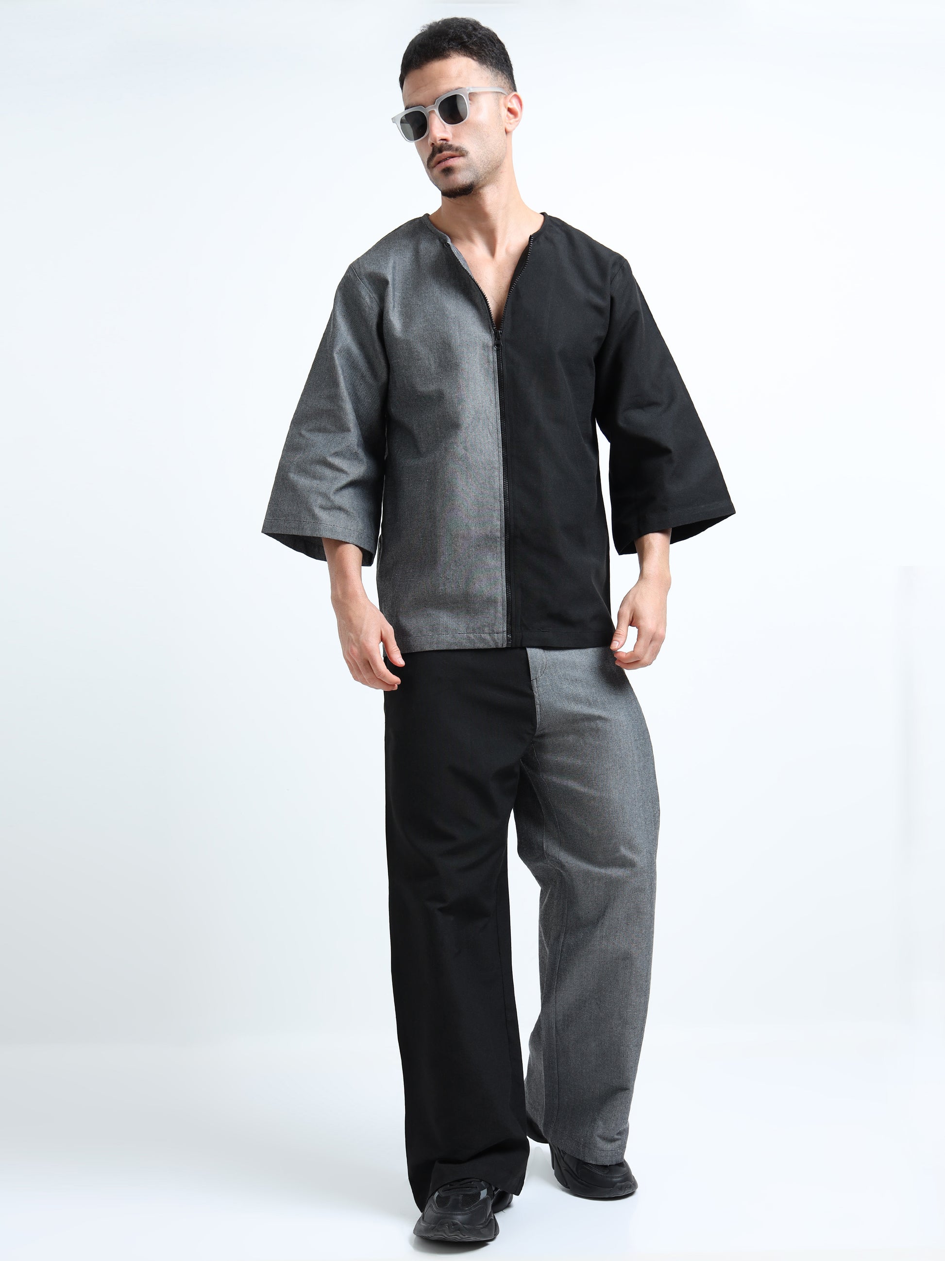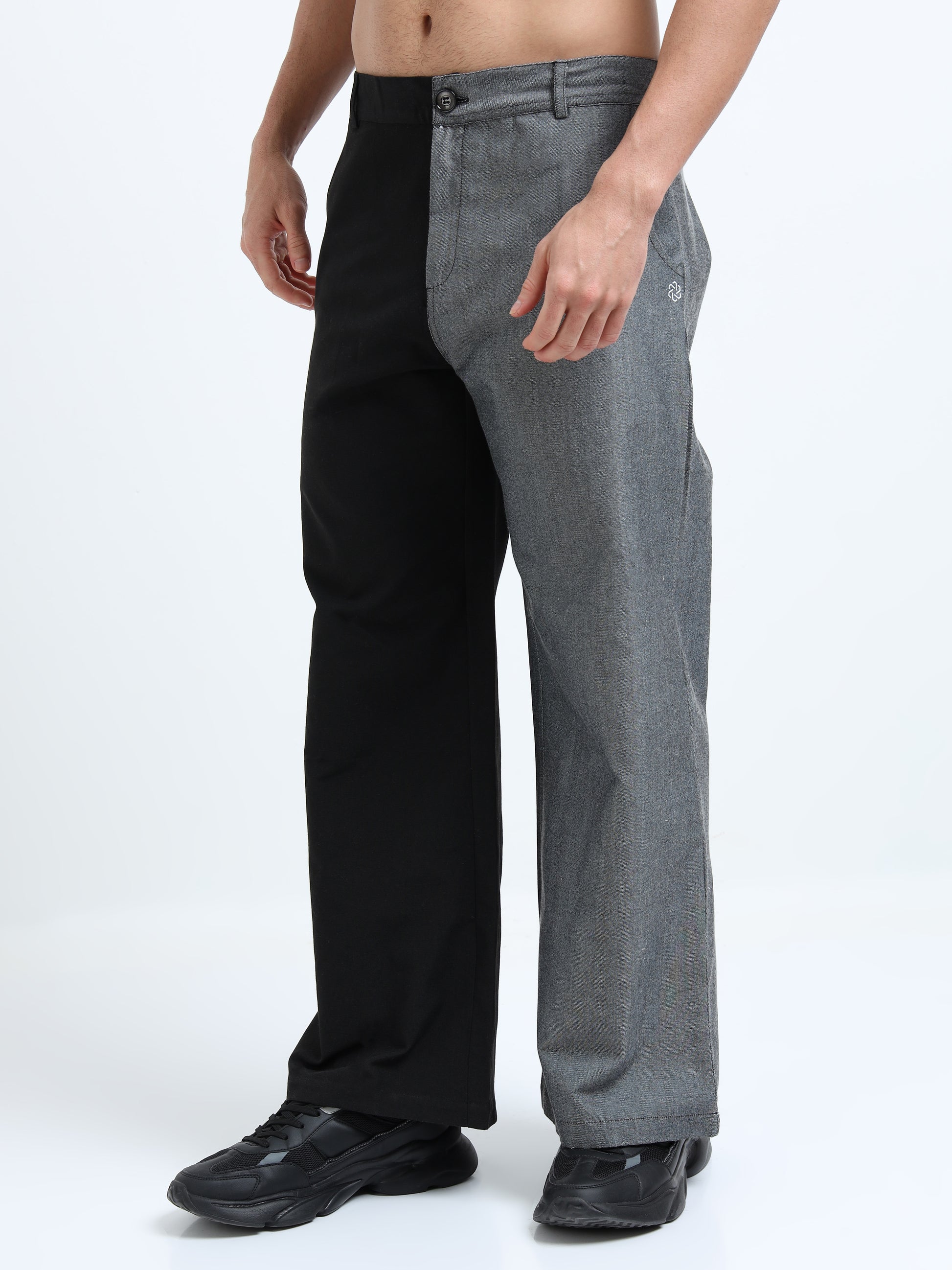 These dual straight pants make an impact. The contrast shades of fabric on each leg keep the silhouette simple yet elevated with colour blocking. This wide straight cut trousers design flows with ease and movement, offering comfort while flattering different body types from the thighs to the ankles. Perfect to pair with minimal tops for versatile looks, and a touch of oversized layering won’t hurt for various occasions.