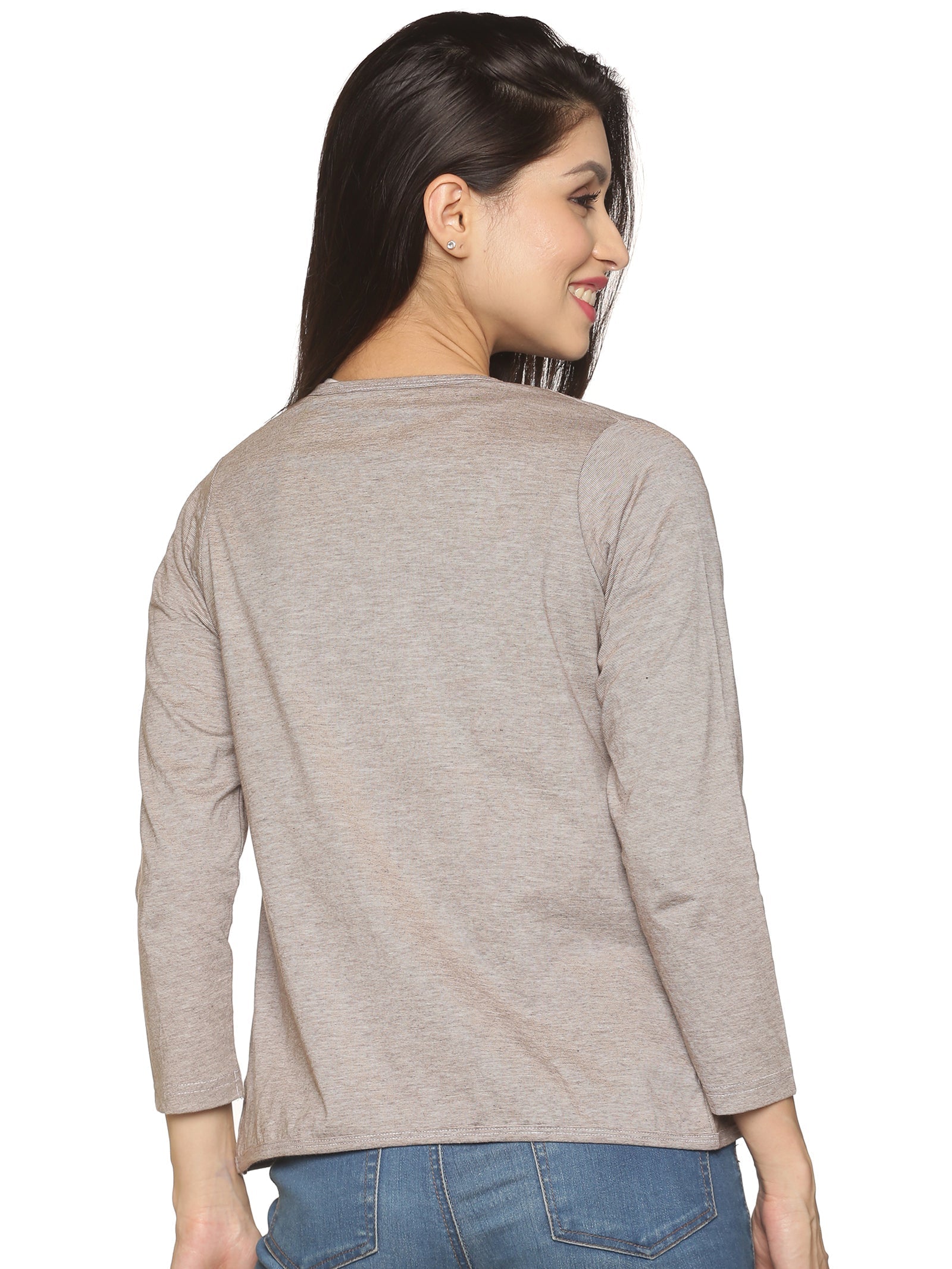Nut Brown - 3\4th Sleeve, Organic Cotton & Rich RPET in Pin Stripes Single Jersy, Comfort Fit