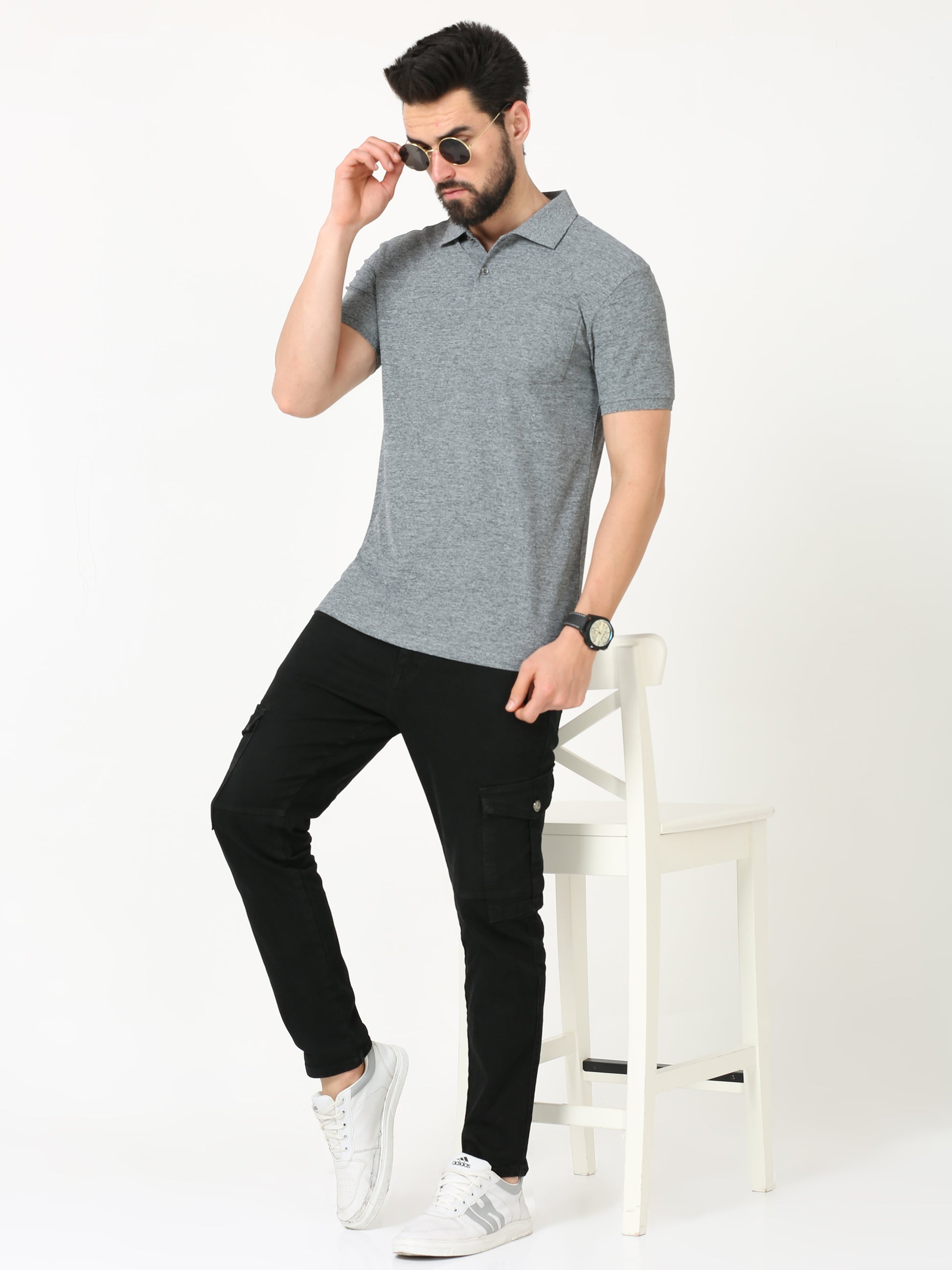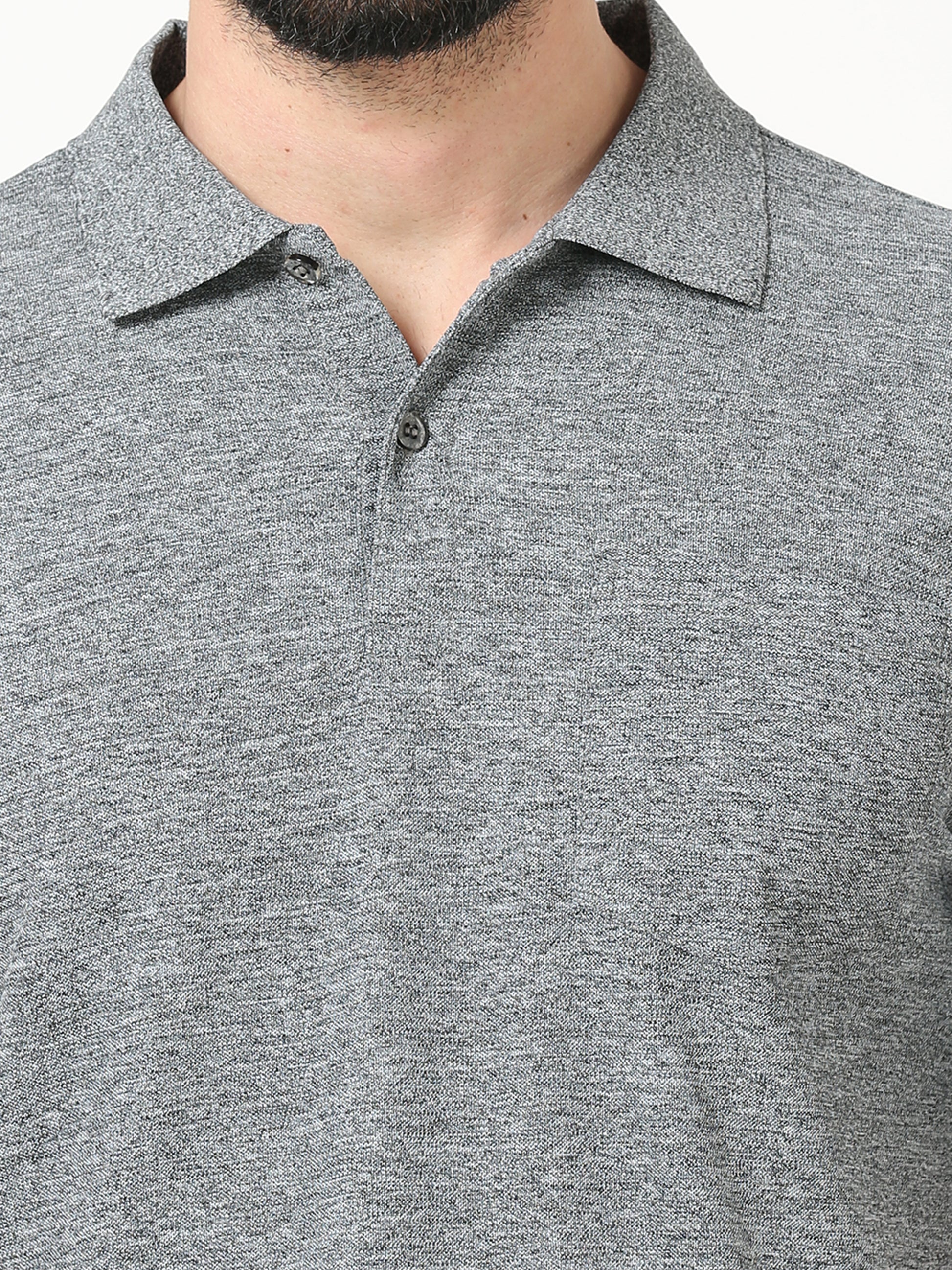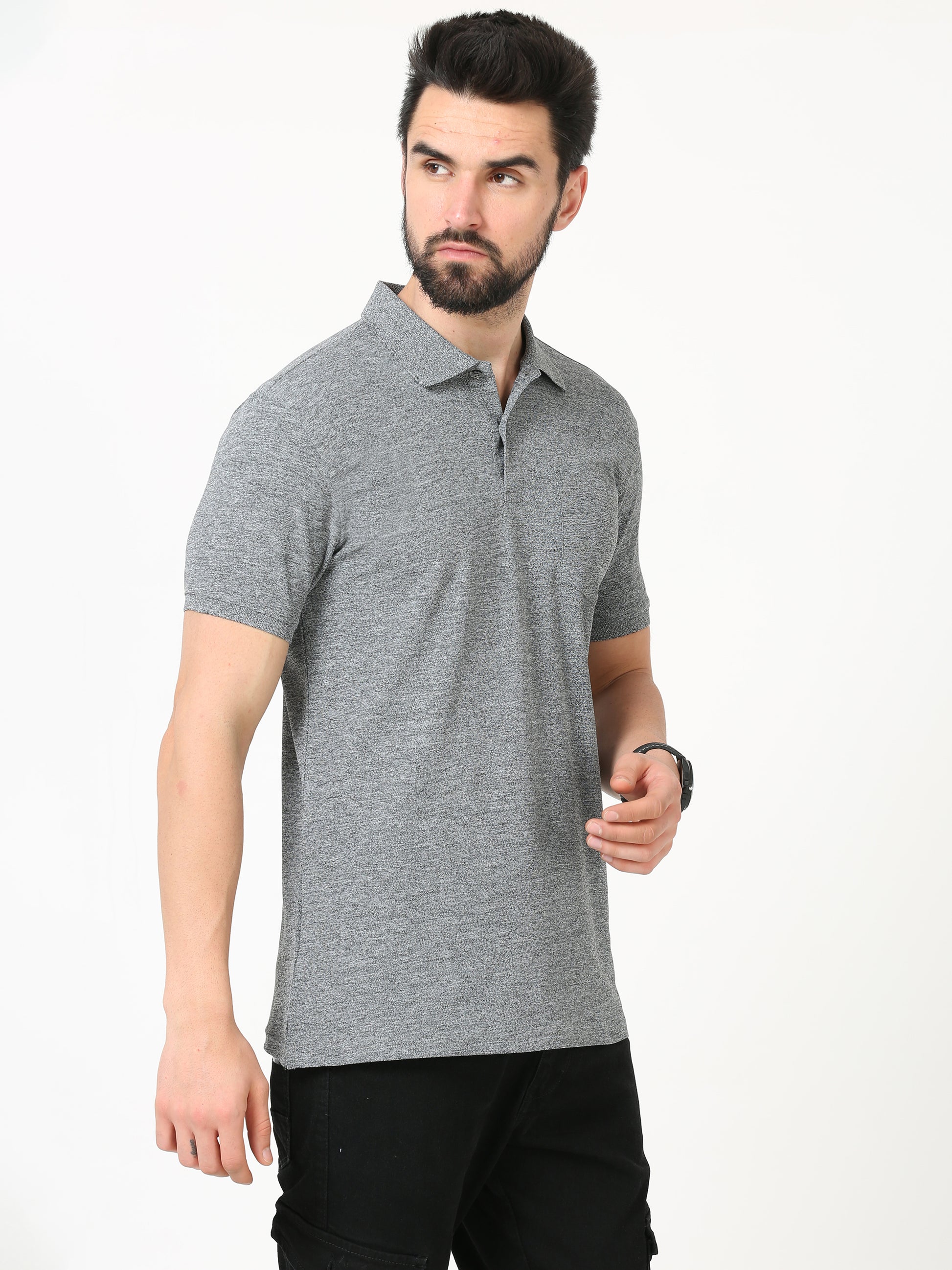Plain Polo T-Shirt for Men - Black Melange