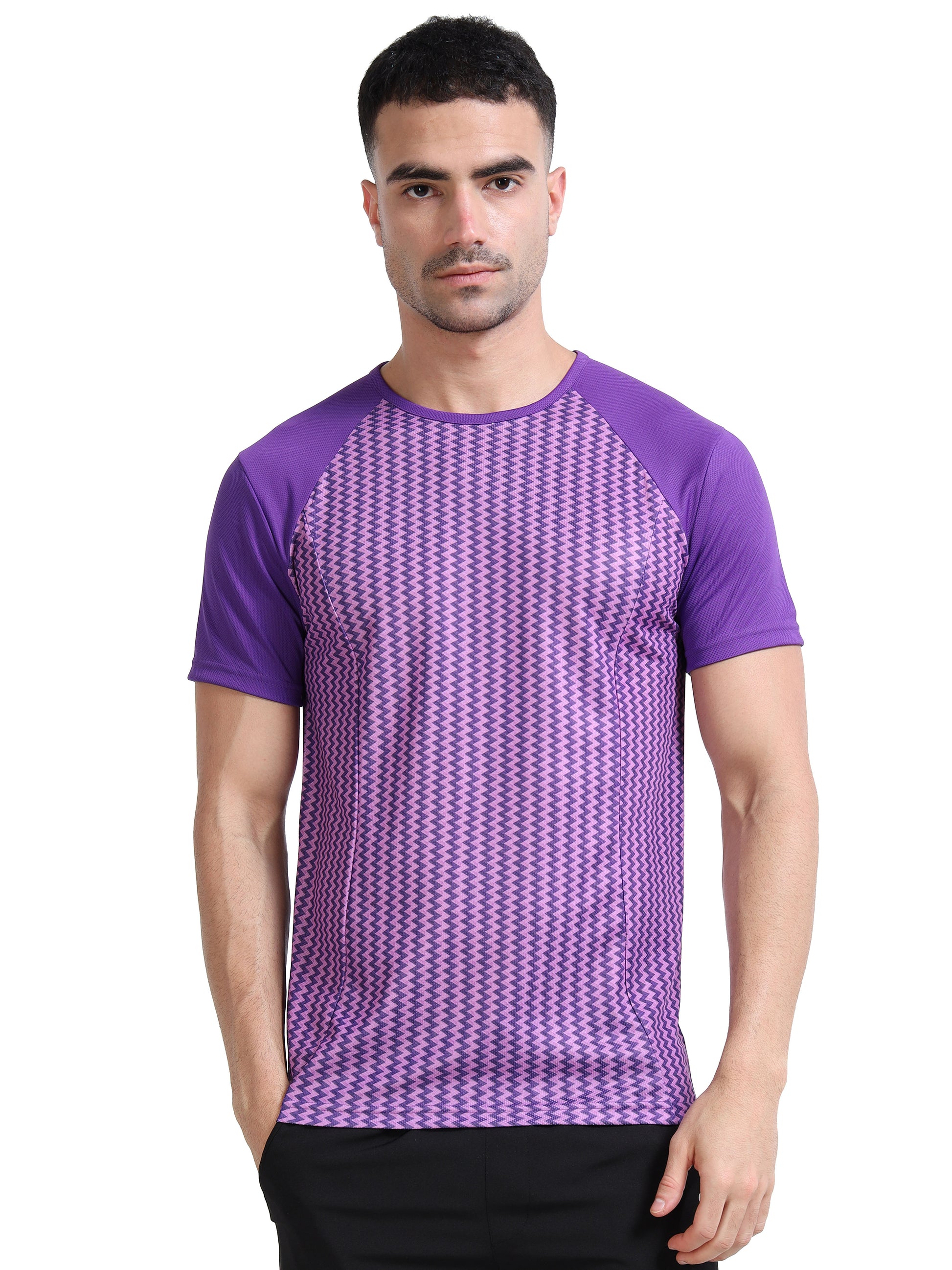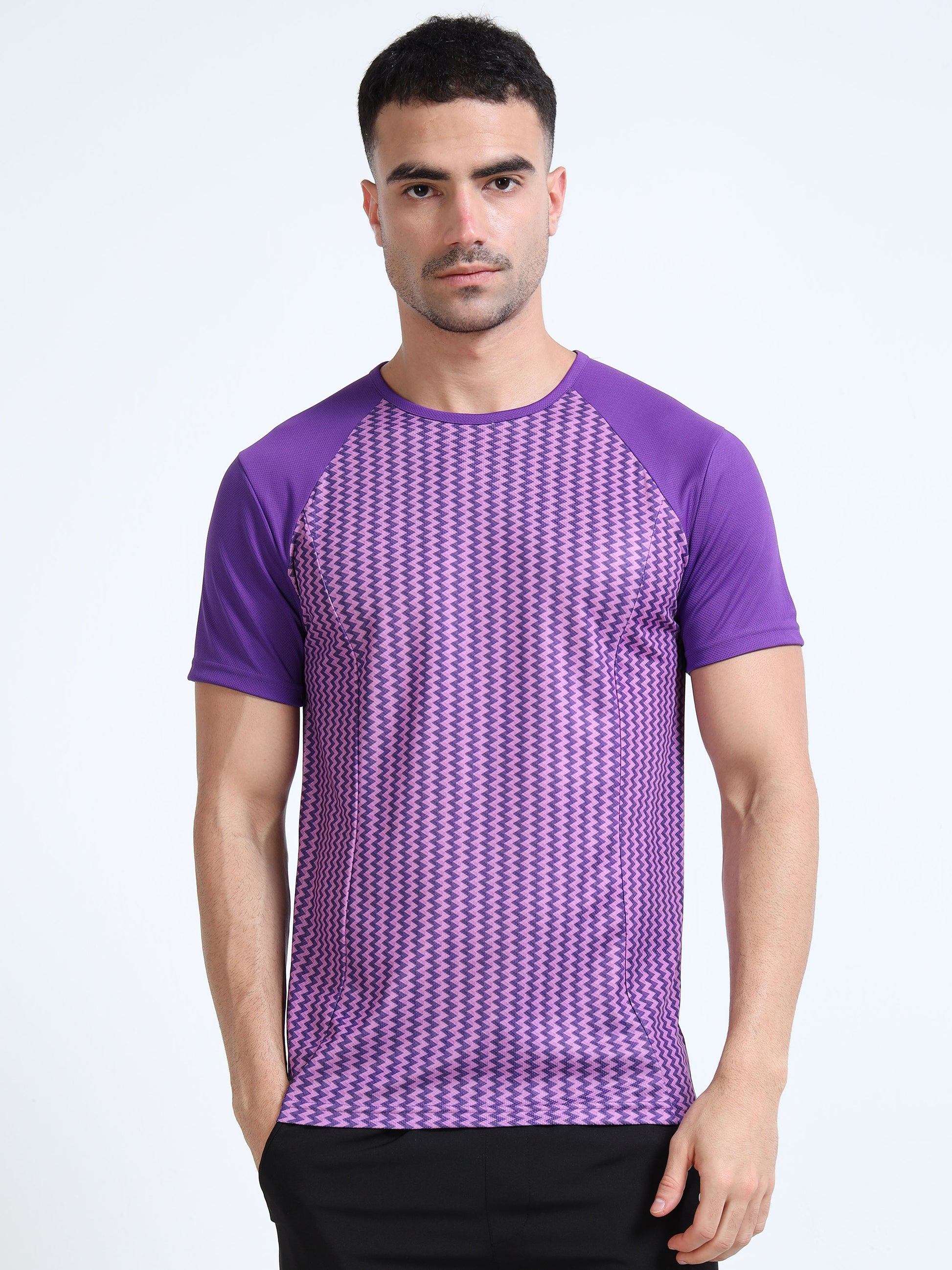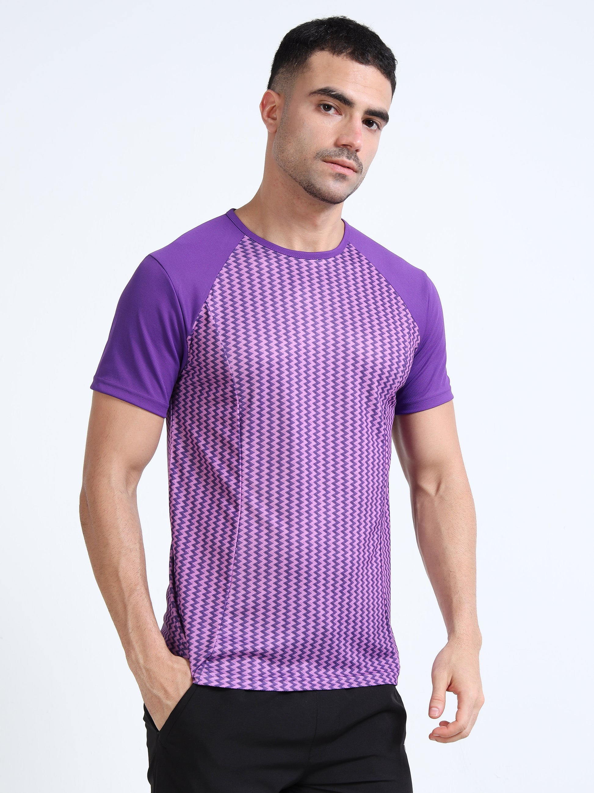 Printed Mens Active T-Shirt - Purple Zig Zag Pattern | Mens Active Wear