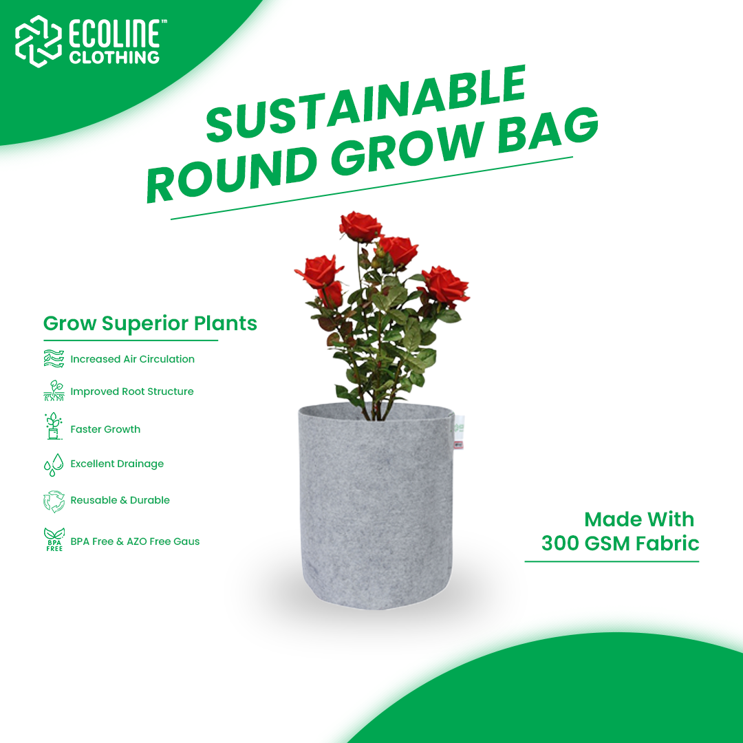 Upgrade your gardening with our eco-friendly Sustainable Round Grow Bag, designed for durability and plant health. Measuring 9 inches in diameter and 12 inches in height, this compact yet spacious grow bag is made from premium 400 GSM non-woven fabric, offering optimal aeration and excellent drainage. whether you're a beginner or a seasoned gardener, this 9x12 inch grow bag is a perfect choice for growing plants in limited spaces while keeping sustainability in mind.