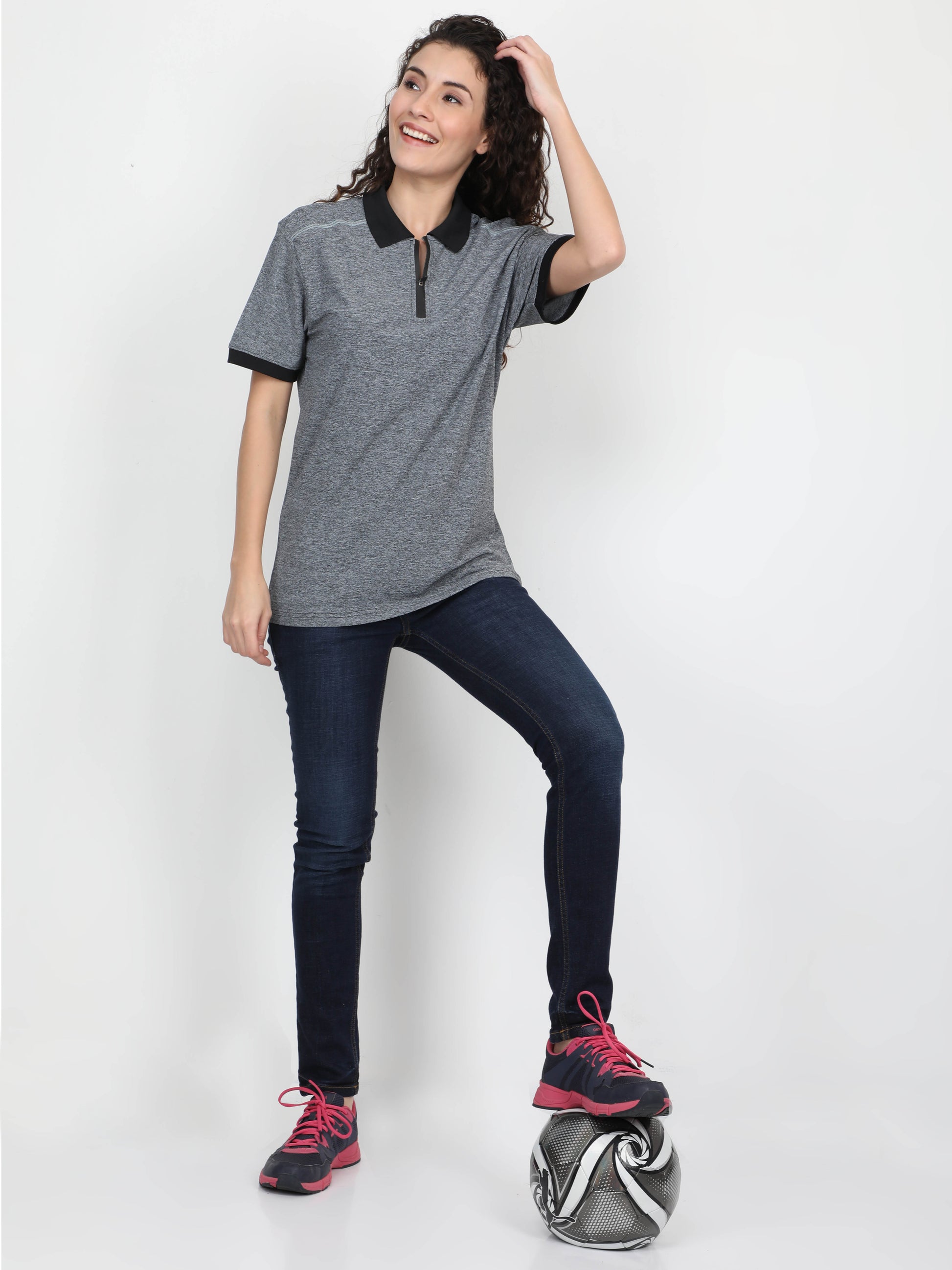 Women's rPET Sporty Polo TShirt - Dark Grey