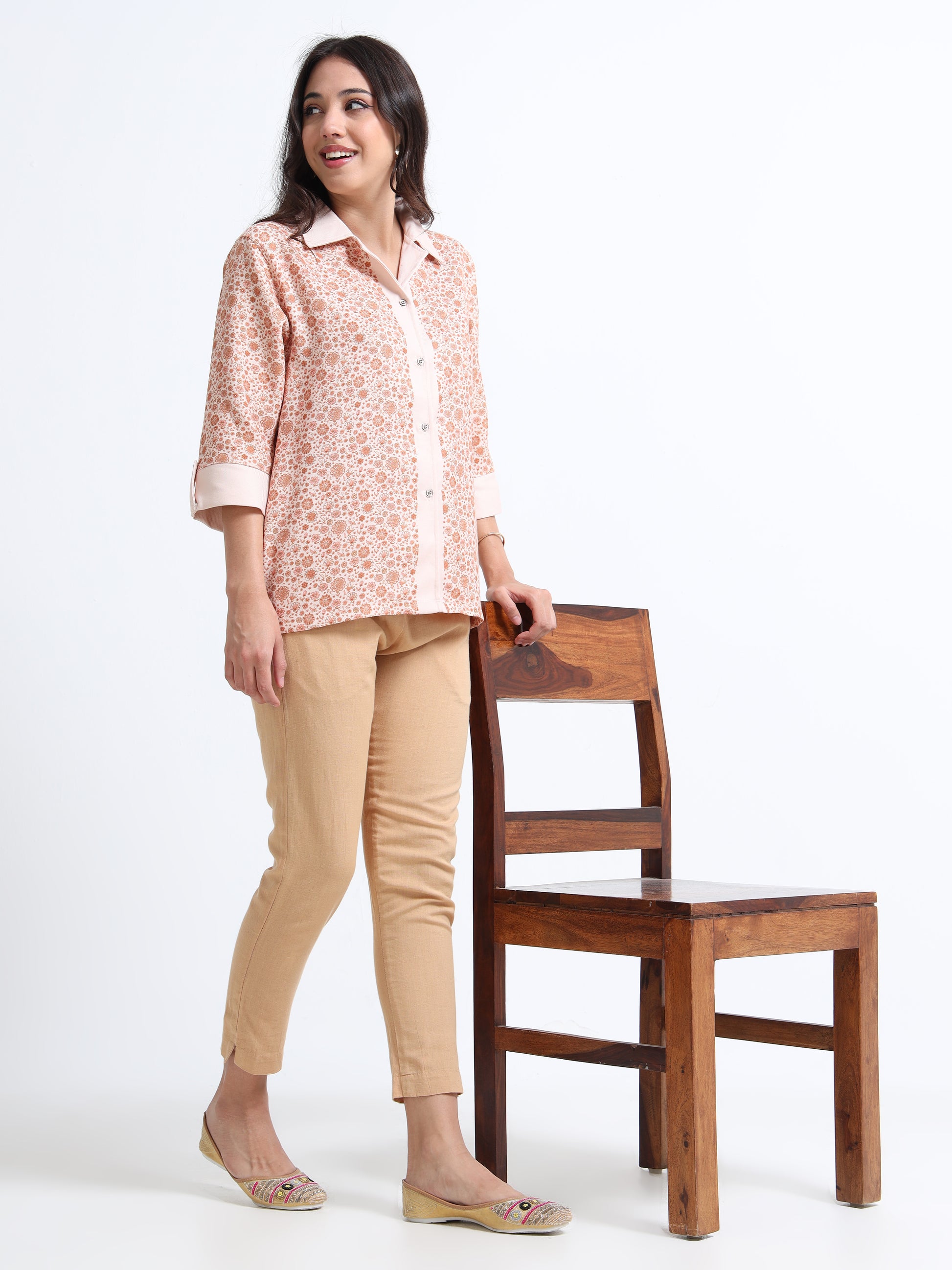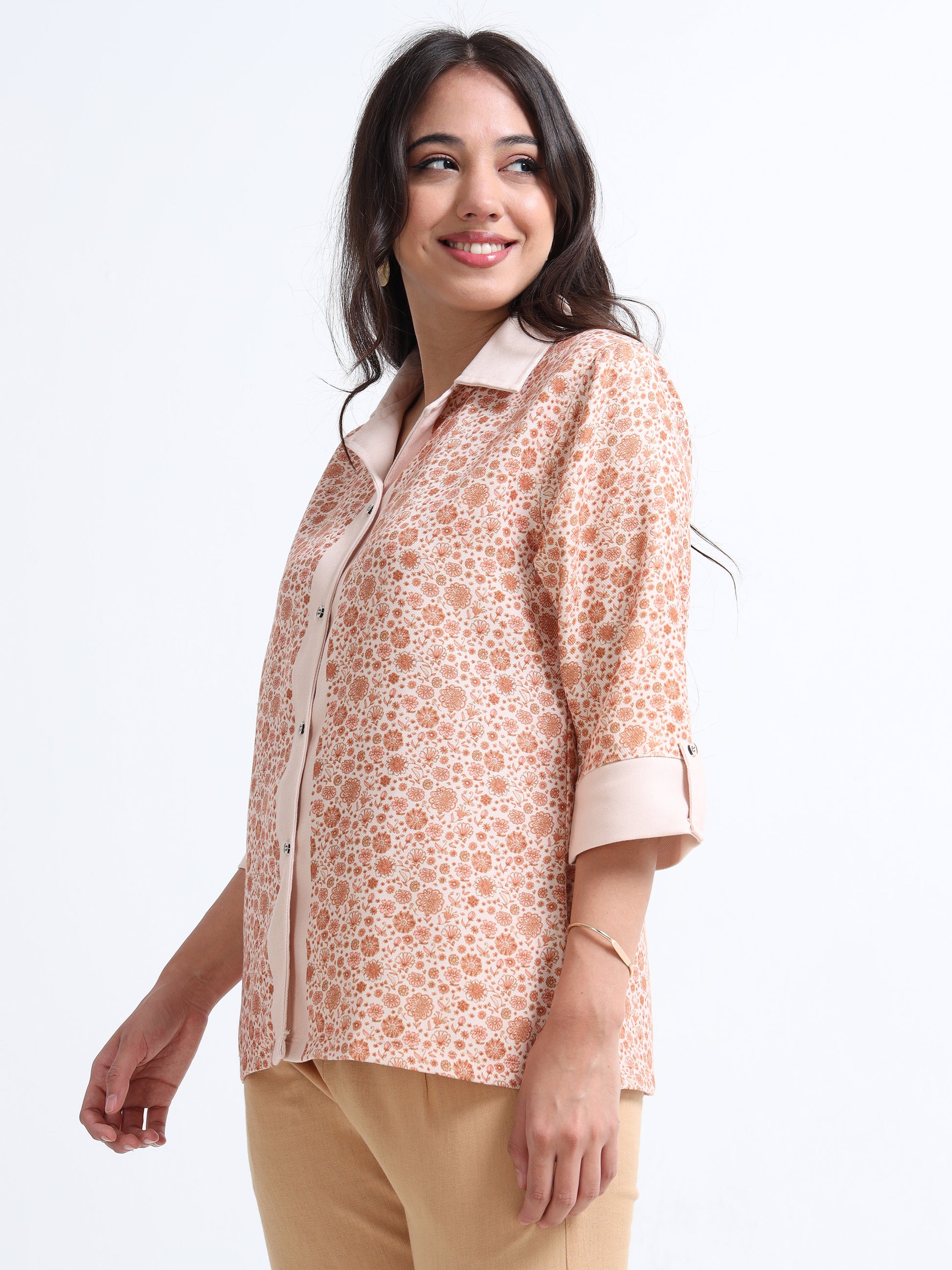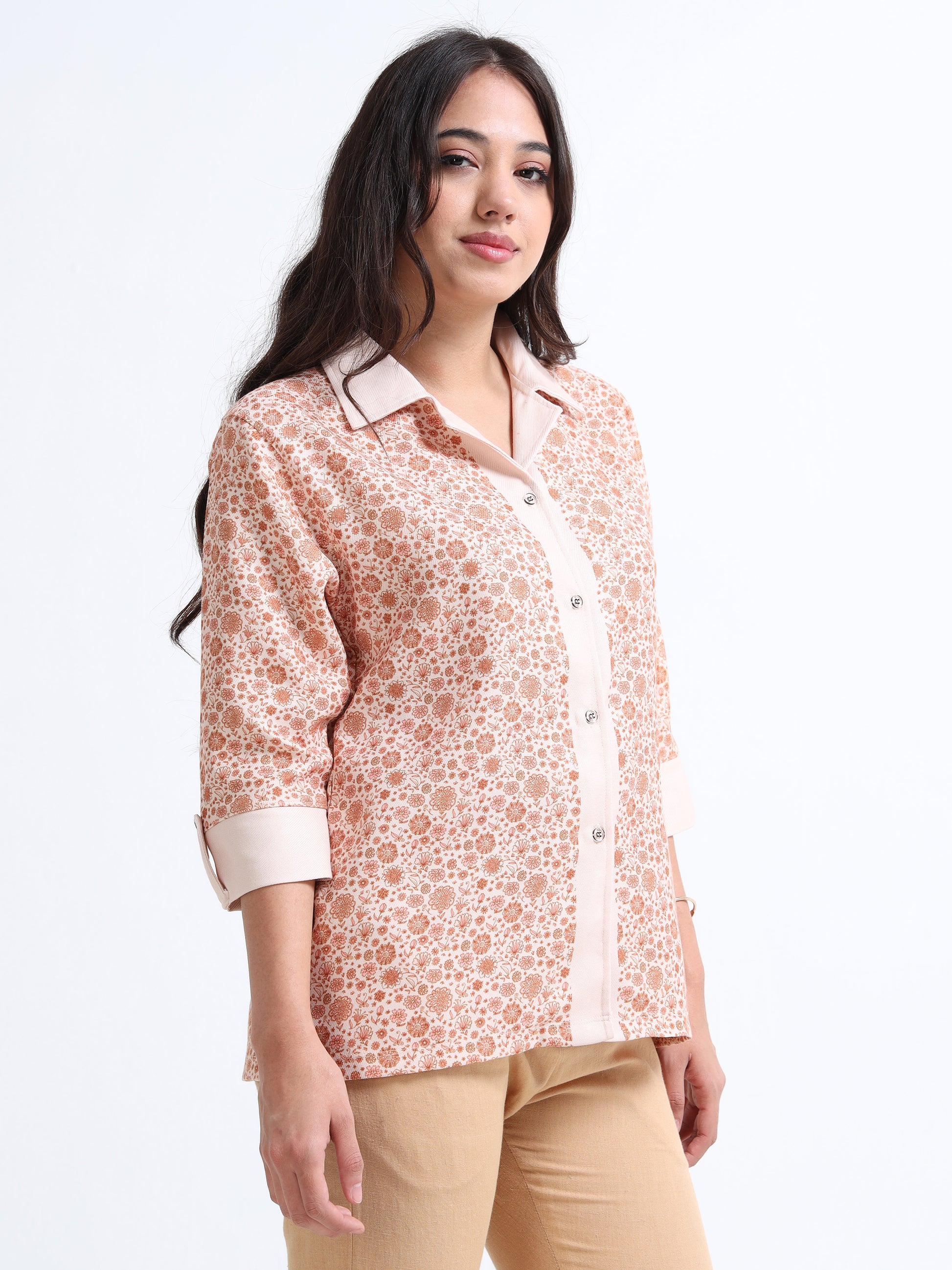 Women’s Indie Printed Woven shirt - Pastel brown Boquet
