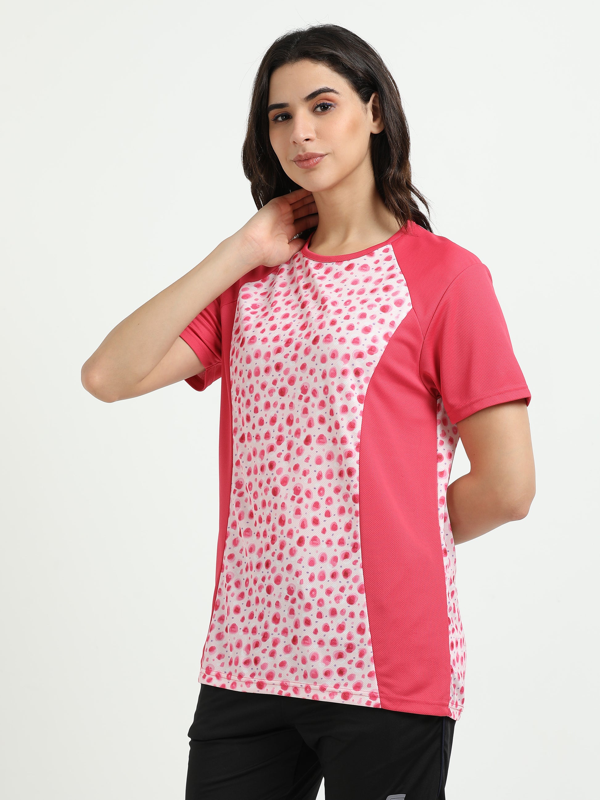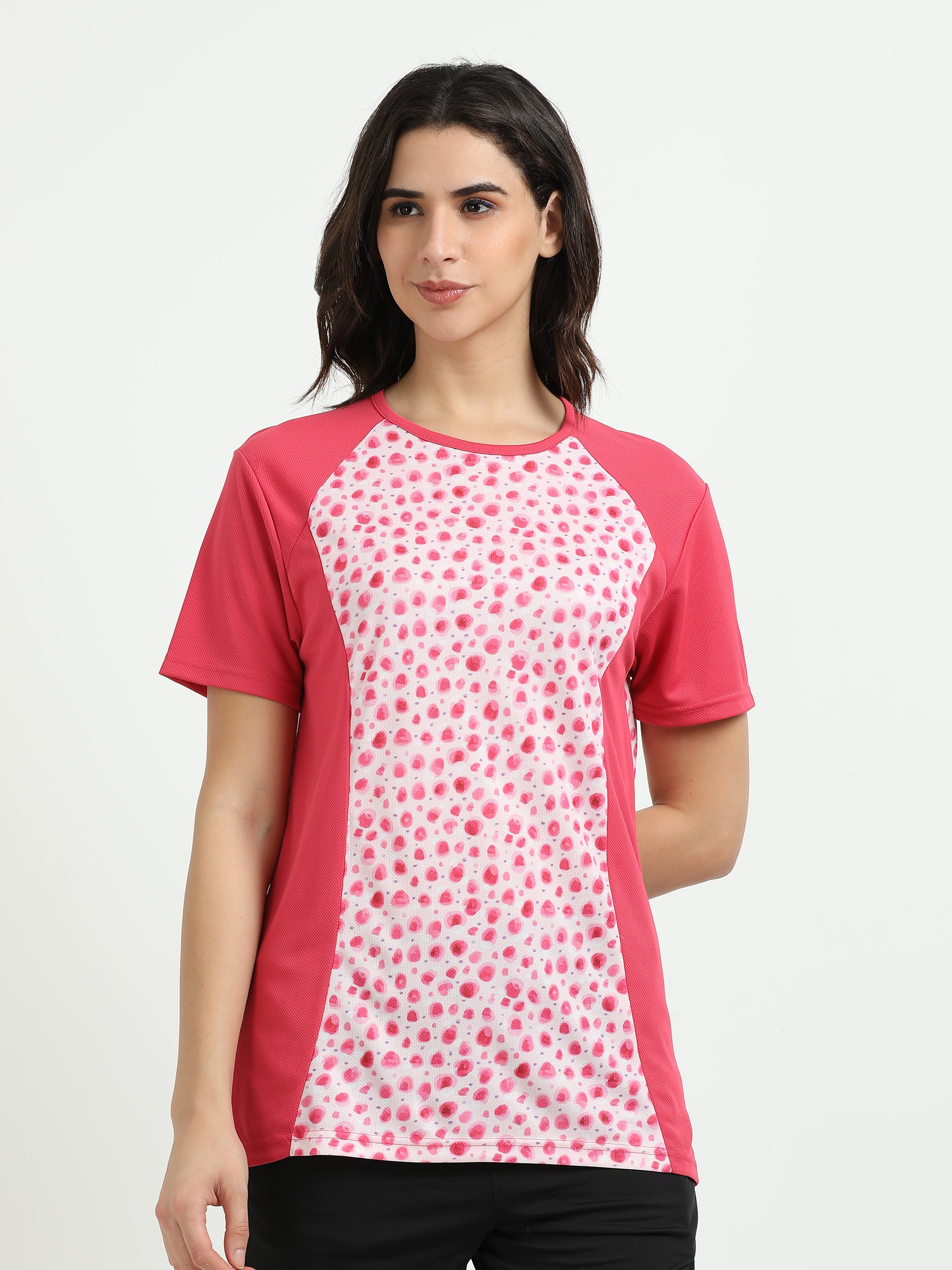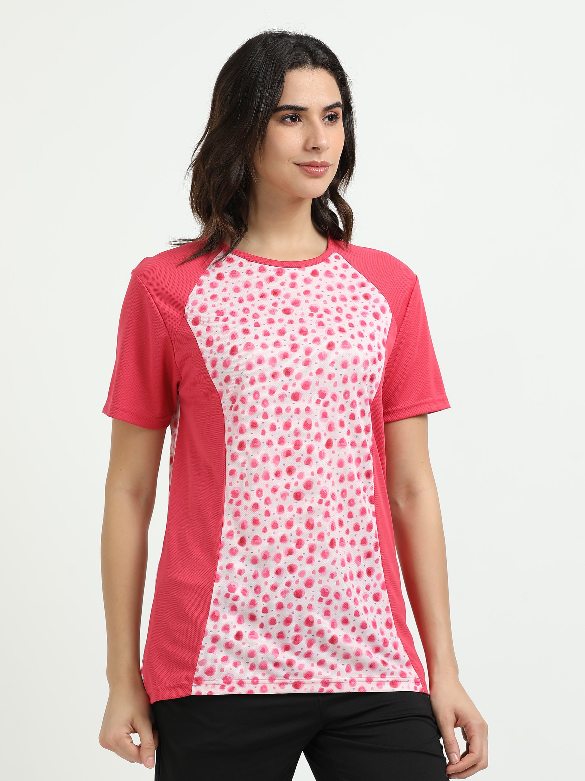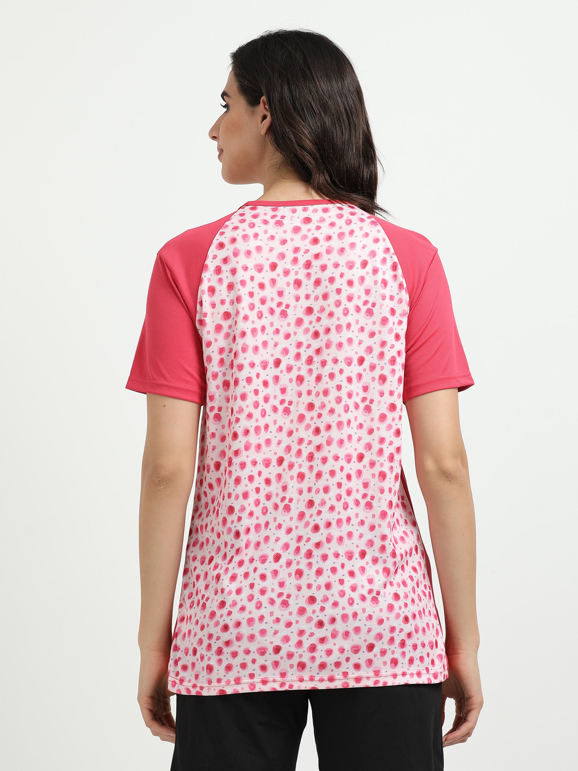 Women’s rPET Printed Performance Tee – Pink Dots
