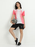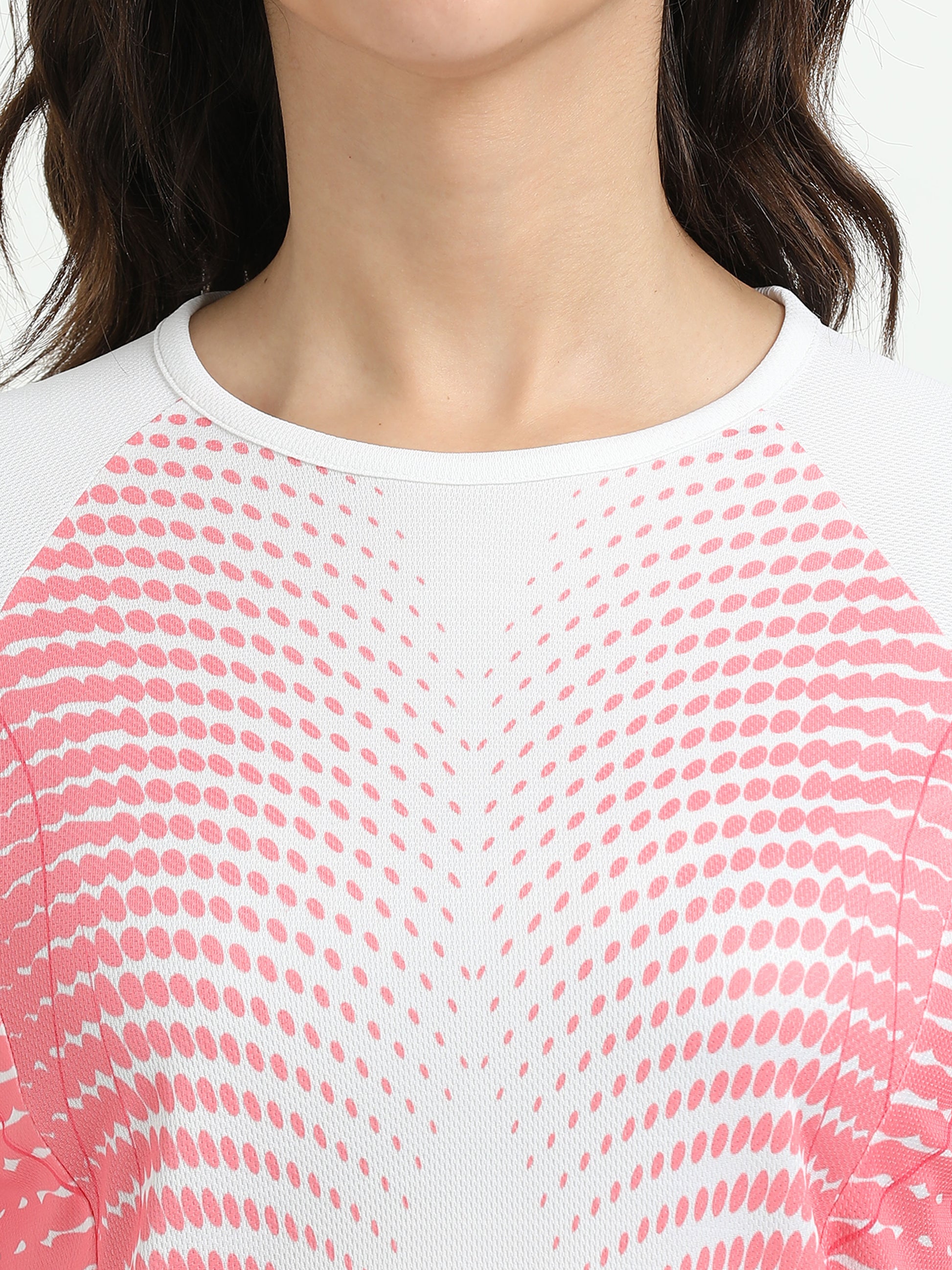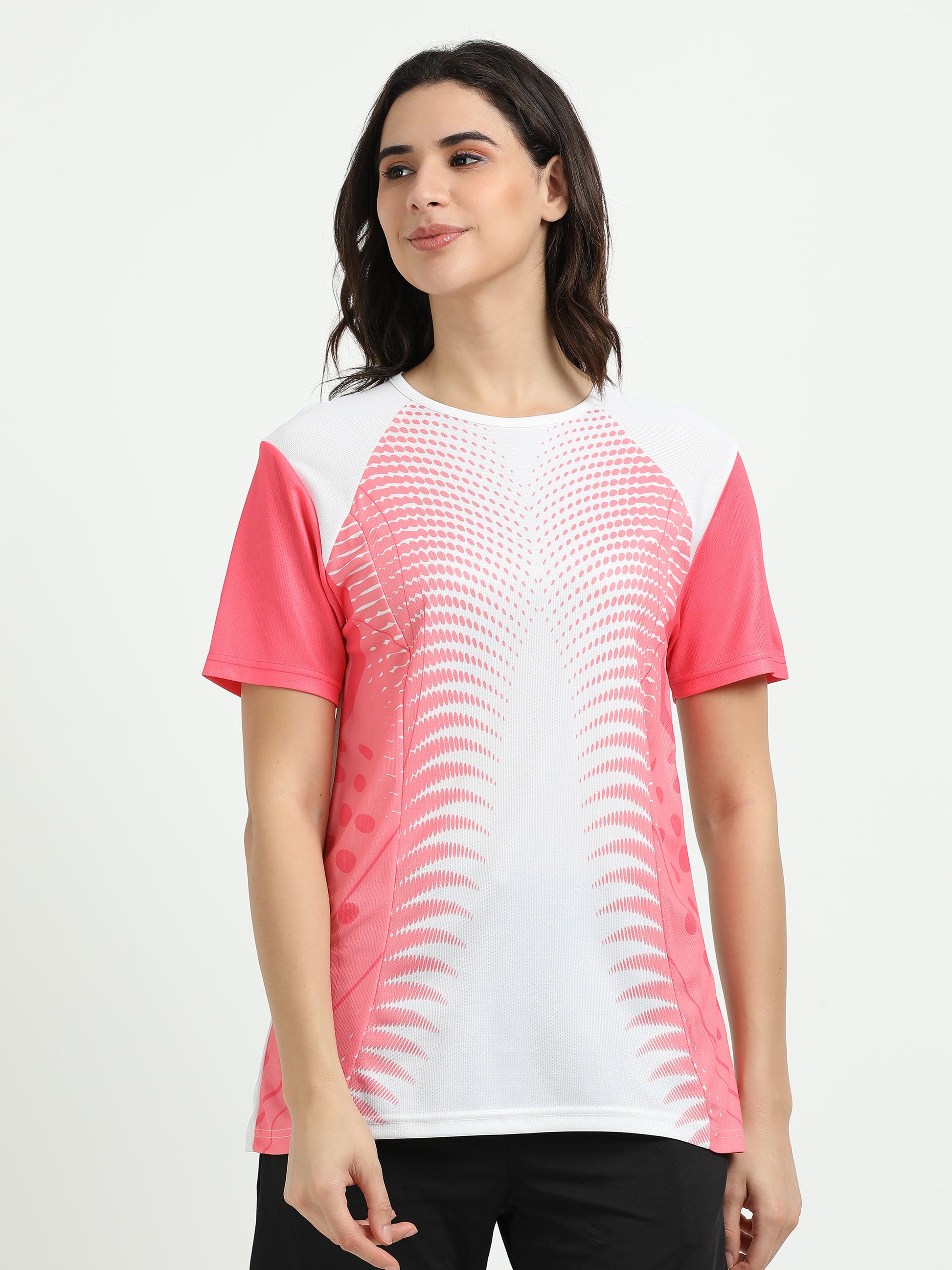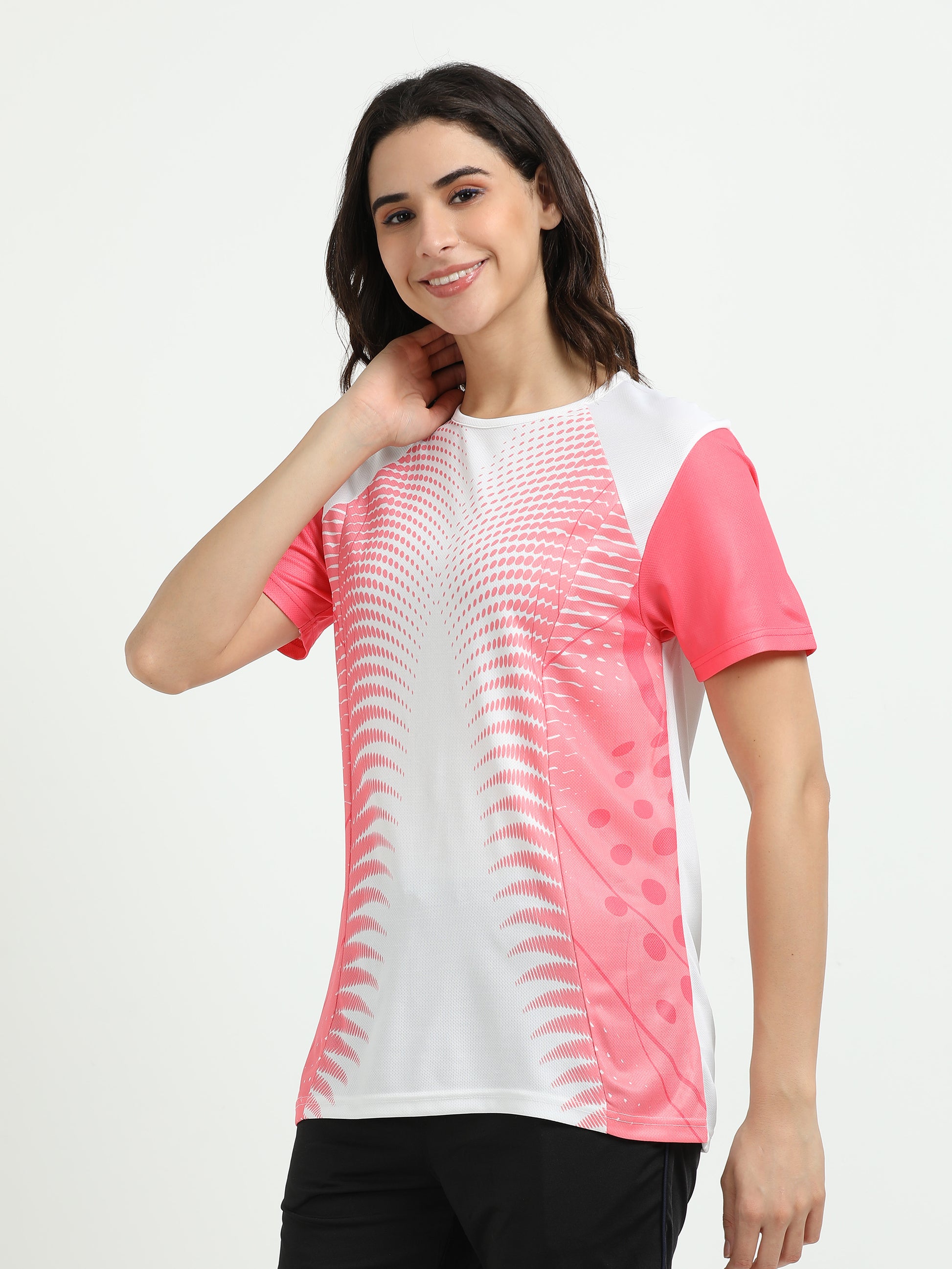 Women’s rPET Printed Performance Tee – Pink Shapes Abstract