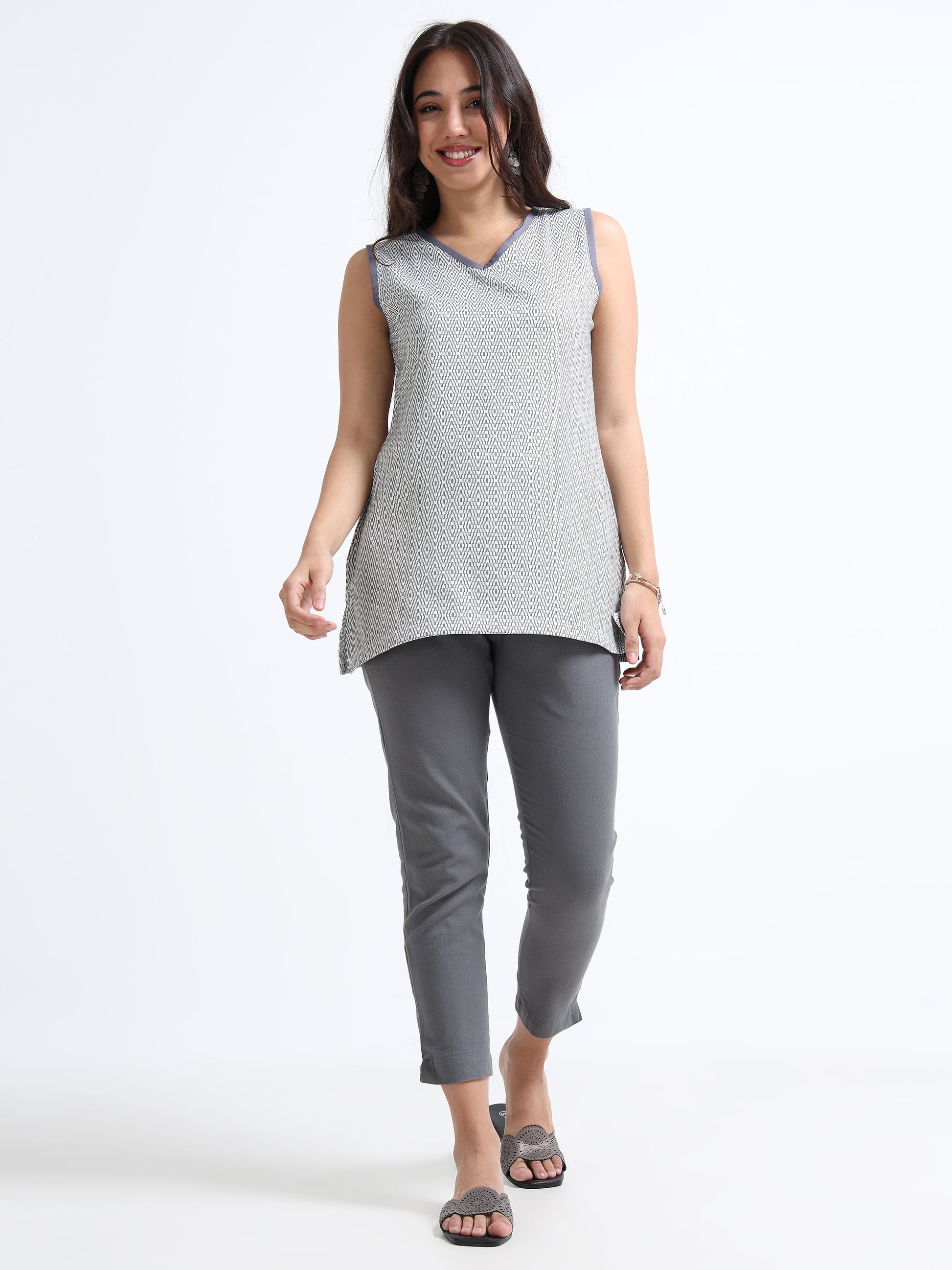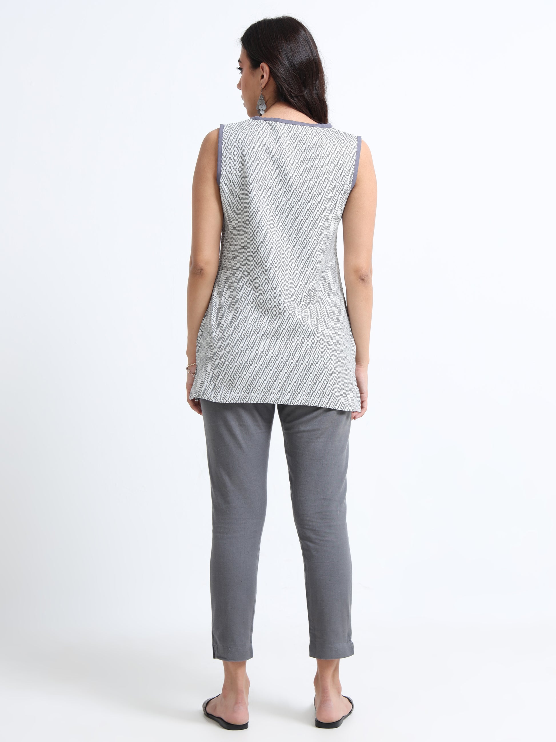 Women’s Sleeveless Short Kurta – Aztec Weave