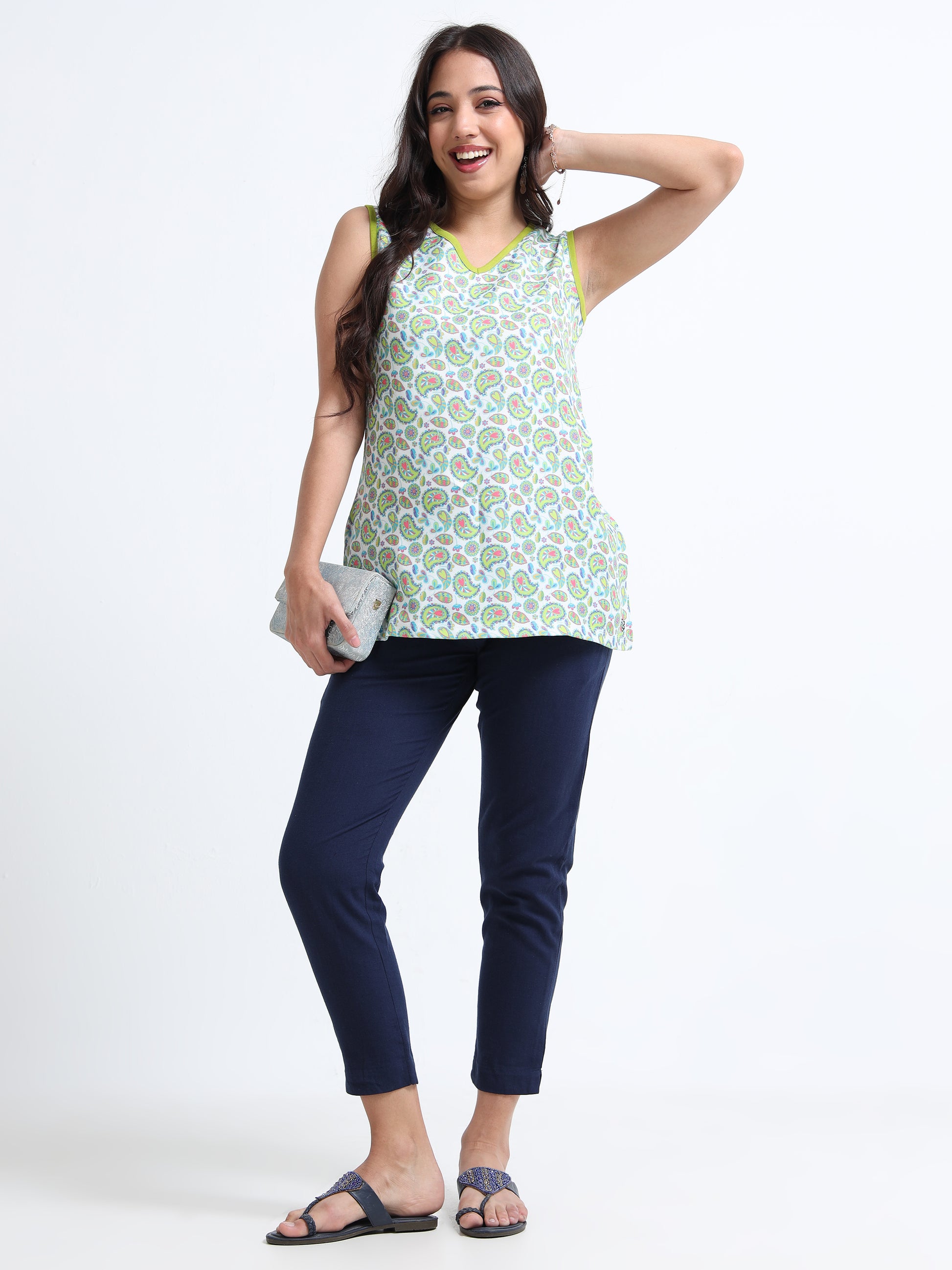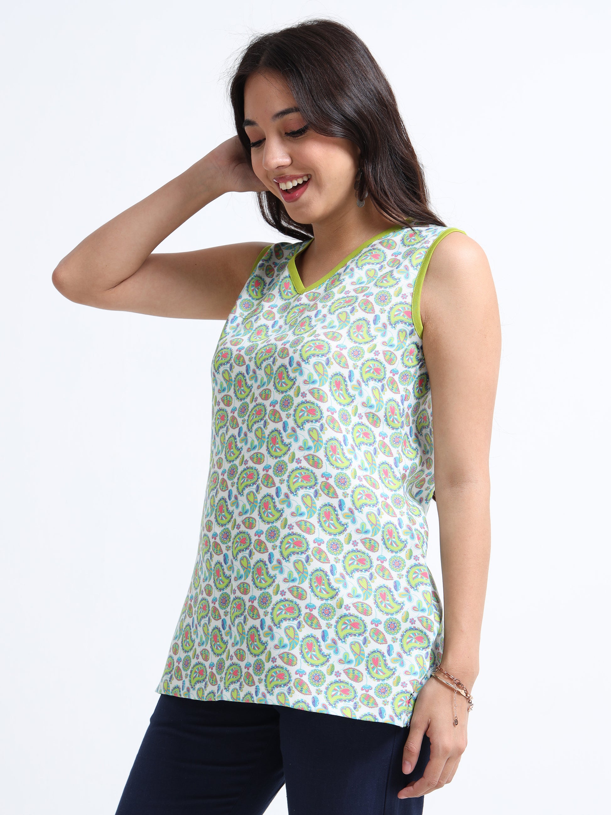 Women’s Sleeveless Short Kurta – Colourful Paisley