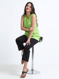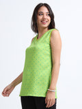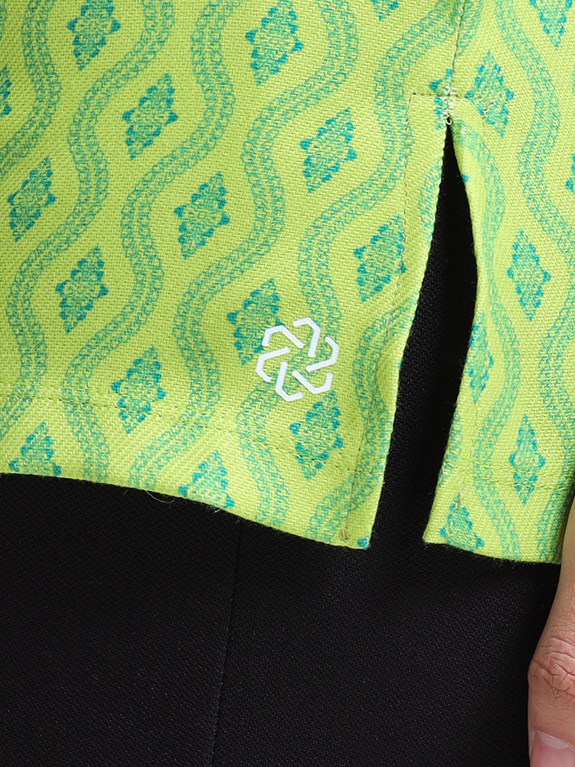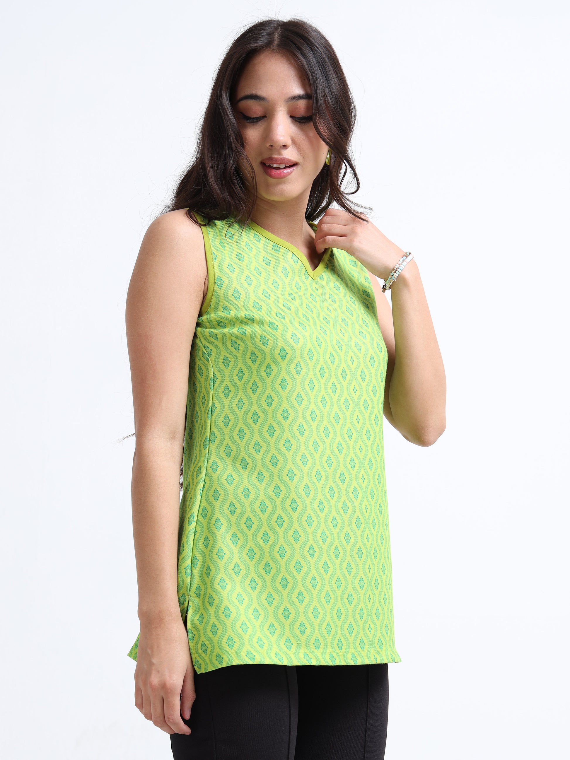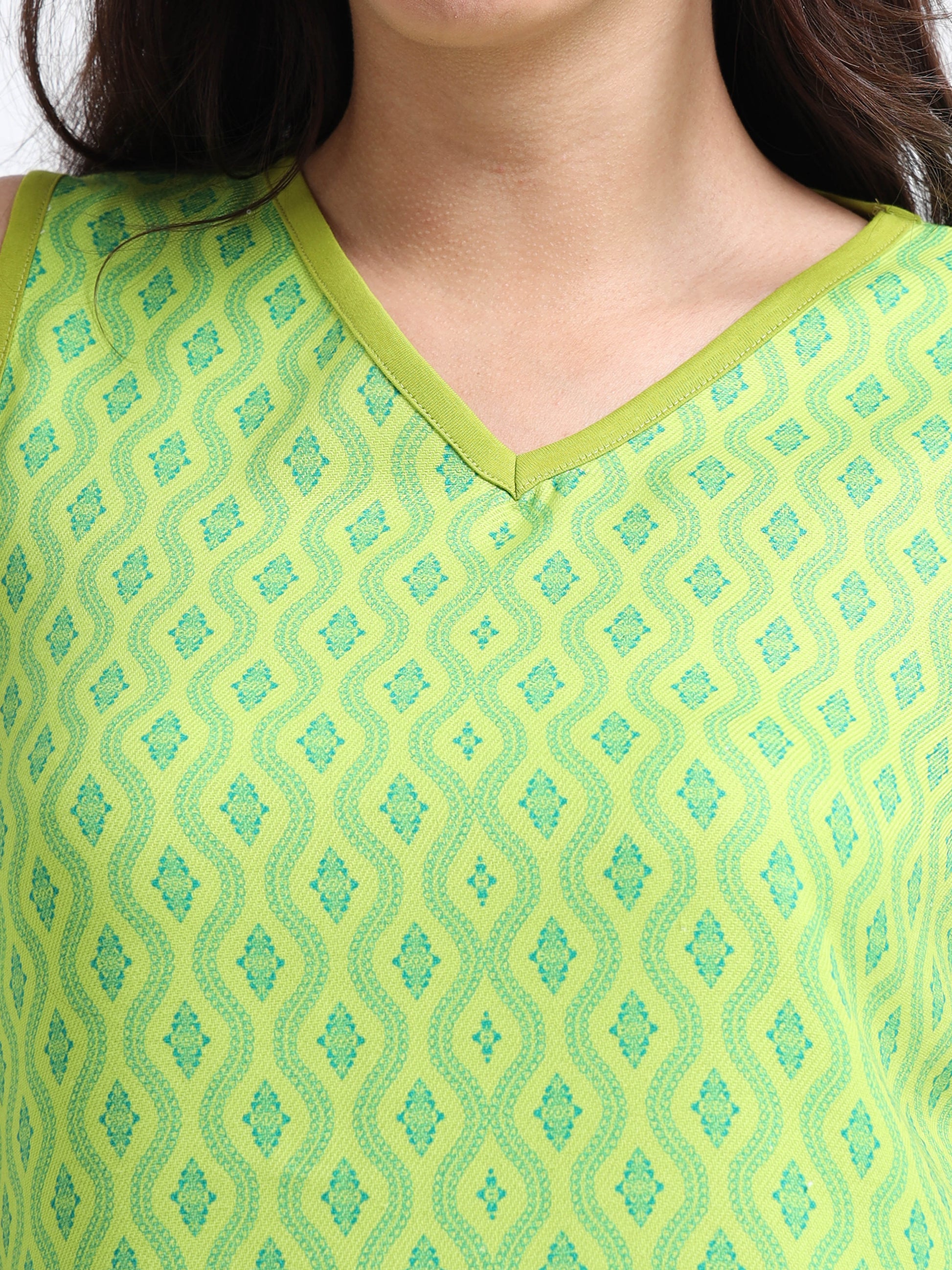 Women’s Sleeveless Short Kurta – Green Motif Lines