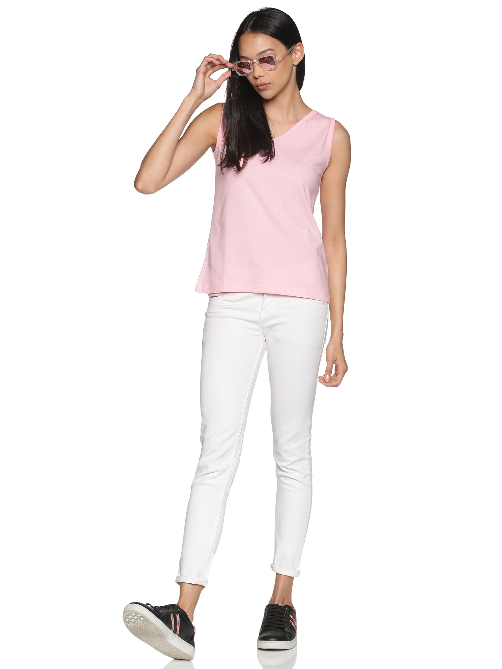 Women's Recycled Cotton Dual Neck Tank Top - Candy Pink