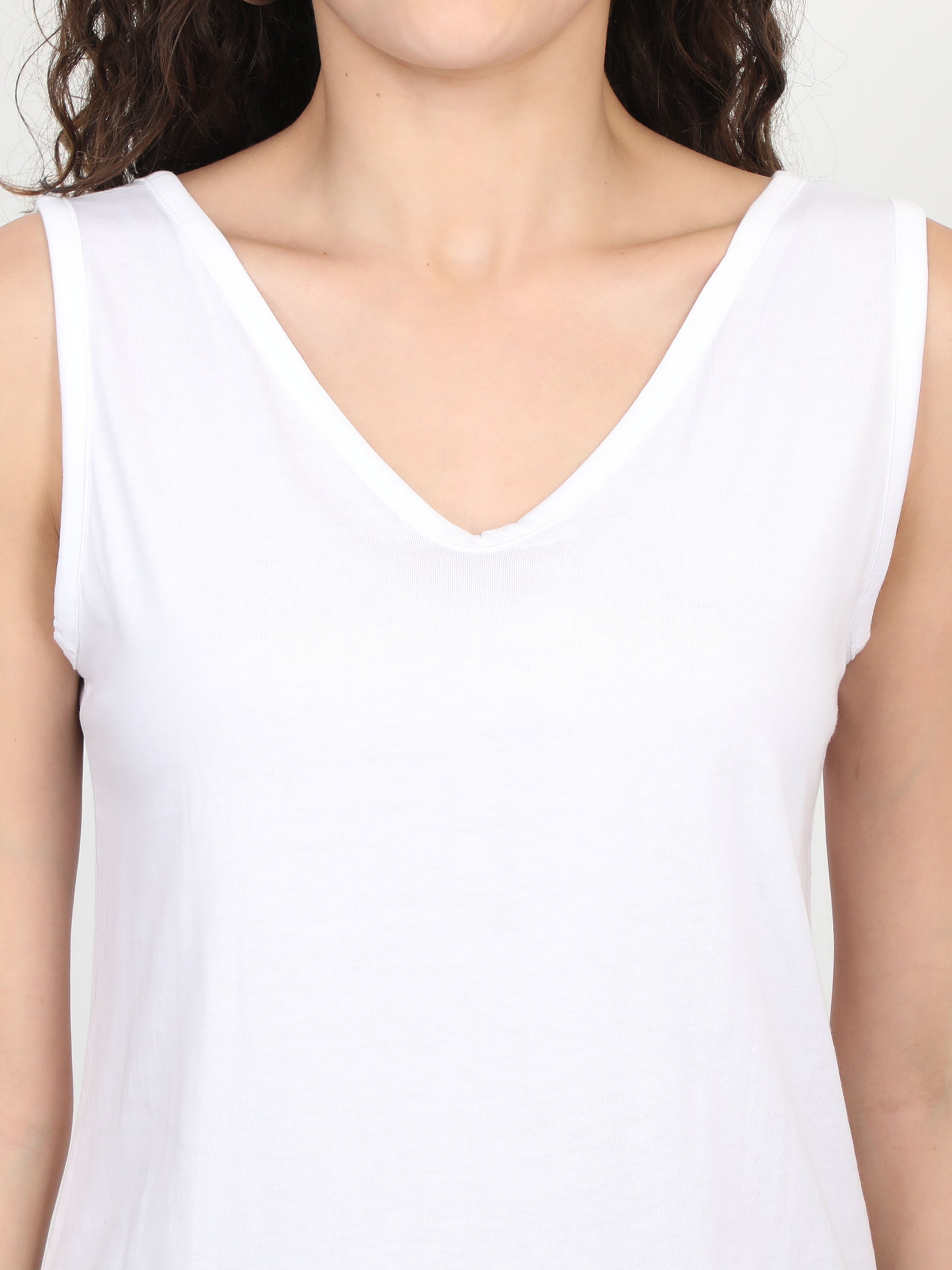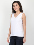 Women's Recycled Cotton Dual Neck Tank Top - White