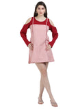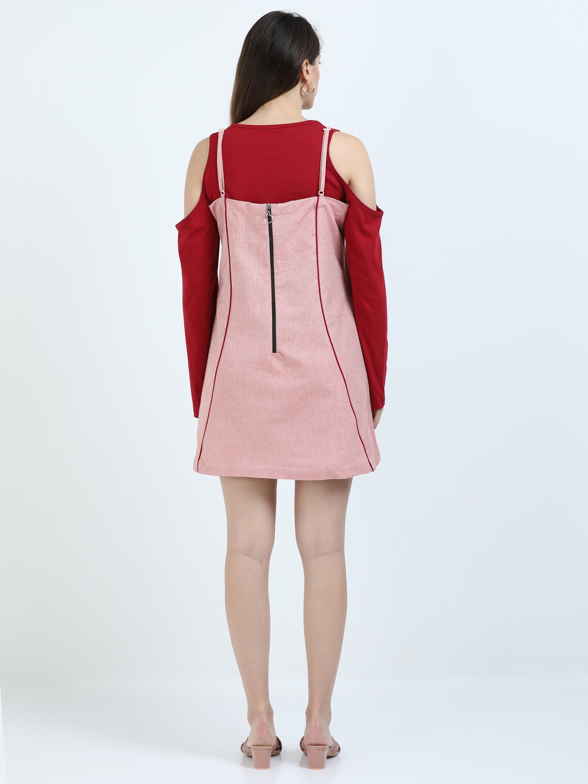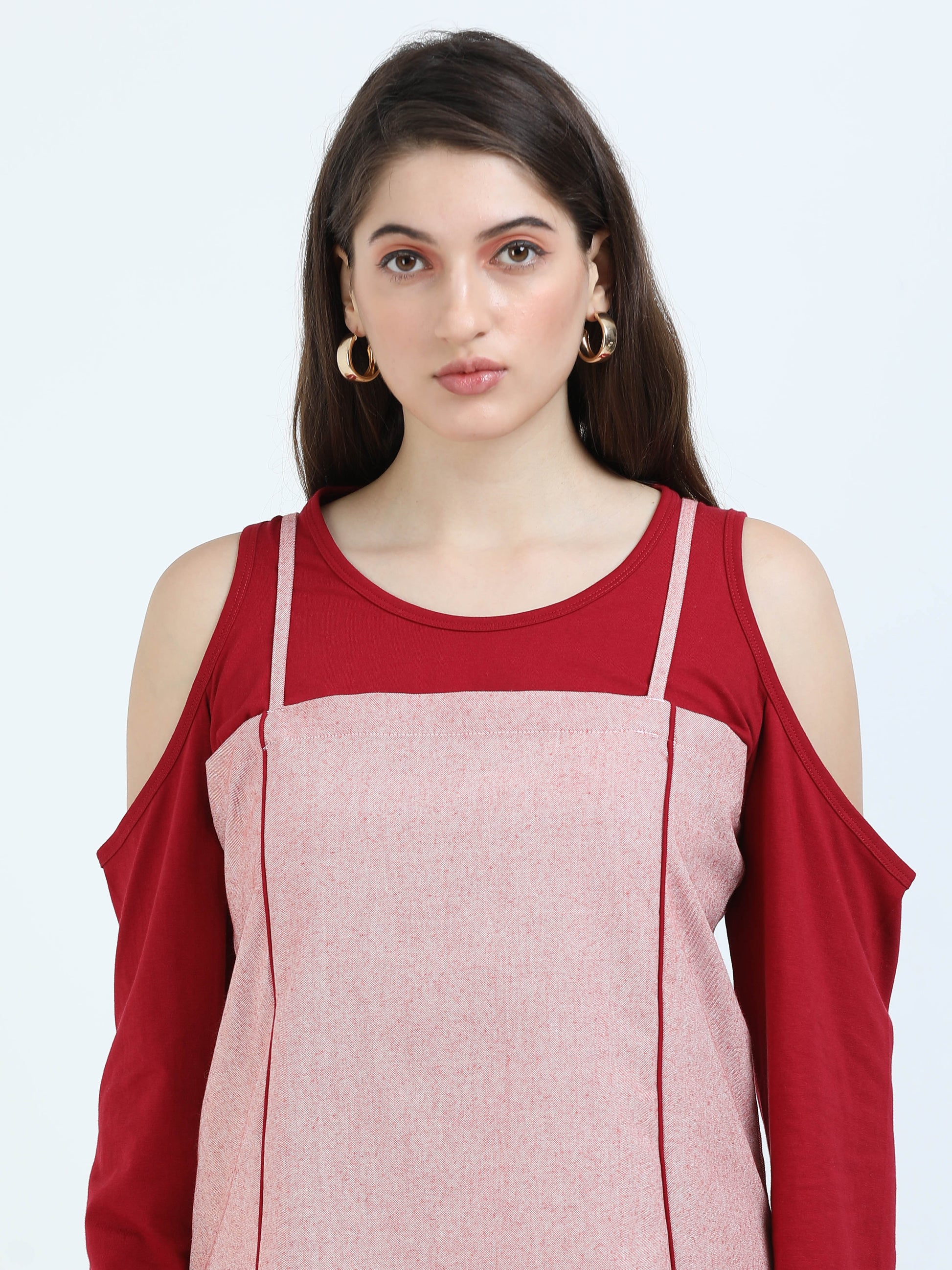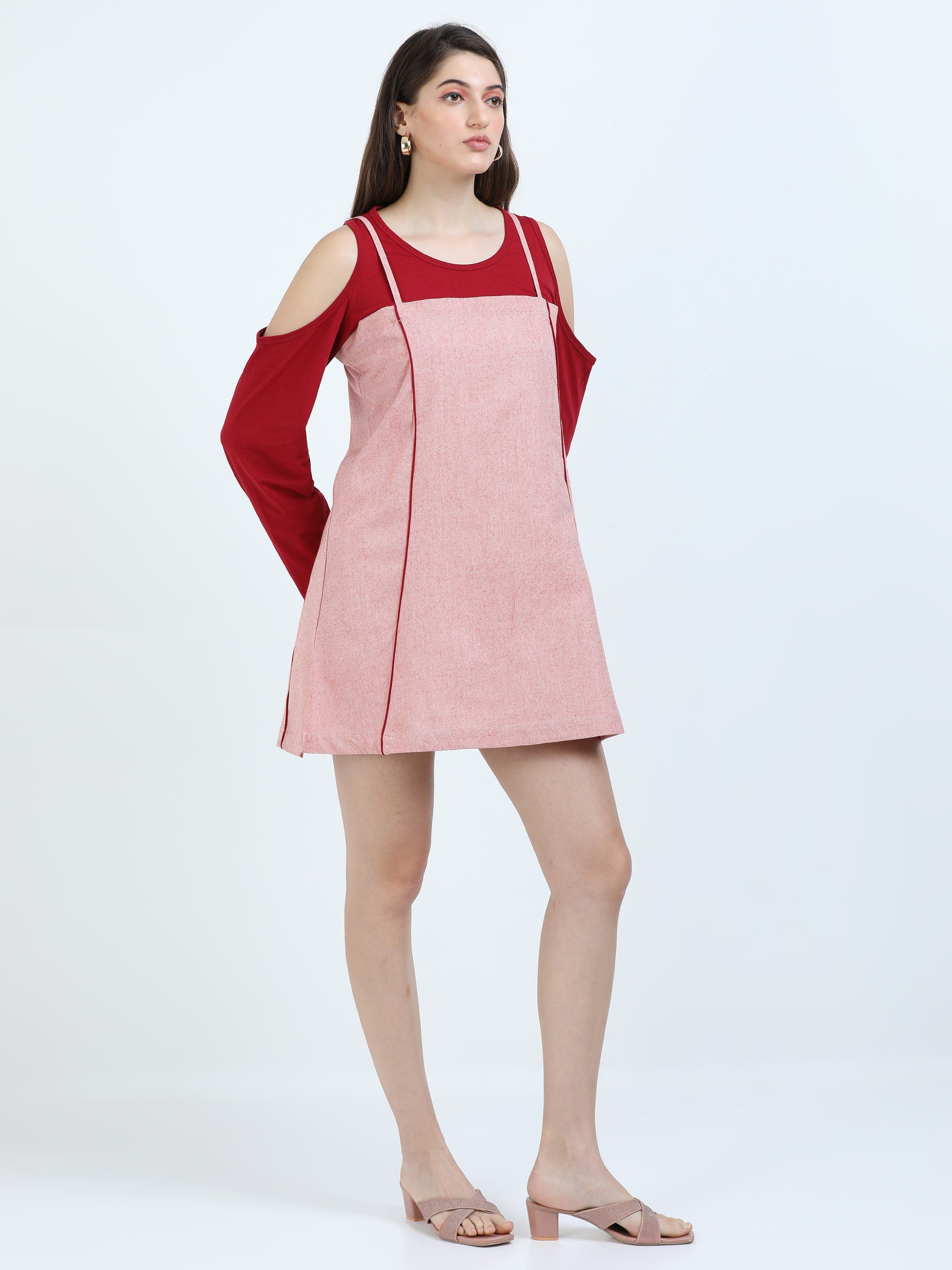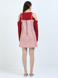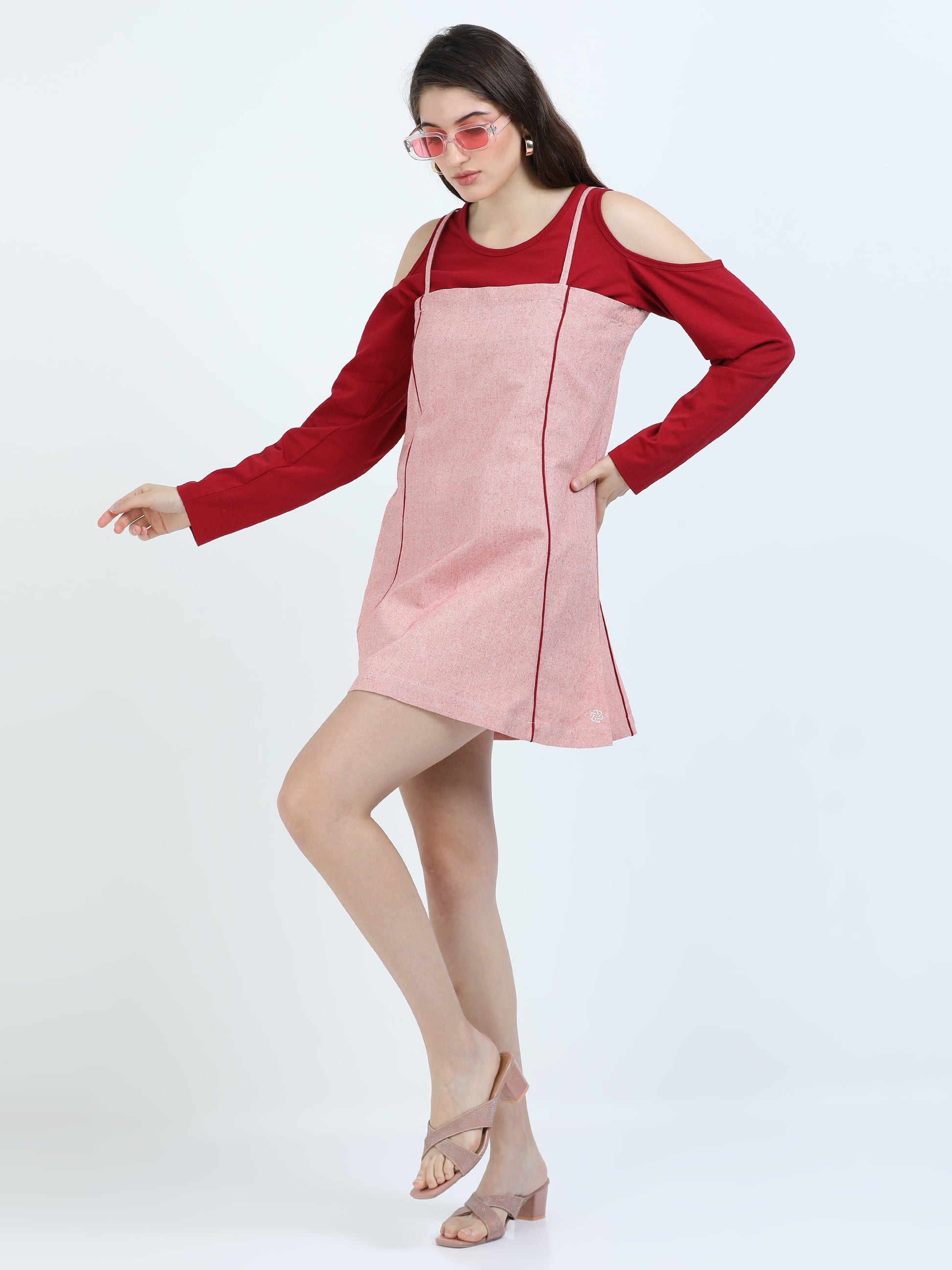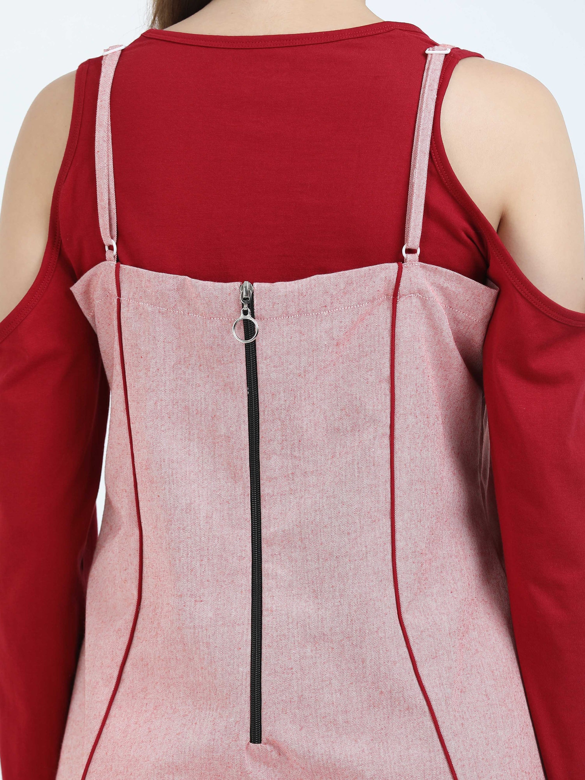 Women's rPET Cold Shoulder Crop Top And Strap Dress – Red