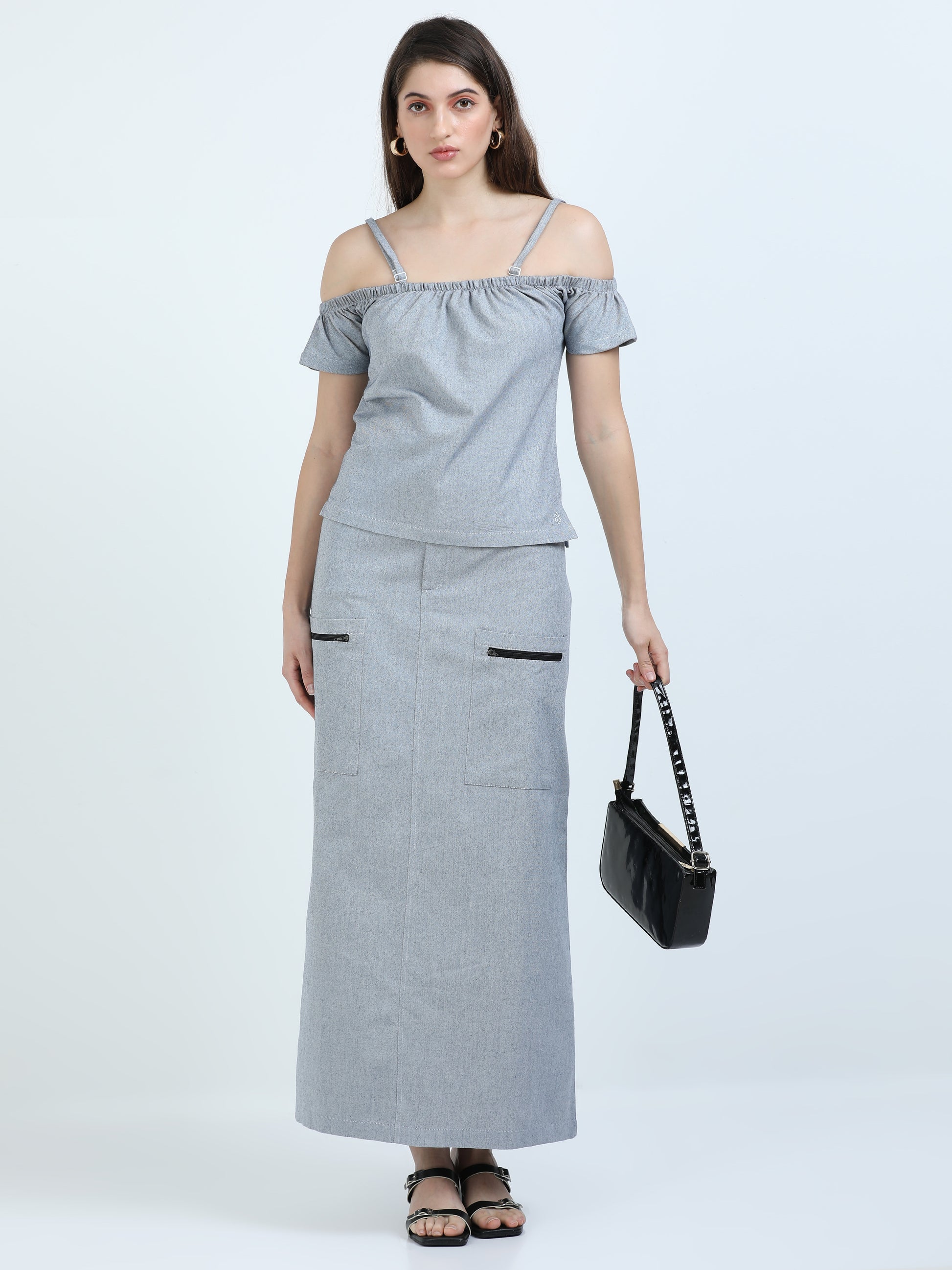 Women's rPET Long Skirt With Patch Pocket - Light Navy