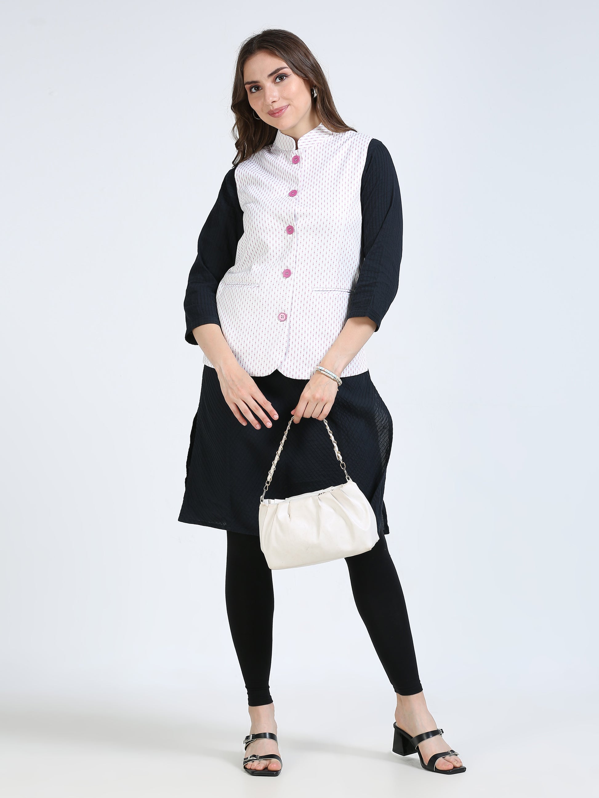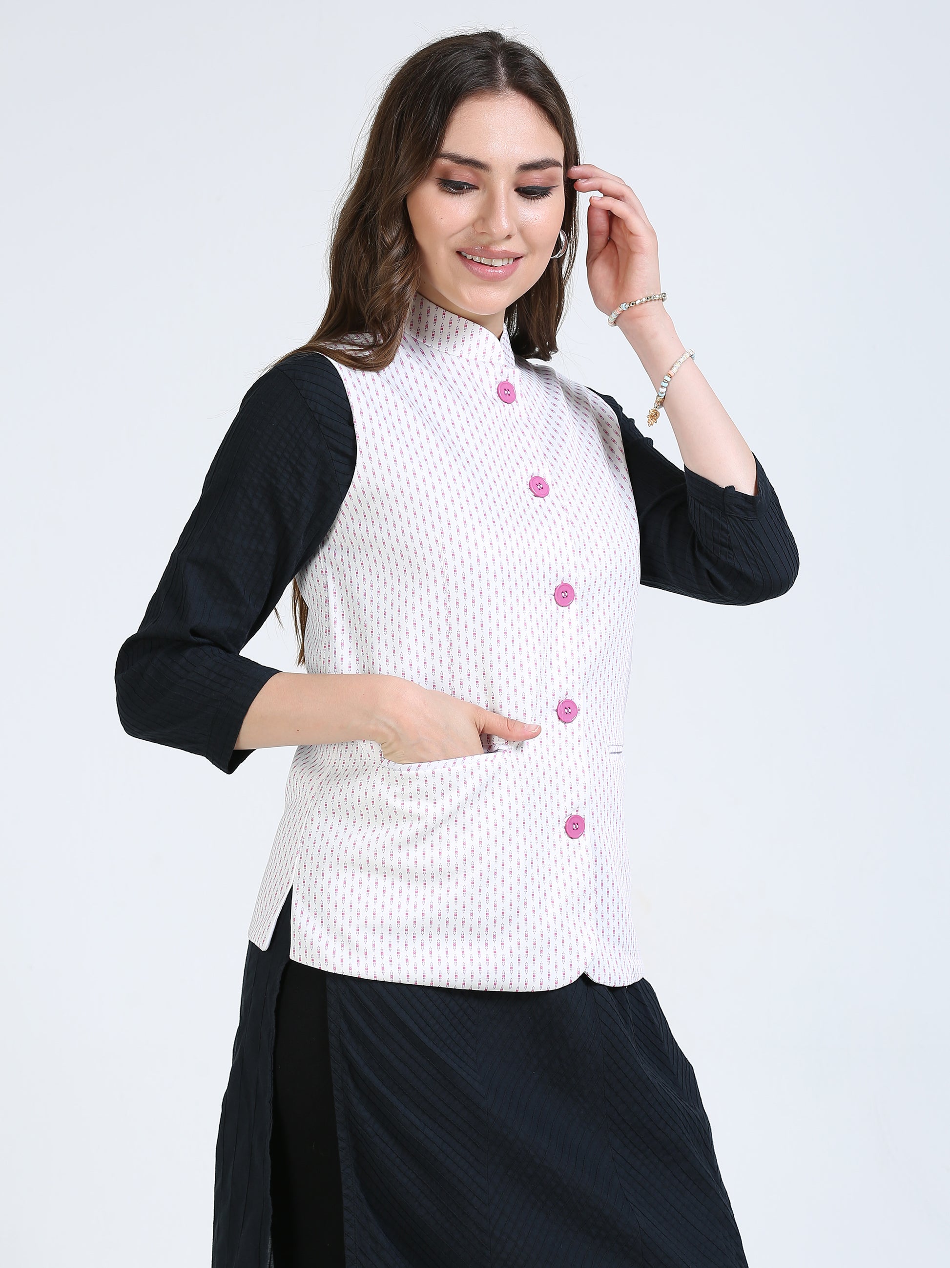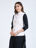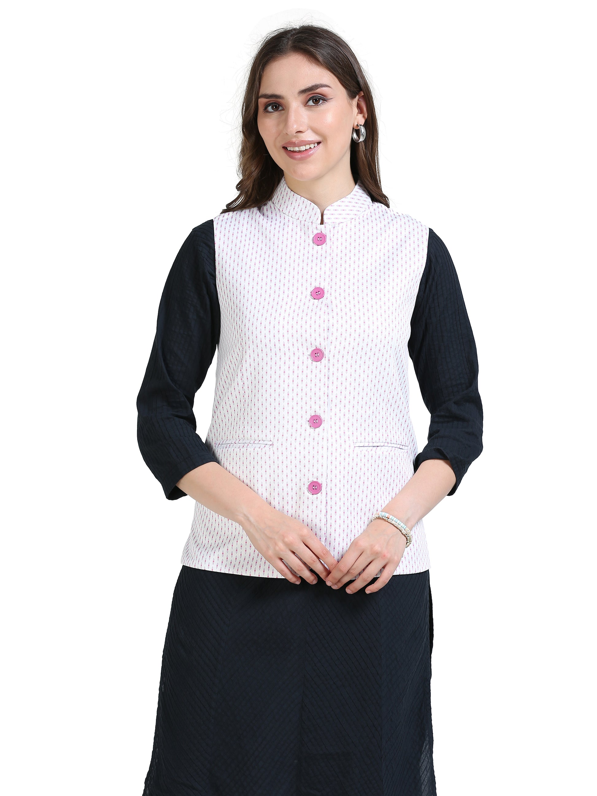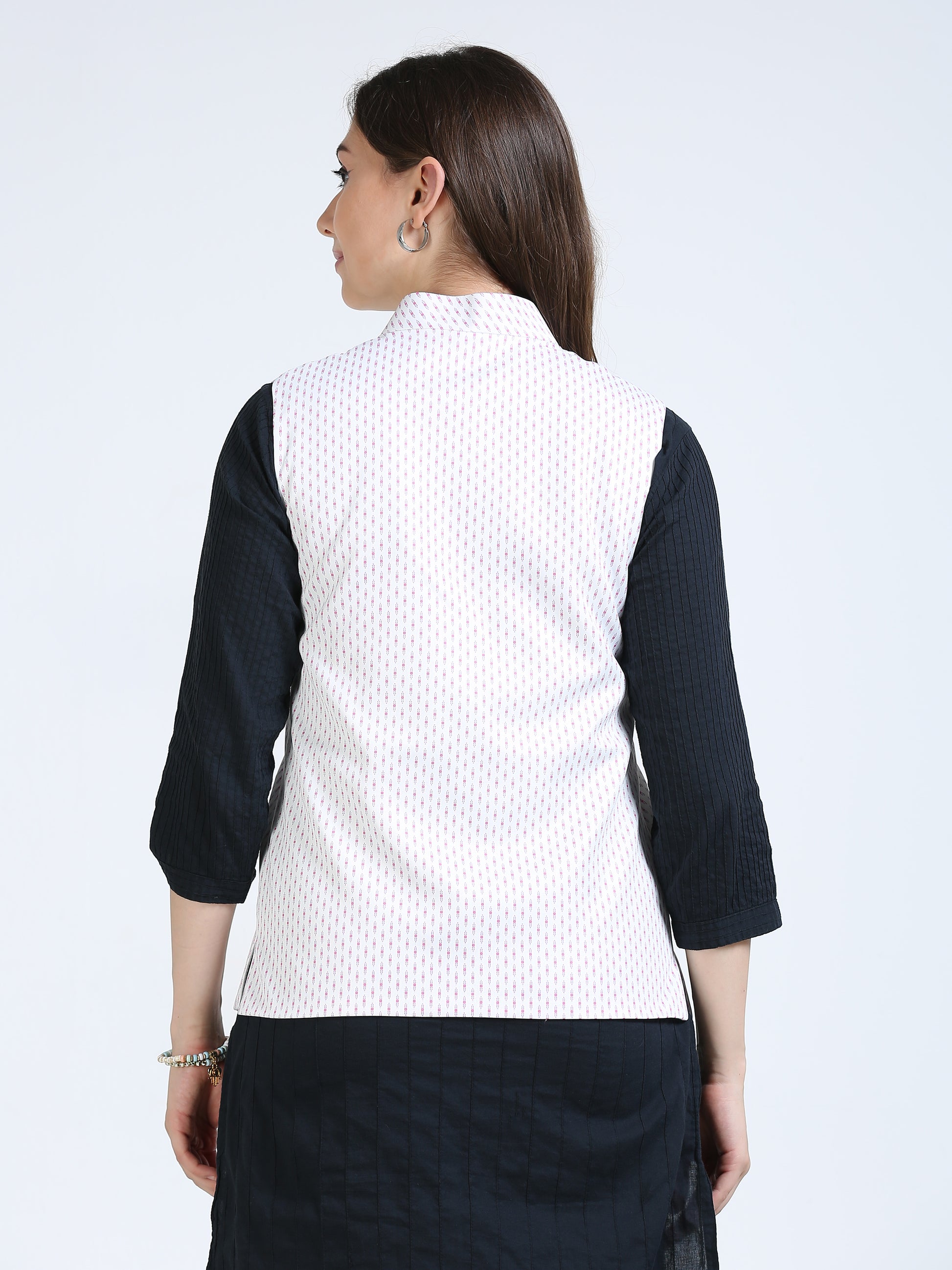 Soft, breathable, and easy to layer, this jacket transitions seamlessly from day to evening. You can pair this with a saree, kurti or a shirt depending on the occassion.