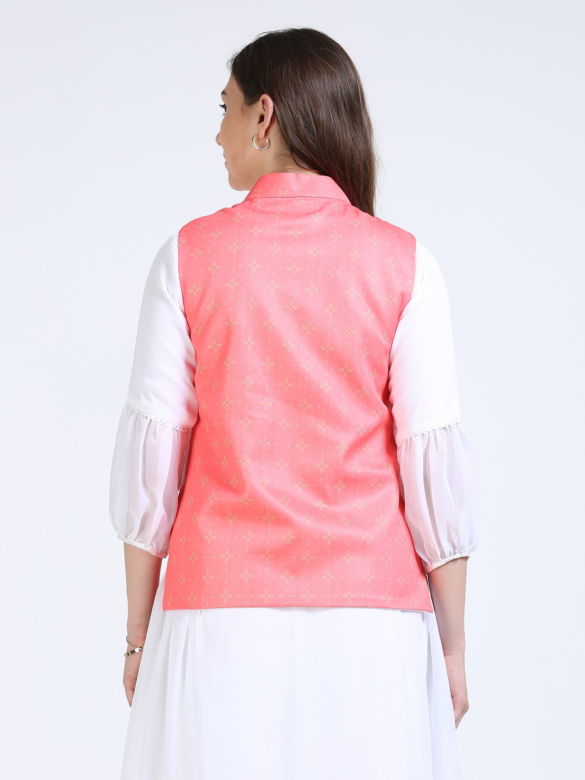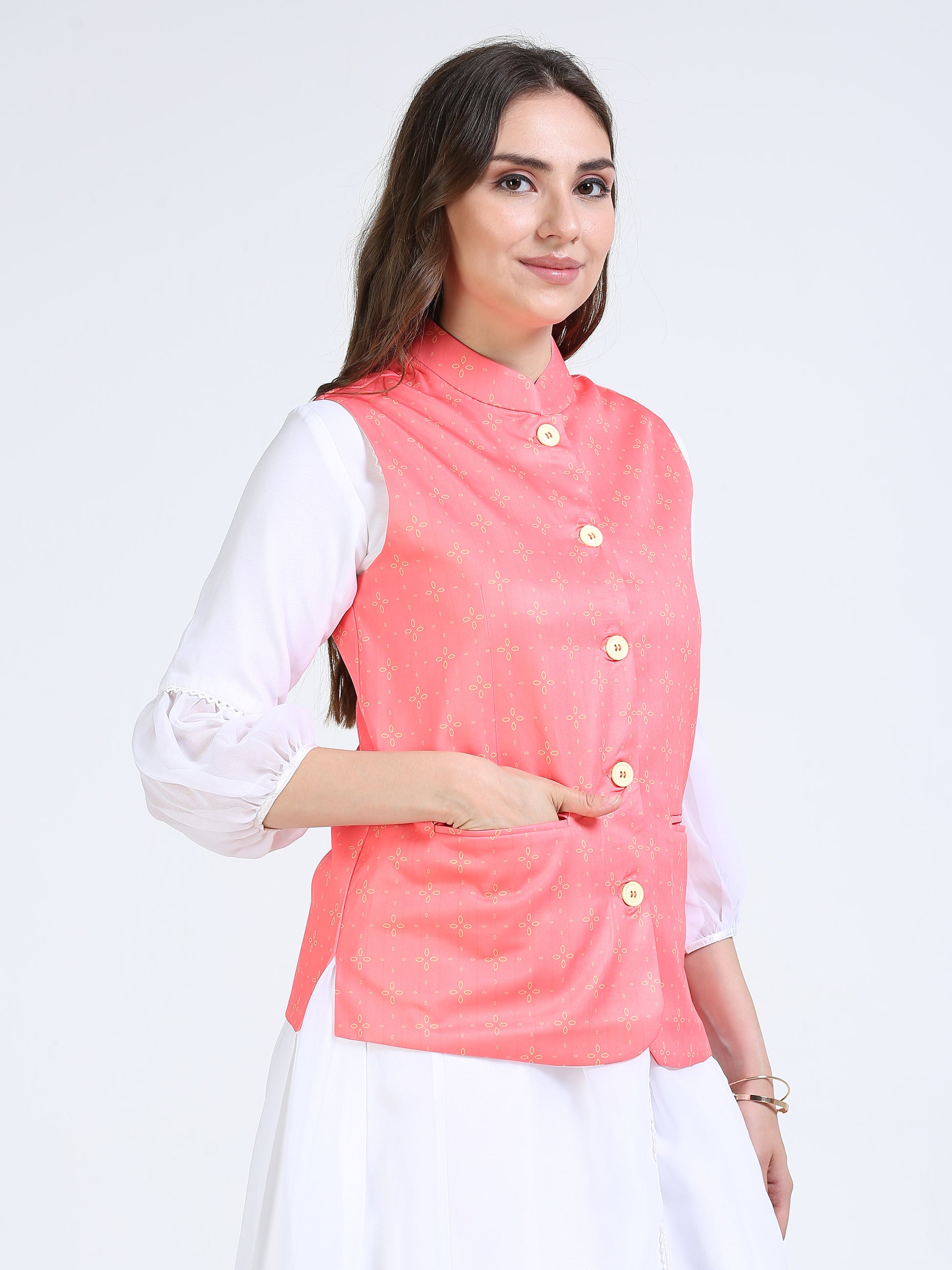 Soft, breathable, and easy to layer, this jacket transitions seamlessly from day to evening. You can pair this with a saree, kurti or a shirt depending on the occassion.