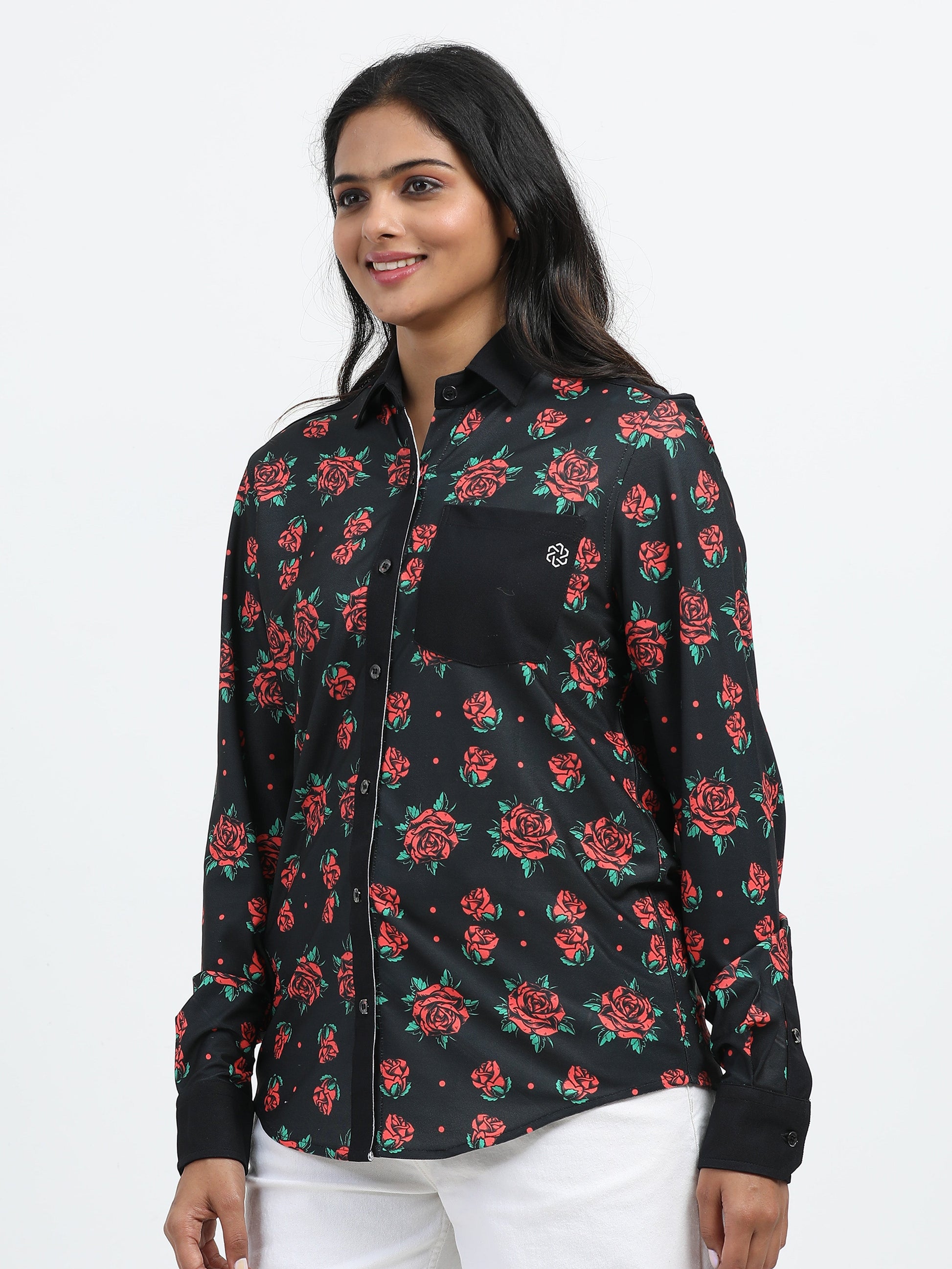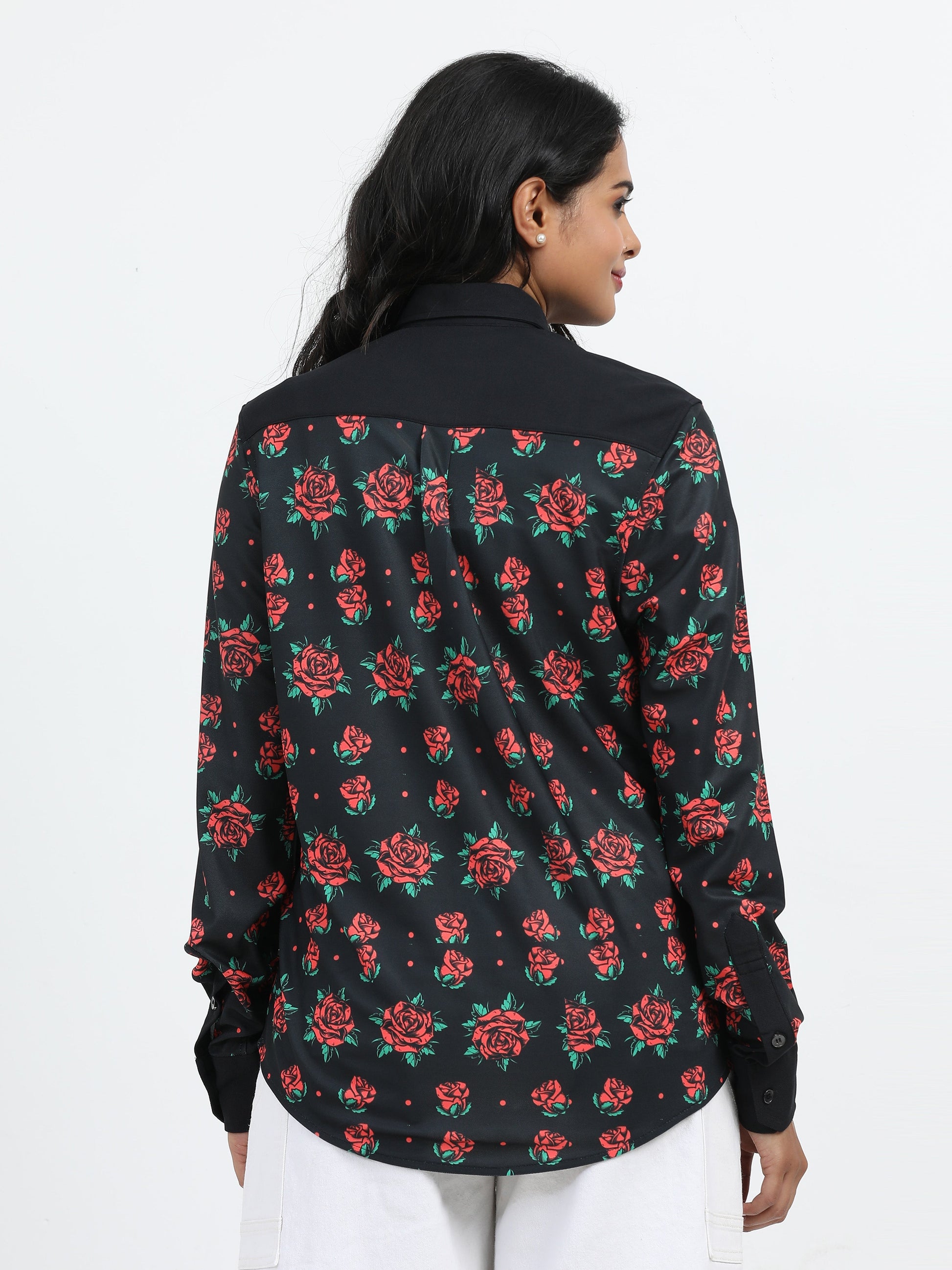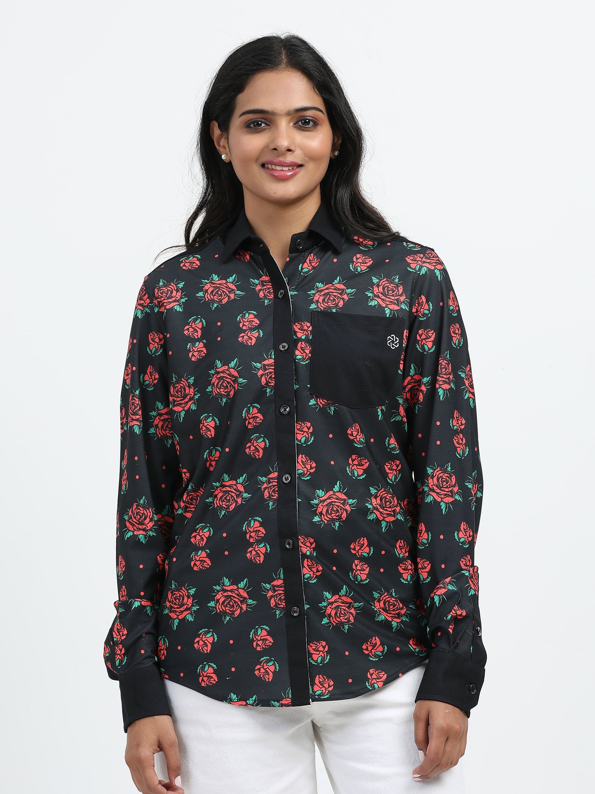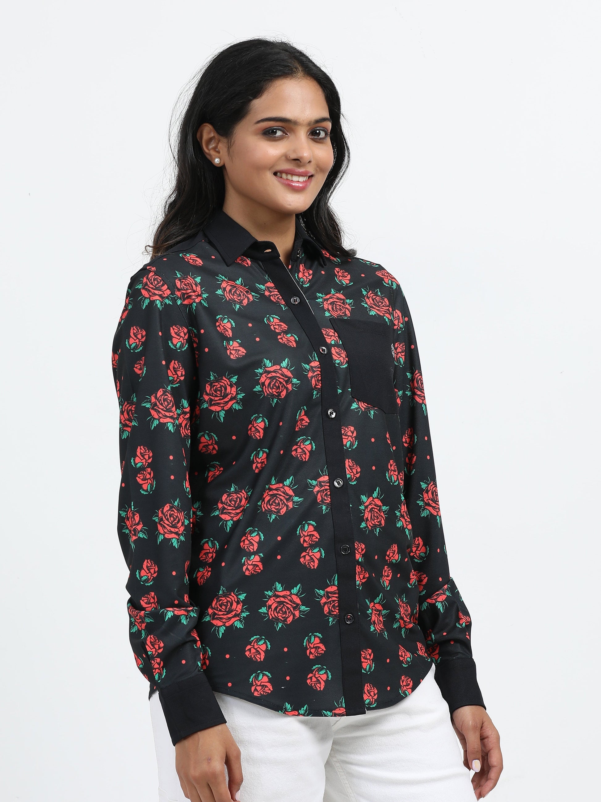 Whether you wanna twin with your partner or wear it by yourself this is the perfect shirt. Comfortable shirt with a contrast rose printed collar ,cuffs and pocket.