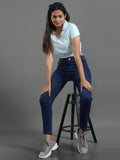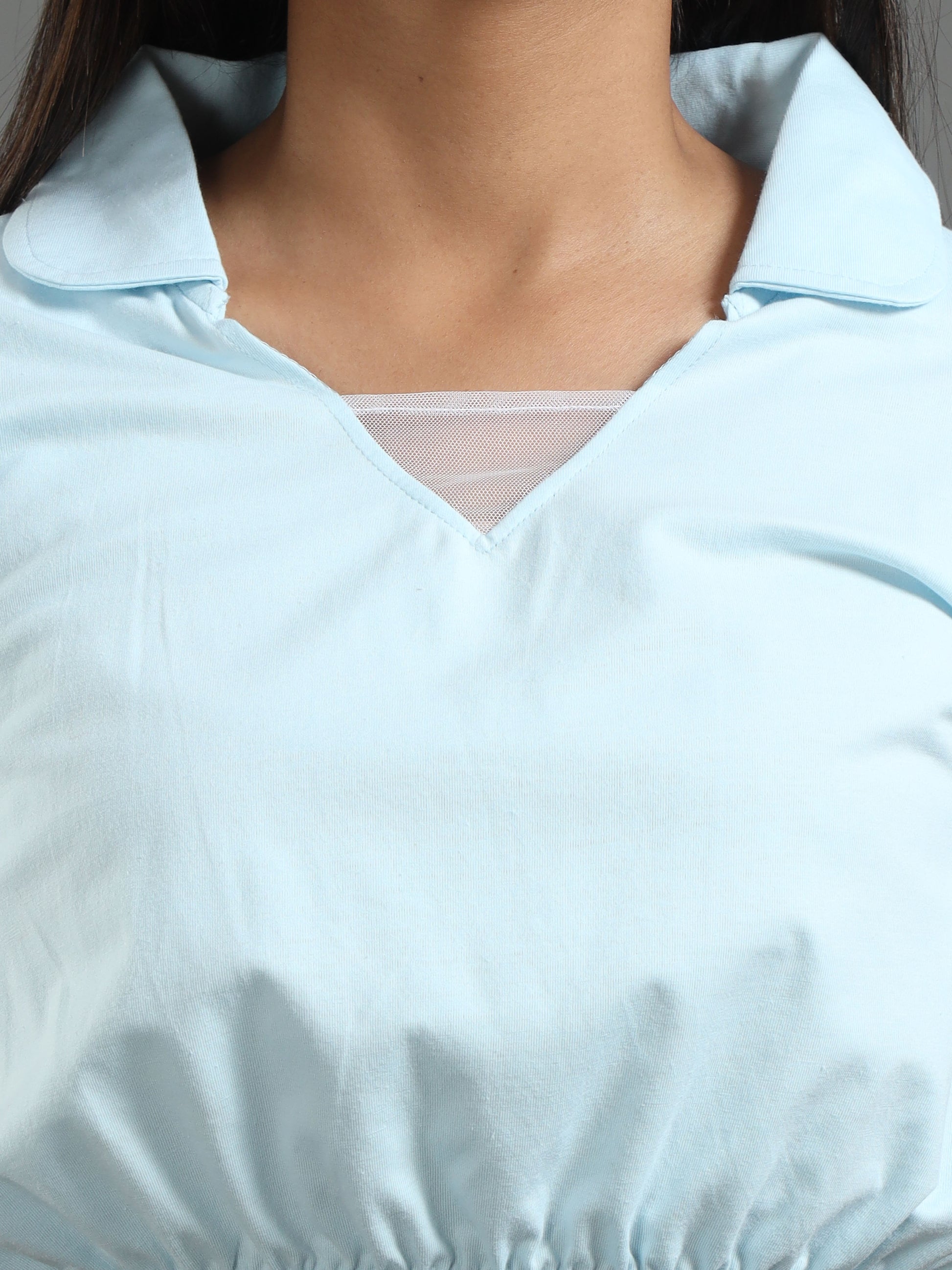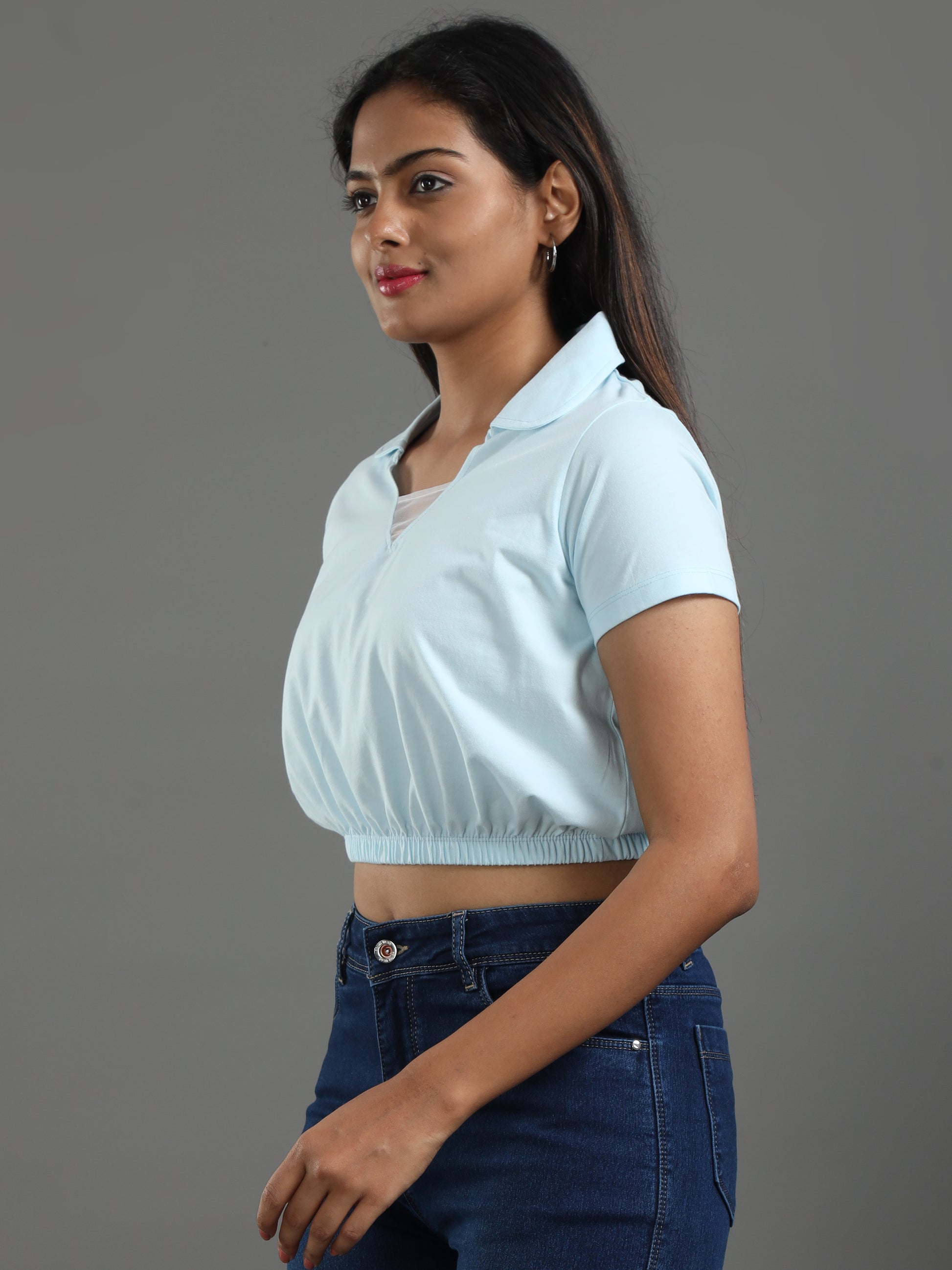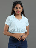 Women's Recycled Cotton Cropped Half Sleeve Polo T Shirt - Whispy Blue